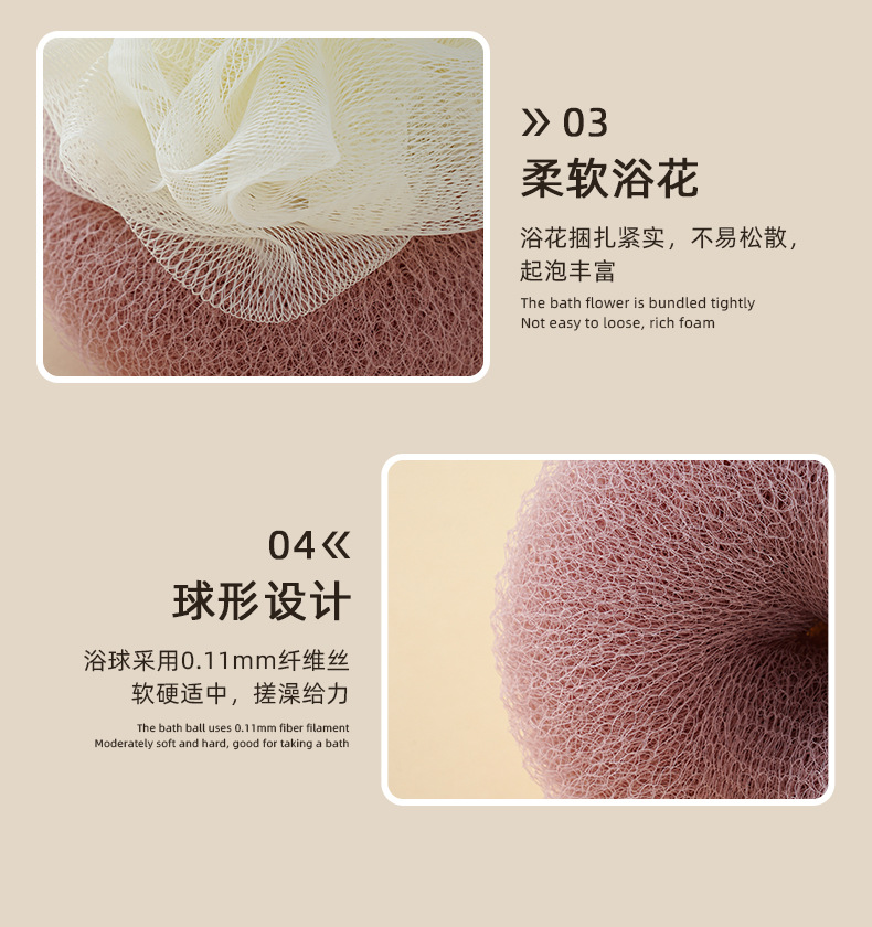 El artefacto patentado de frotamiento de bolas de bo, masaje de bolas de baño de doble uso, ampollas, frotamiento de espalda, frotamiento de barro, toallas de baño al por mayor, flores de baño