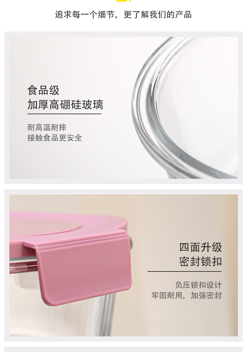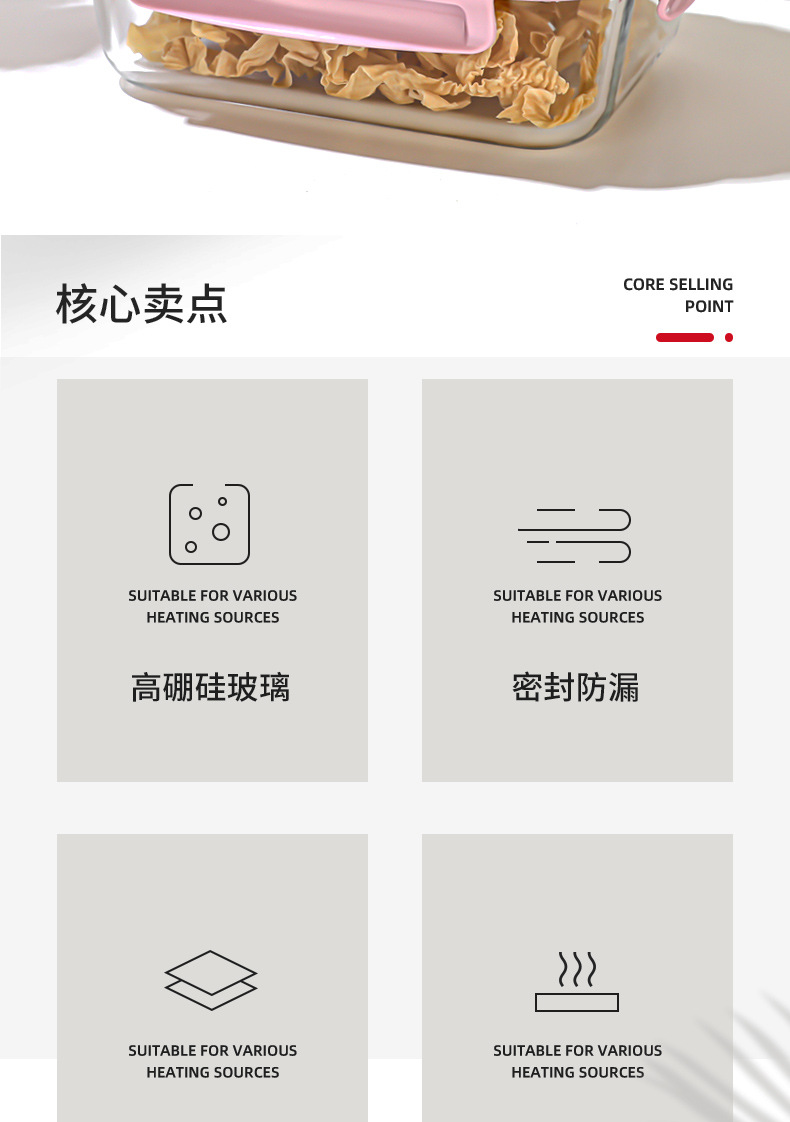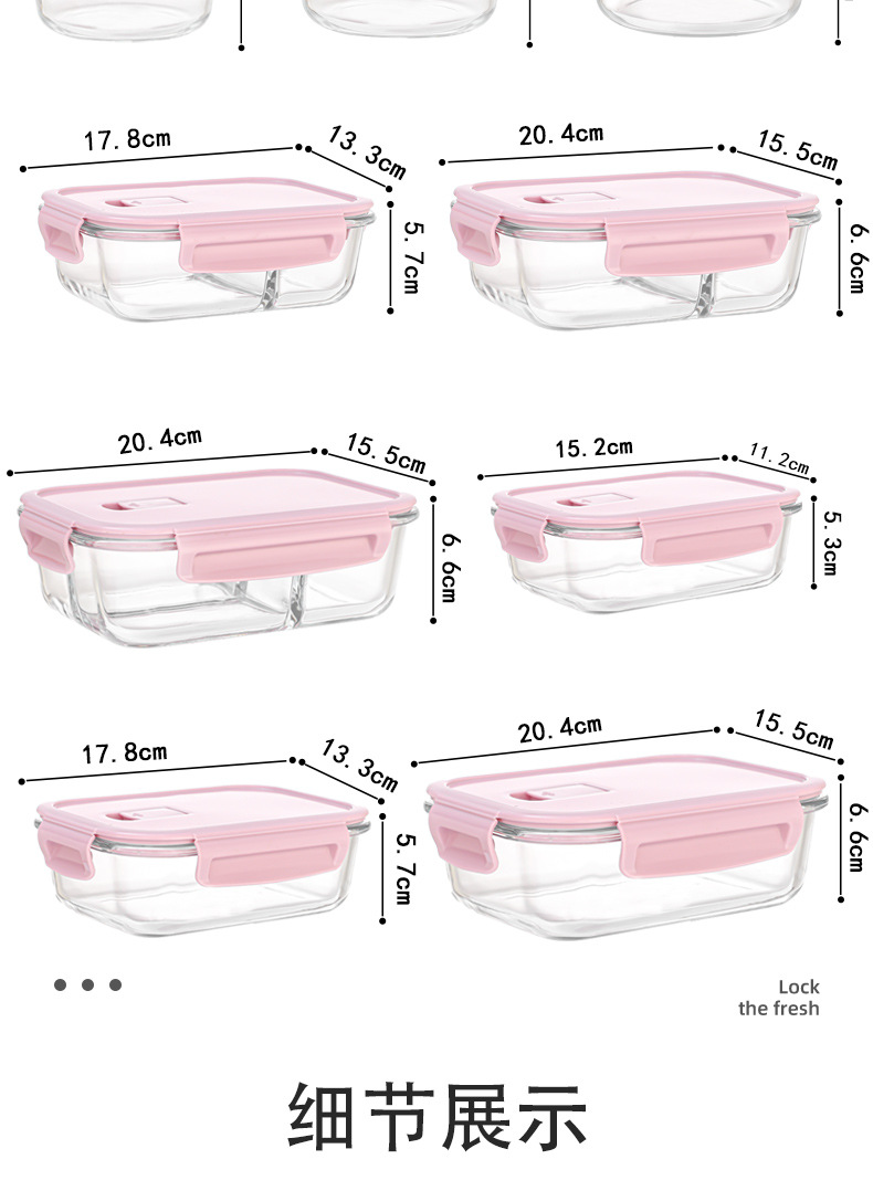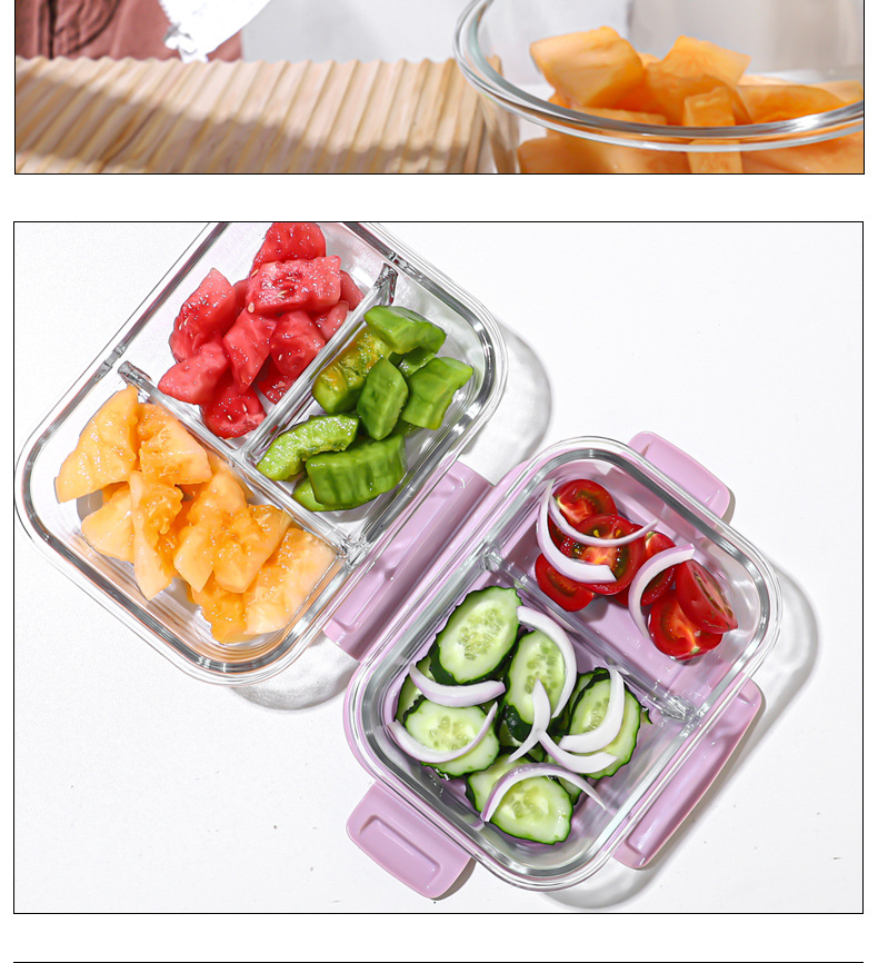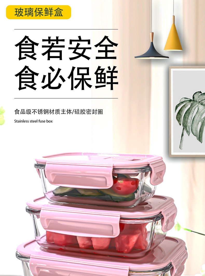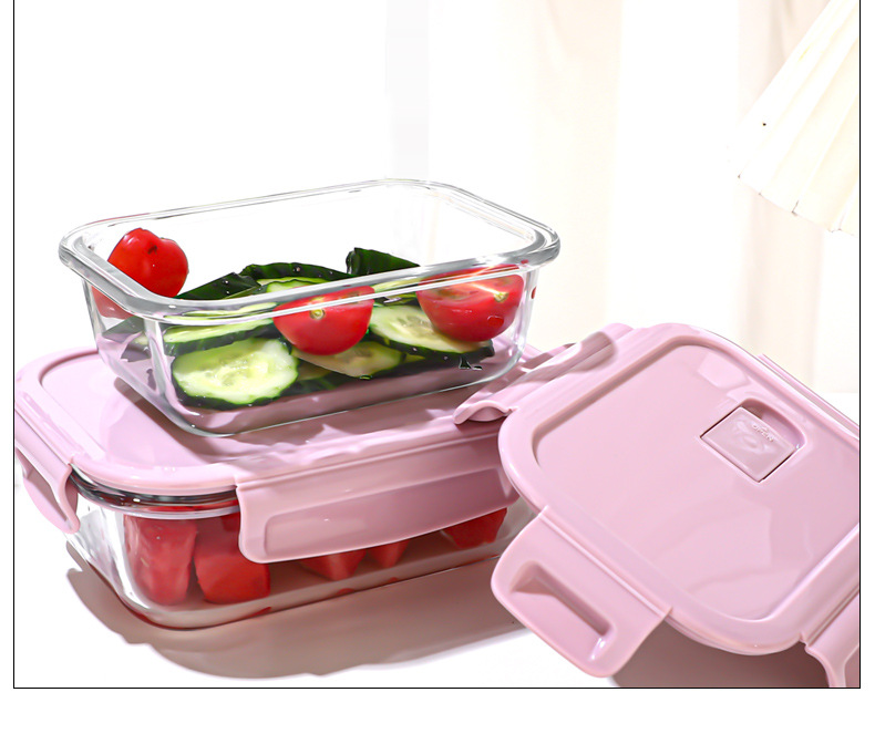 Caja de almuerzo de vidrio para alimentos domésticos caja de almuerzo de aislamiento térmico microondas caja de almuerzo refrigerador caja de almuerzo sellada de calidad alimentaria