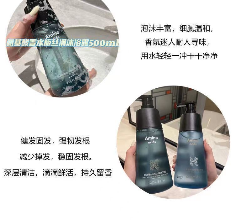 Perfume de aminoácidos, gel de ducha, fragancia, gel de ducha hidratante, hidratante, champú suave, acondicionador para el cabello al por mayor
