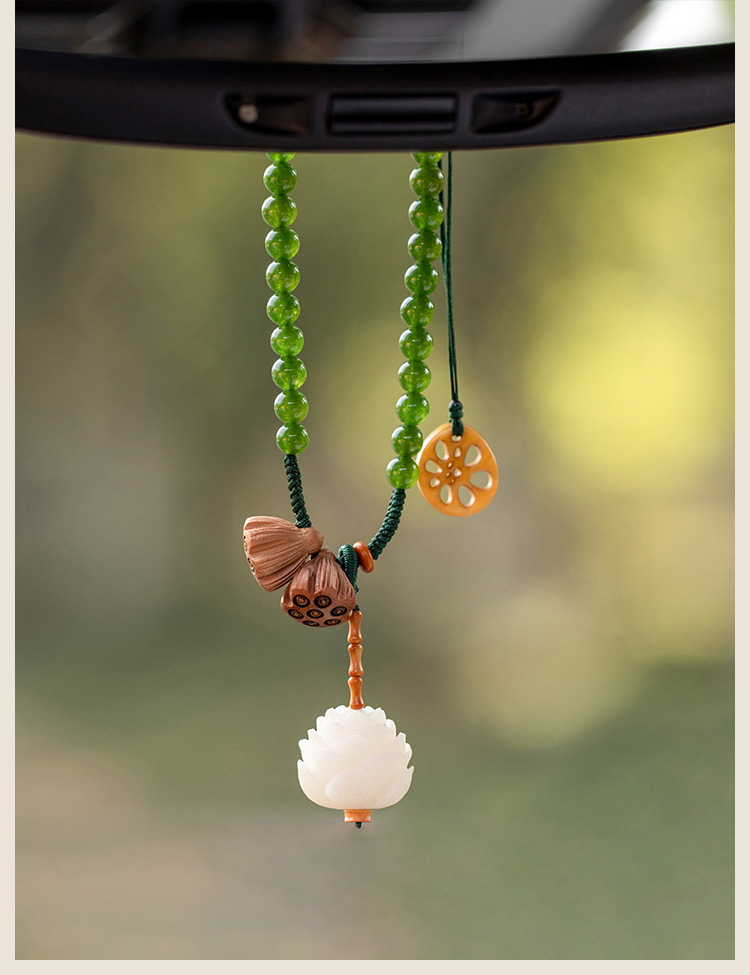 Se recomienda Bodhi Lotus Automobile Mirror colgante interior del coche creativo femenino estético pequeño Lotus colgante masculino