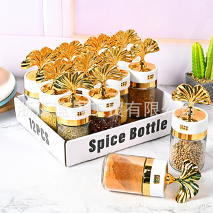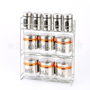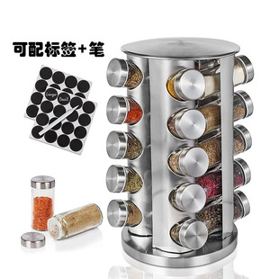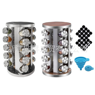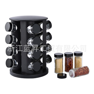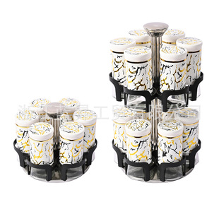 Conjunto de botellas de condimento de latas giratorias de vidrio de Amazon transfronterizas creativo de varias capas de estantes de condimento clasificados artículos de cocina