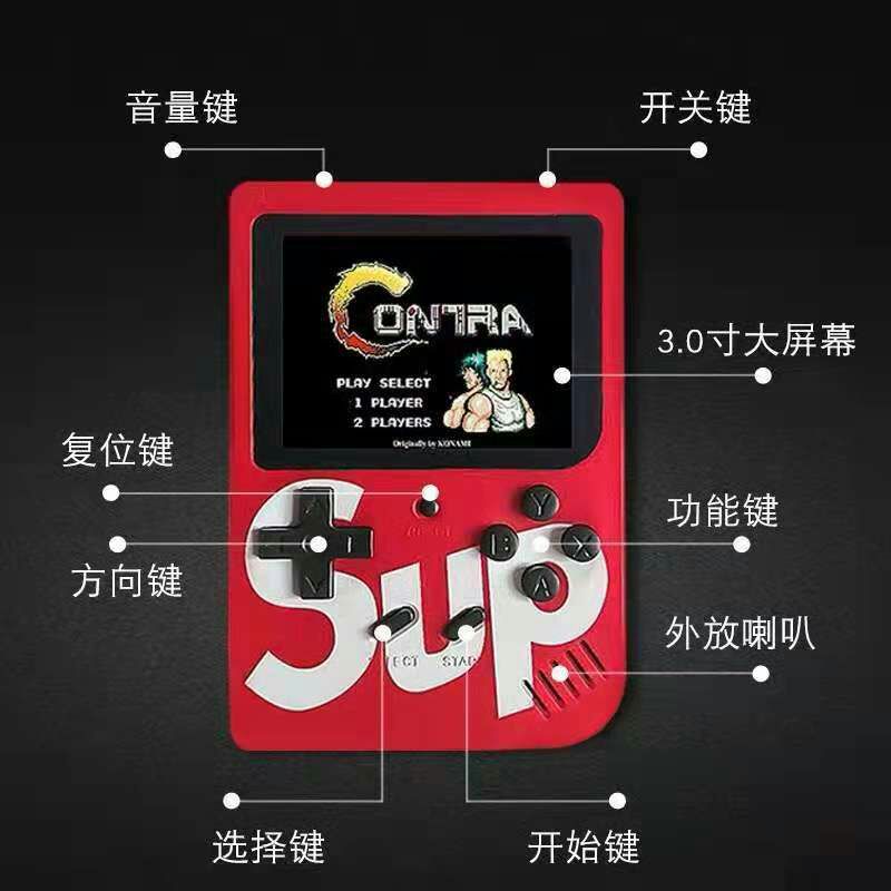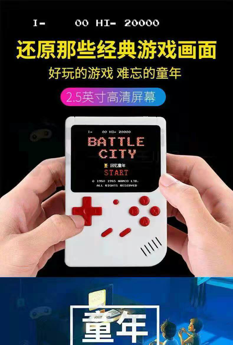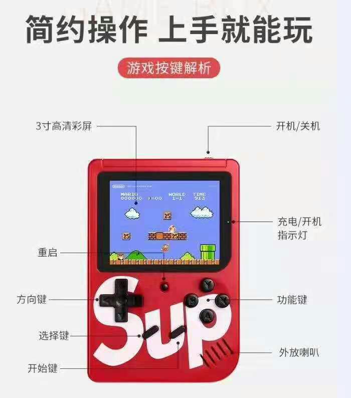 掌上迷你游戏机,怀旧经典游戏本机为中英文版本,可根据客户随意设置更换语言,内附400个游戏节目,支持零售,需要颜色的留言备注,本产品有两种样本一款到SUP字样,一款不带,如有指定请备注,未留言的随机发送哈,或者直接联系客服,微信手机同号。