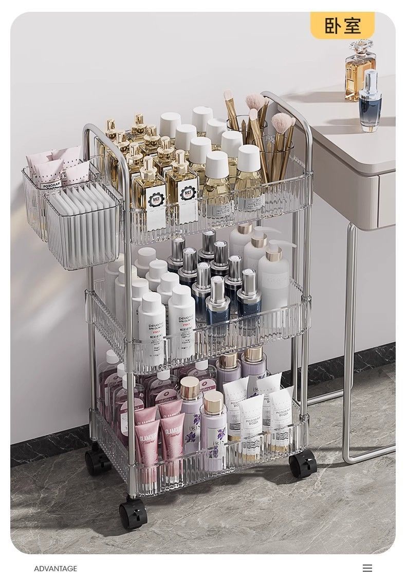 Carrito de yakele estante de ropa de cama bocadillos dormitorio estantería de aterrizaje para mover estantes de almacenamiento de cosméticos de varias capas