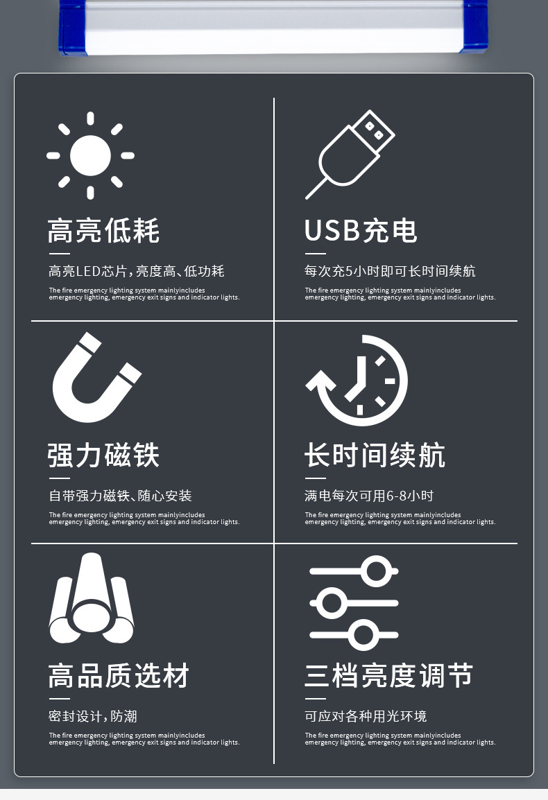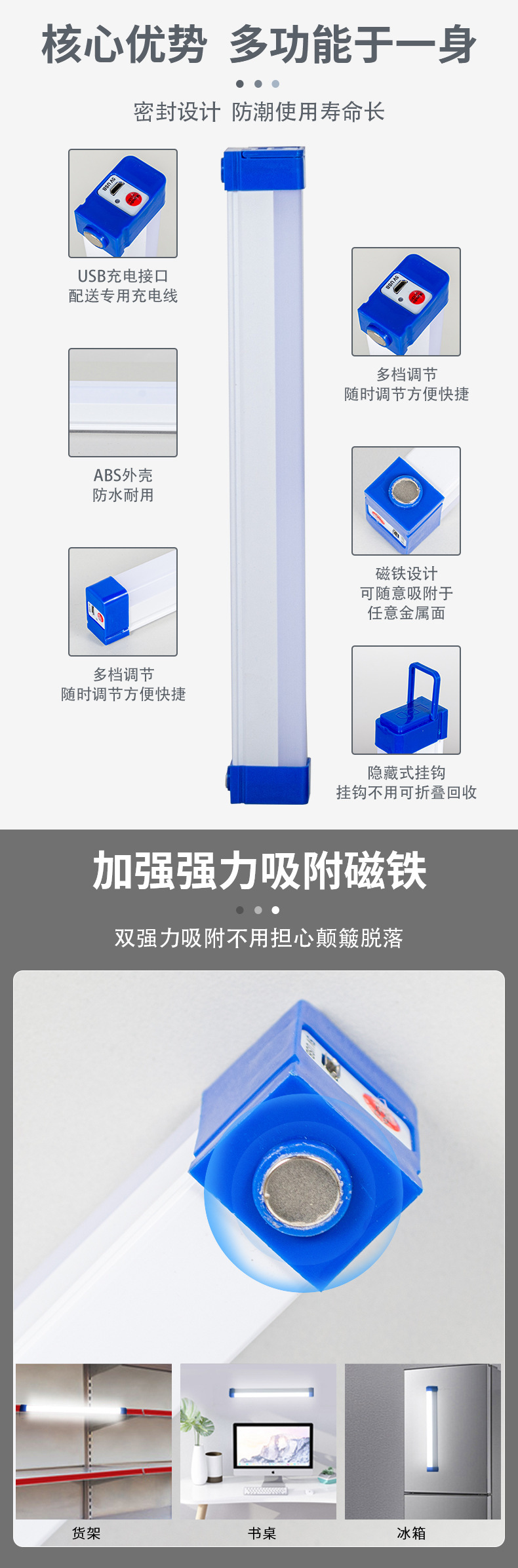 Luces de carga de lámparas led, luces de emergencia de corte de energía doméstica en puestos del mercado nocturno, luces de carga móviles, tubos de carga de imanes
