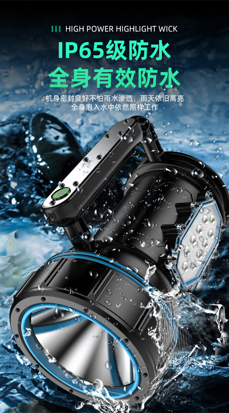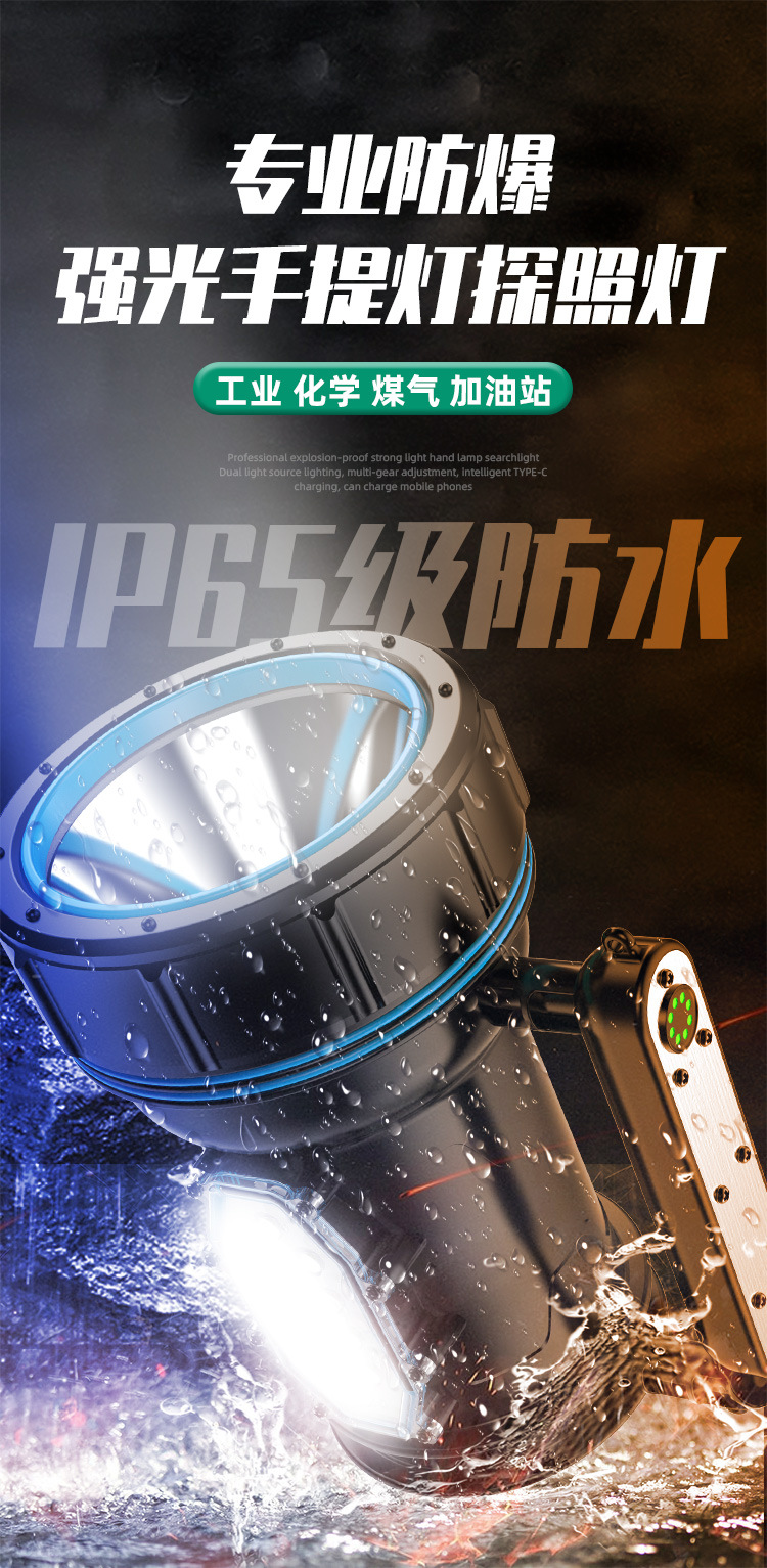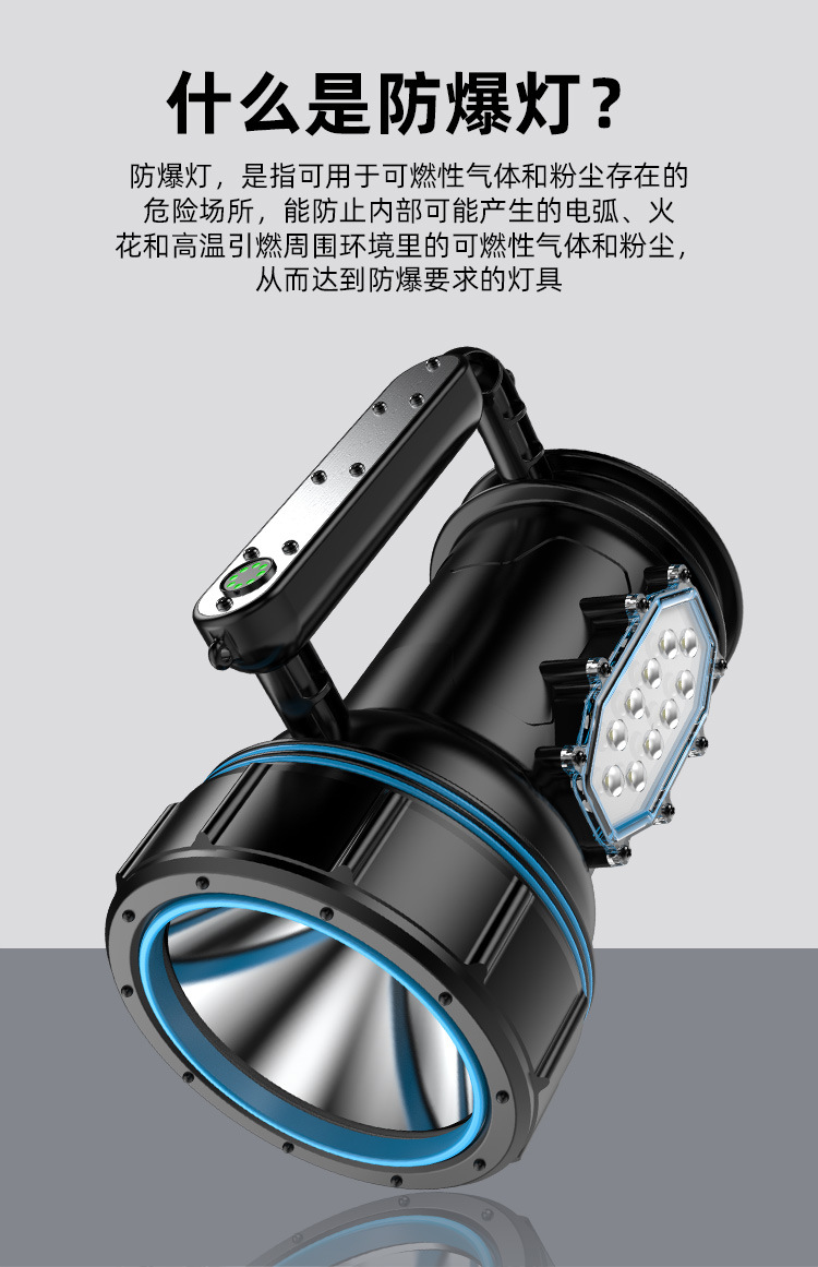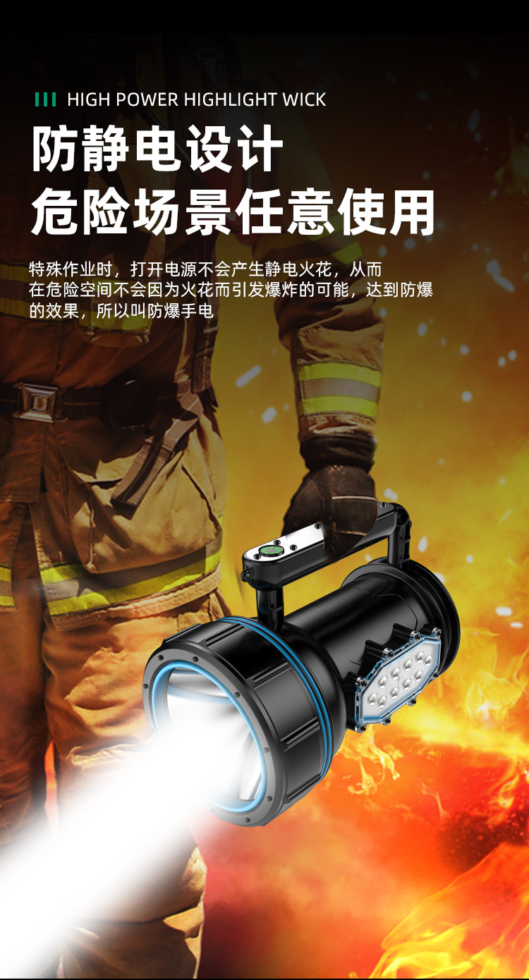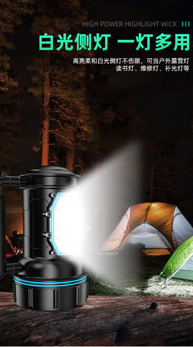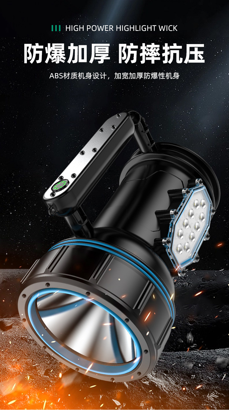 Luz fuerte al aire libre a prueba de explosiones, luz súper brillante de alta potencia, carga LED de larga distancia, larga duración, lámpara de campamento portátil