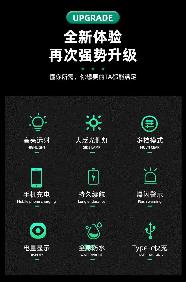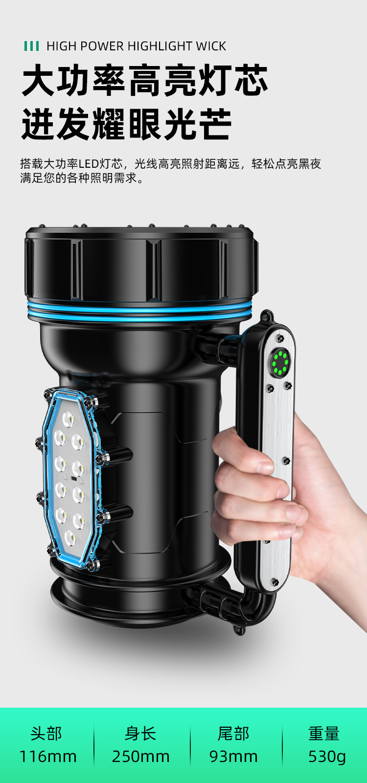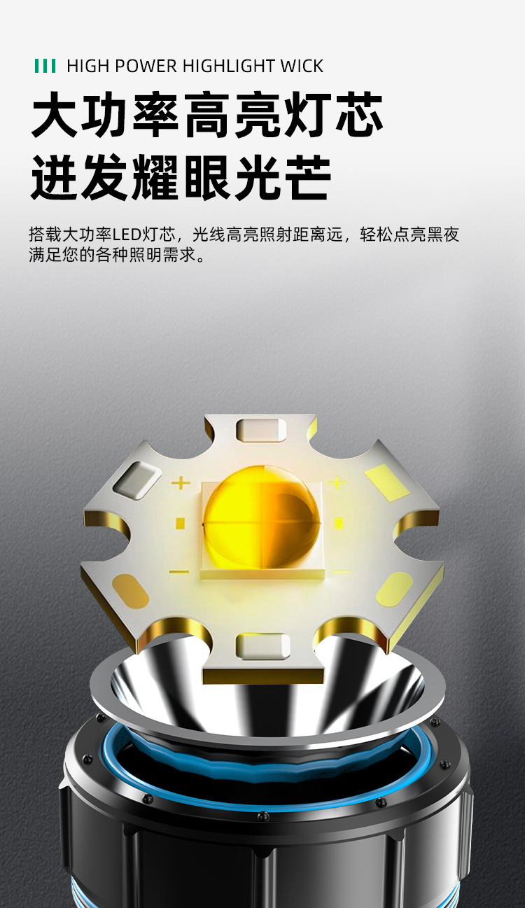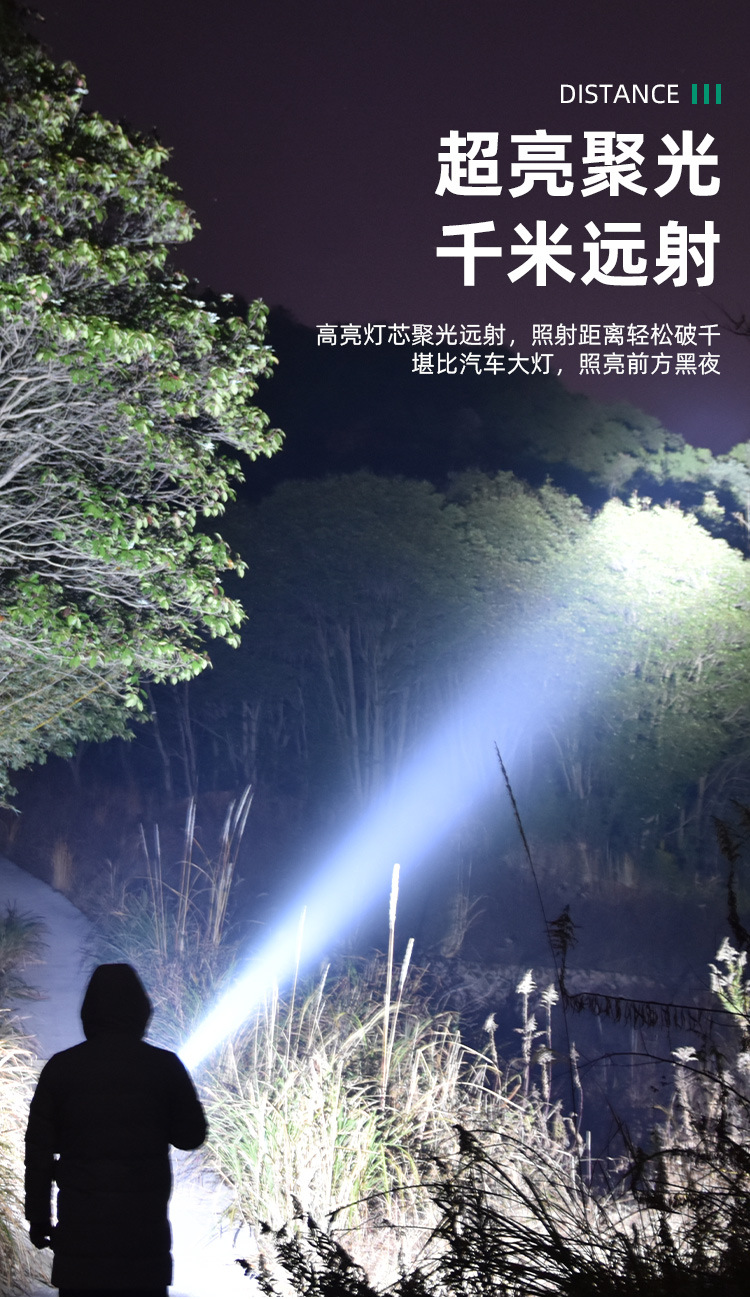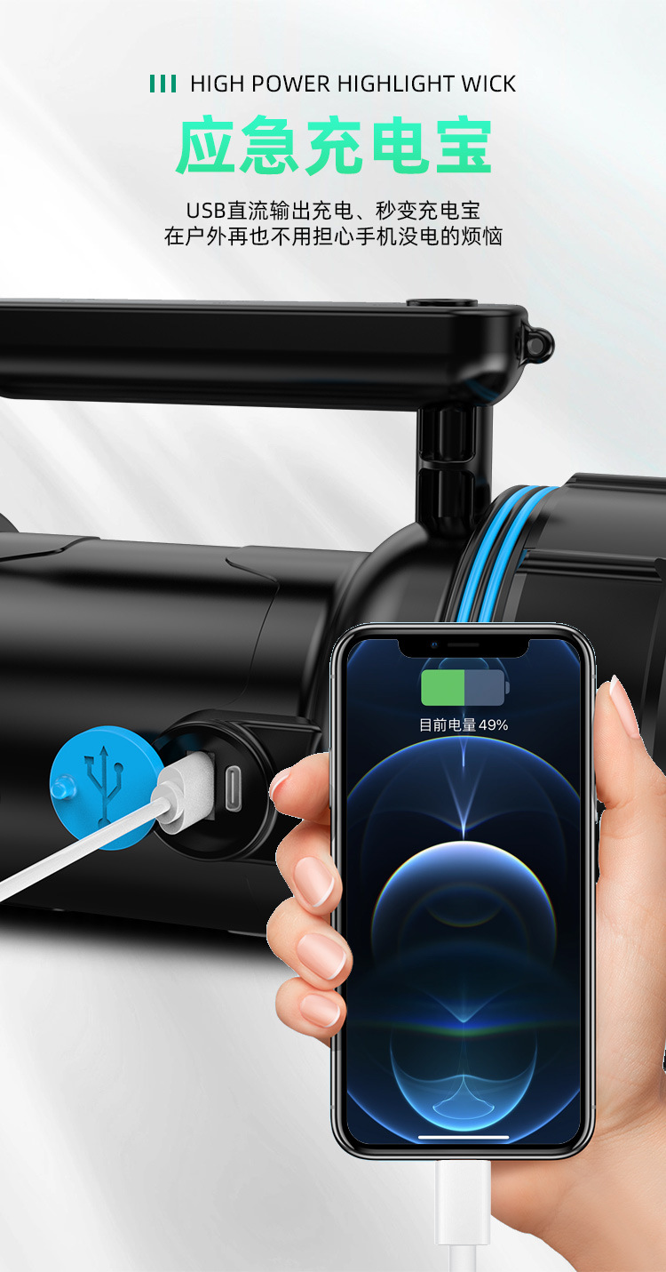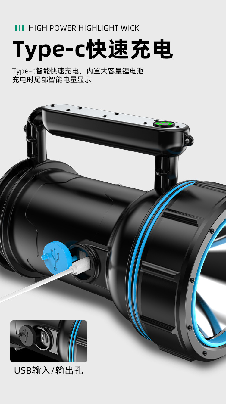 Luz fuerte al aire libre a prueba de explosiones, luz súper brillante de alta potencia, carga LED de larga distancia, larga duración, lámpara de campamento portátil
