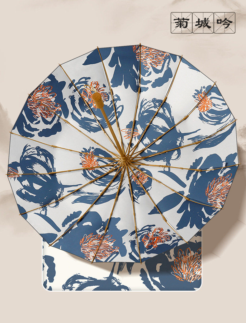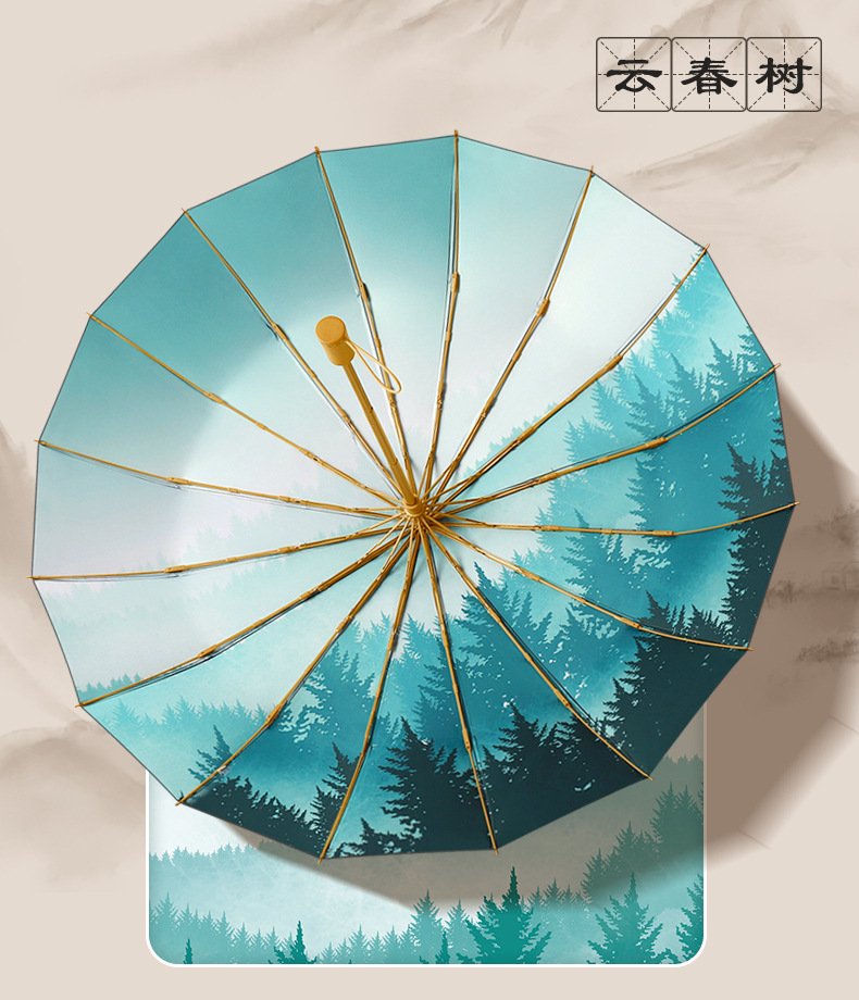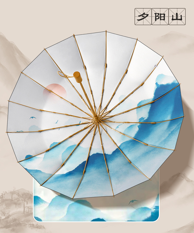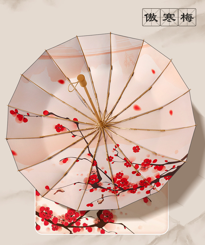 30% de descuento, 16 huesos, paraguas abiertos a mano, paraguas retro, mango de madera maciza, sombrillas, pegamento negro, sombrillas solares, un sustituto de cabello