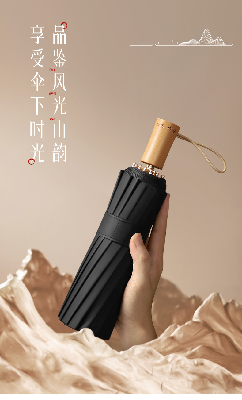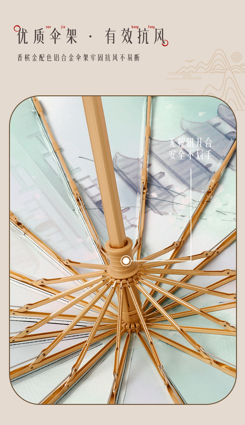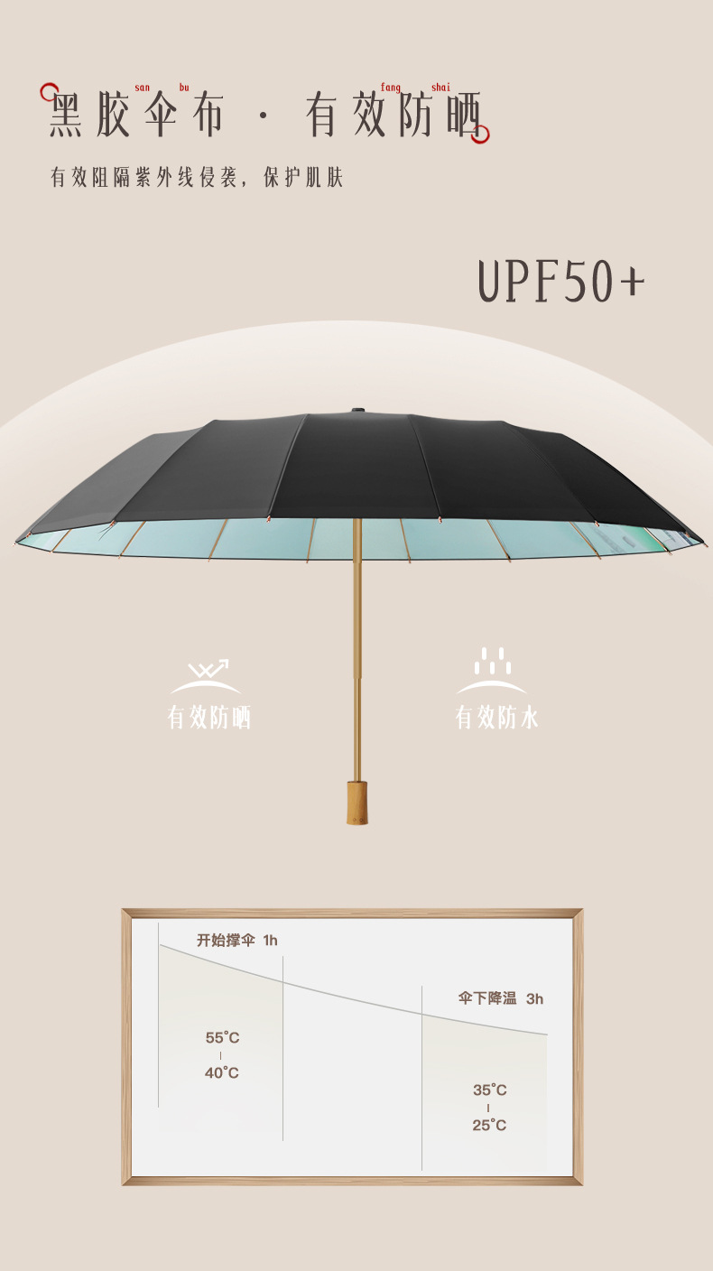 30% de descuento, 16 huesos, paraguas abiertos a mano, paraguas retro, mango de madera maciza, sombrillas, pegamento negro, sombrillas solares, un sustituto de cabello