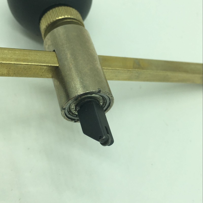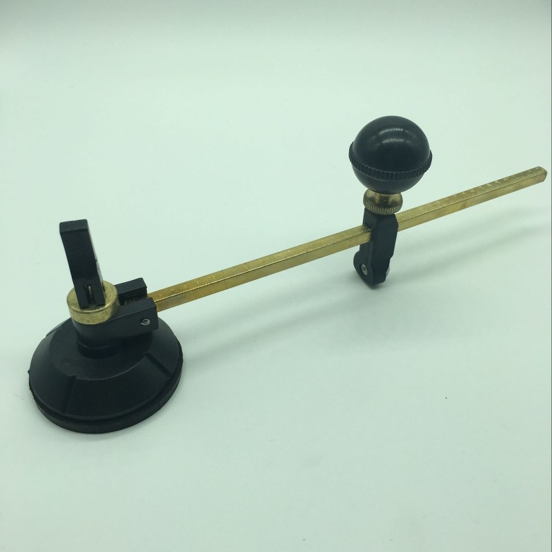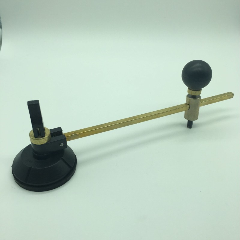 步骤二:画圆后在玻璃的背面沿切割线进行敲击,力度自己掌握,敲击出现裂痕即可。(先敲击圆,后进行方格画线,主要是为了在敲击方格的时候不会将玻璃敲破。)