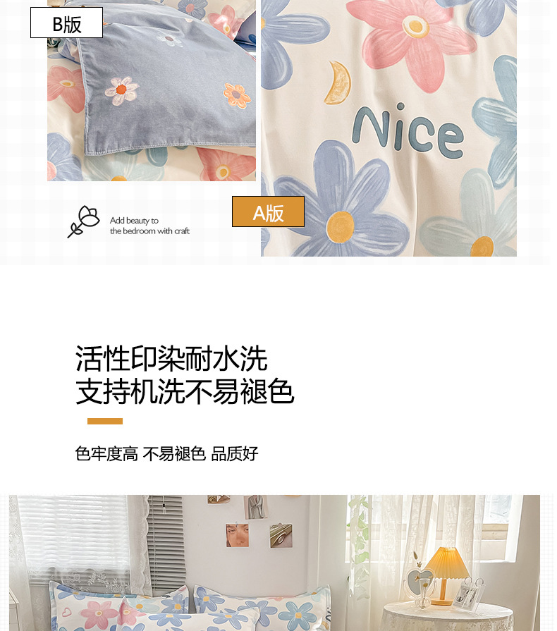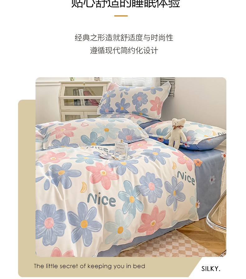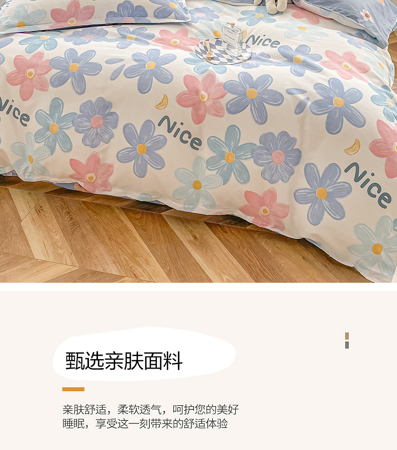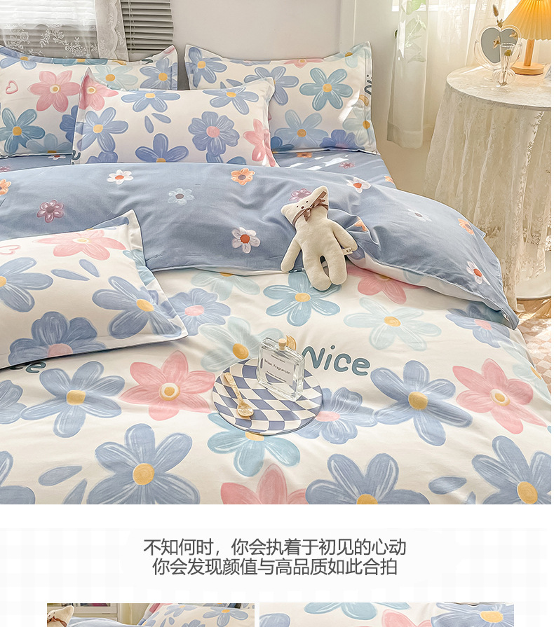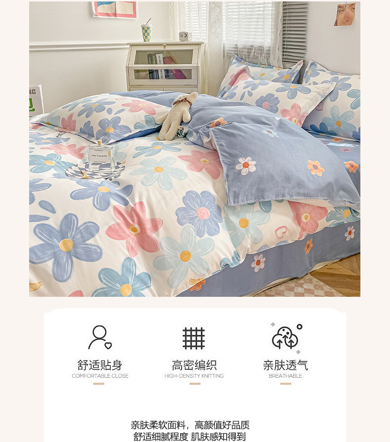 Pequeño y fresco conjunto de cuatro piezas impresas en diagonal engrosadas, algodón pro - piel, pequeñas flores trituradas, dormitorio estudiantil de tres piezas de ropa de cama