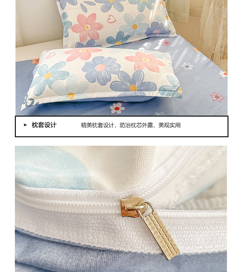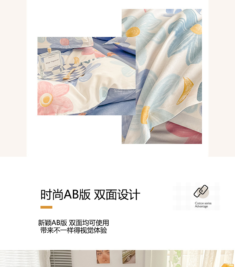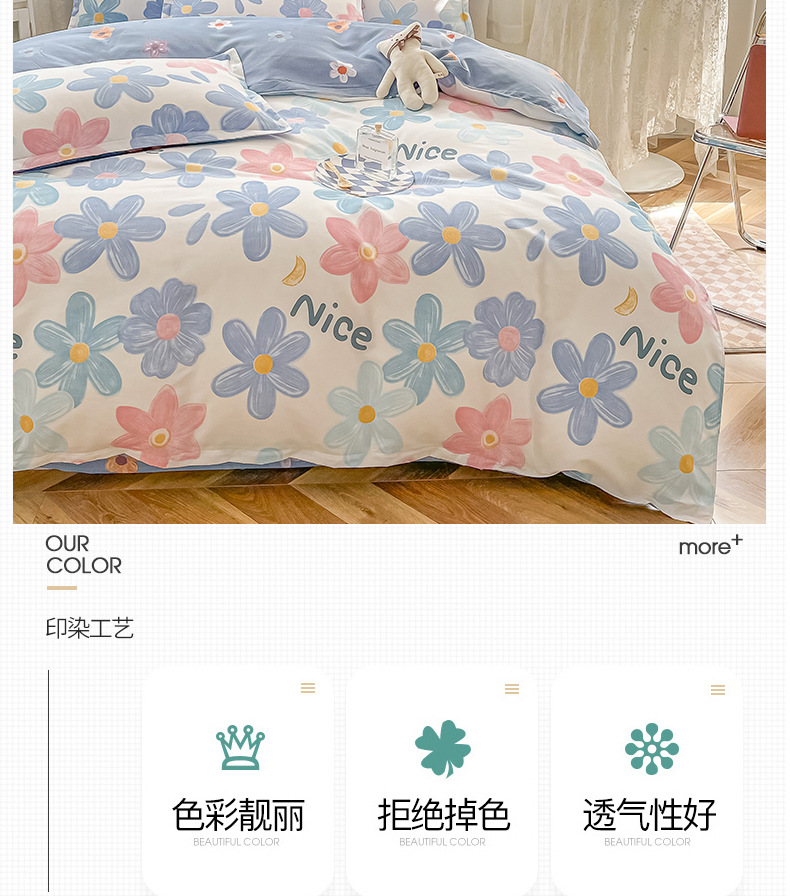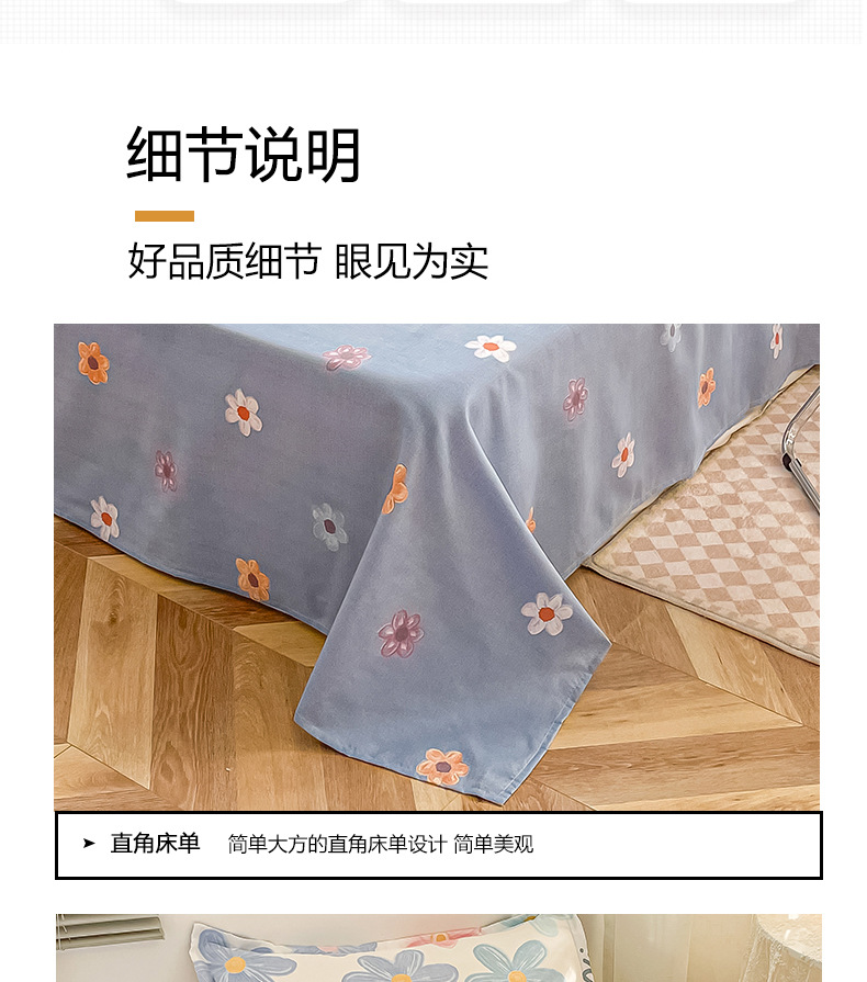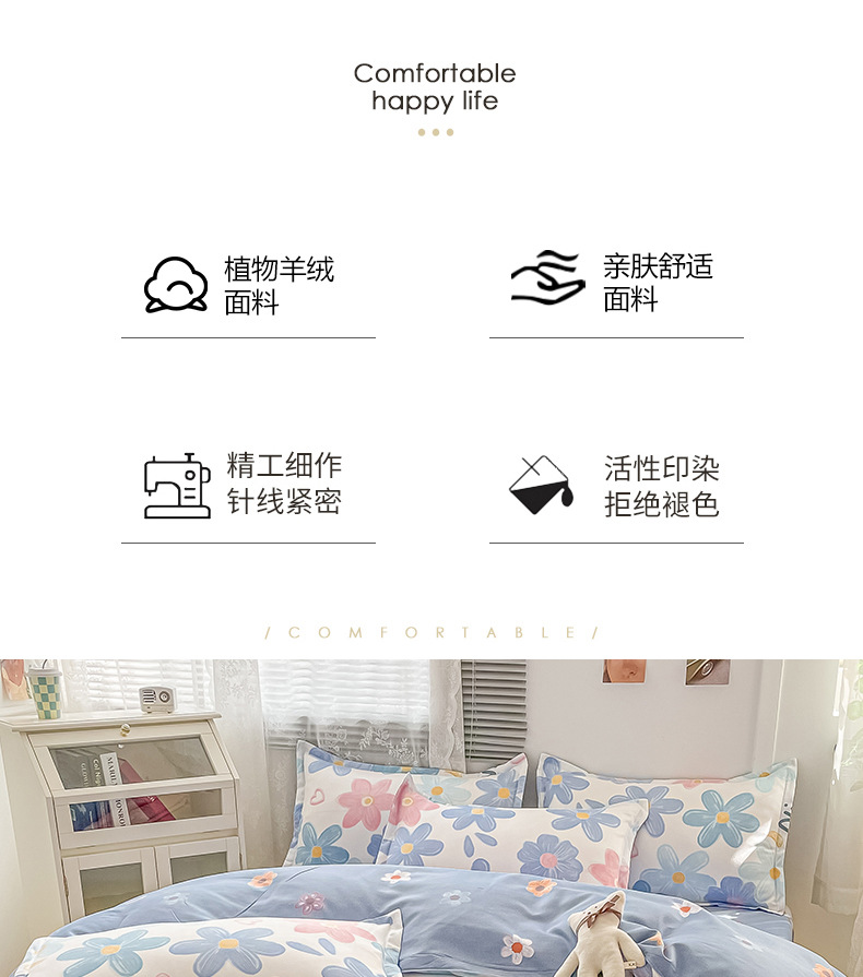 Pequeño y fresco conjunto de cuatro piezas impresas en diagonal engrosadas, algodón pro - piel, pequeñas flores trituradas, dormitorio estudiantil de tres piezas de ropa de cama