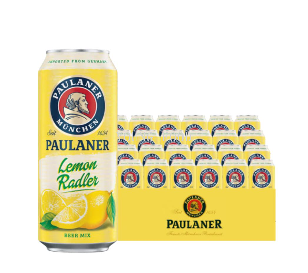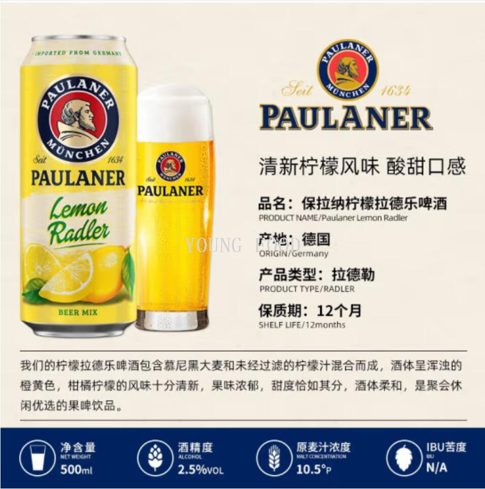 Envío al por mayor de alimentos de ocio importados originales de alemania, bebidas y bebidas, cerveza paulana Lemon lager 500ml