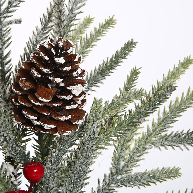 Decoración navideña de 40cm pe base de corteza simulada árbol de Navidad maceta de plástico pino fruta roja cae en la nieve árbol de terciopelo