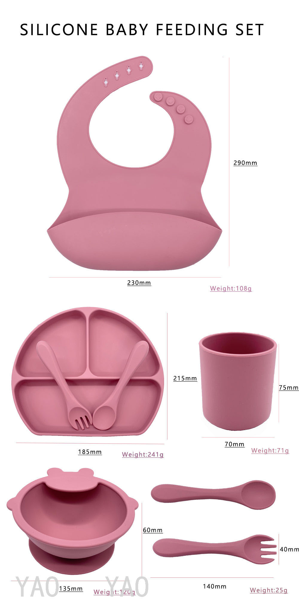 Juego de vajilla para bebés, silicona, platos, cucharas, baberos para niños, entrenamiento de comidas, alimentos complementarios, regalos de alimentación