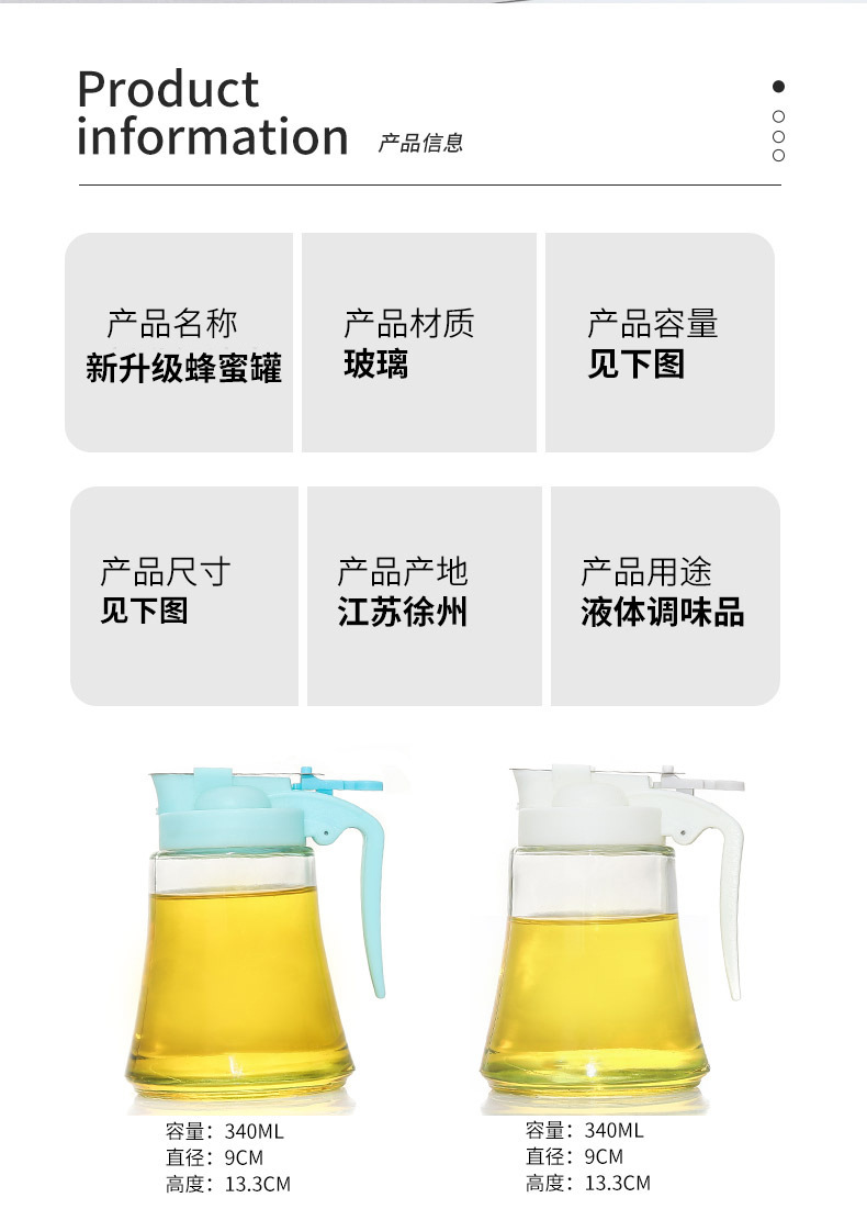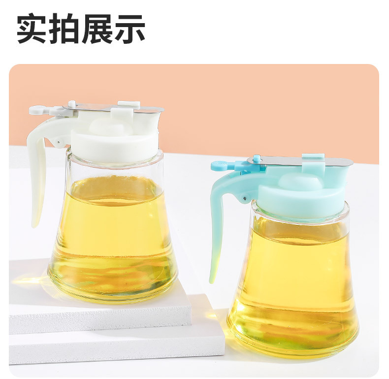 La olla de aceite de vidrio de la lata de miel abre y cierra automáticamente la botella de vinagre de salsa de soja de la cocina portátil, la botella de sazonado de la cocina doméstica y la botella de control de aceite.
