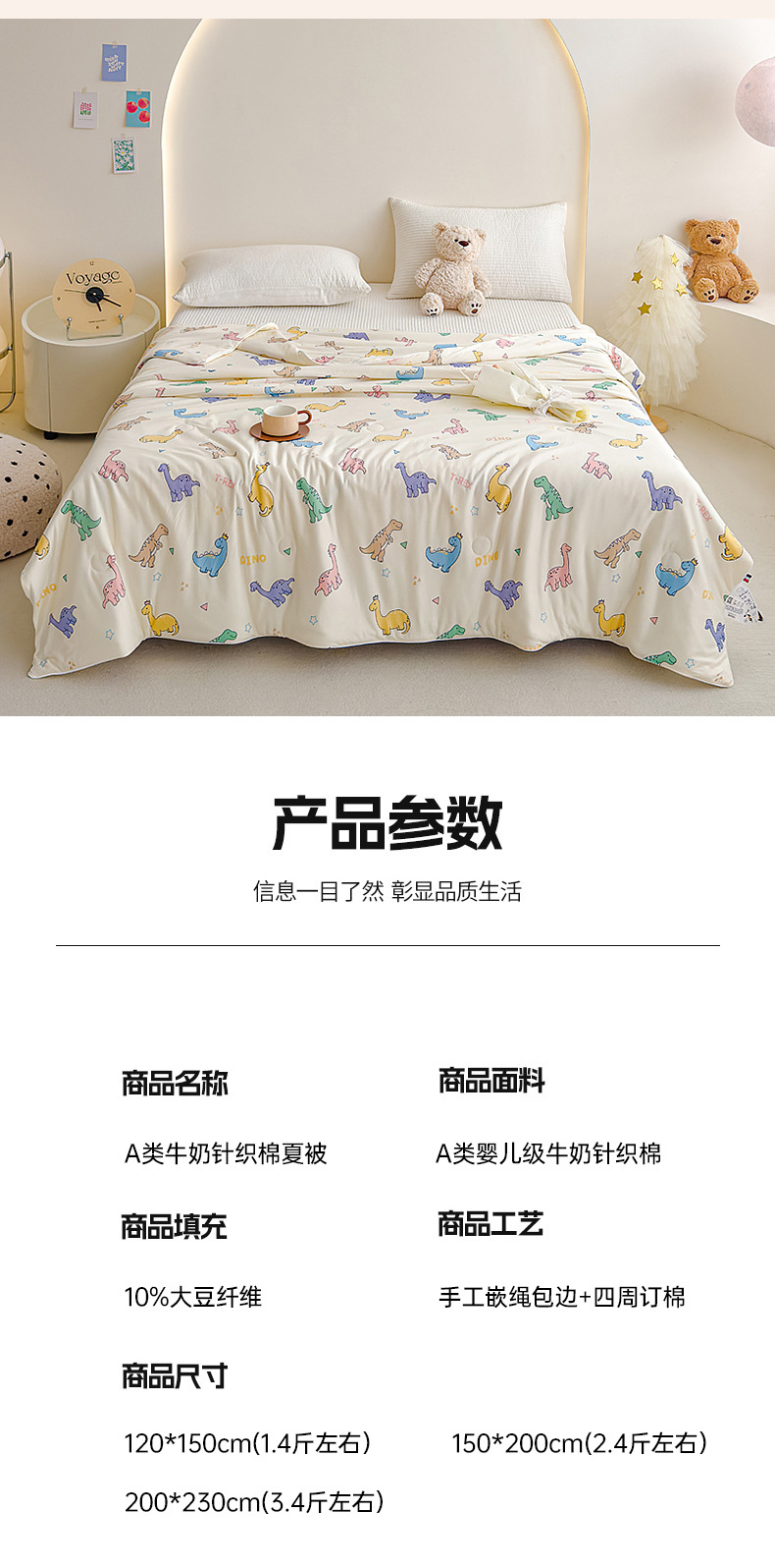 Edredones de algodón de punto de leche de clase a envueltos en verano 2024 se pueden lavar a máquina, pequeños y frescos niños edredones de aire acondicionado de verano.