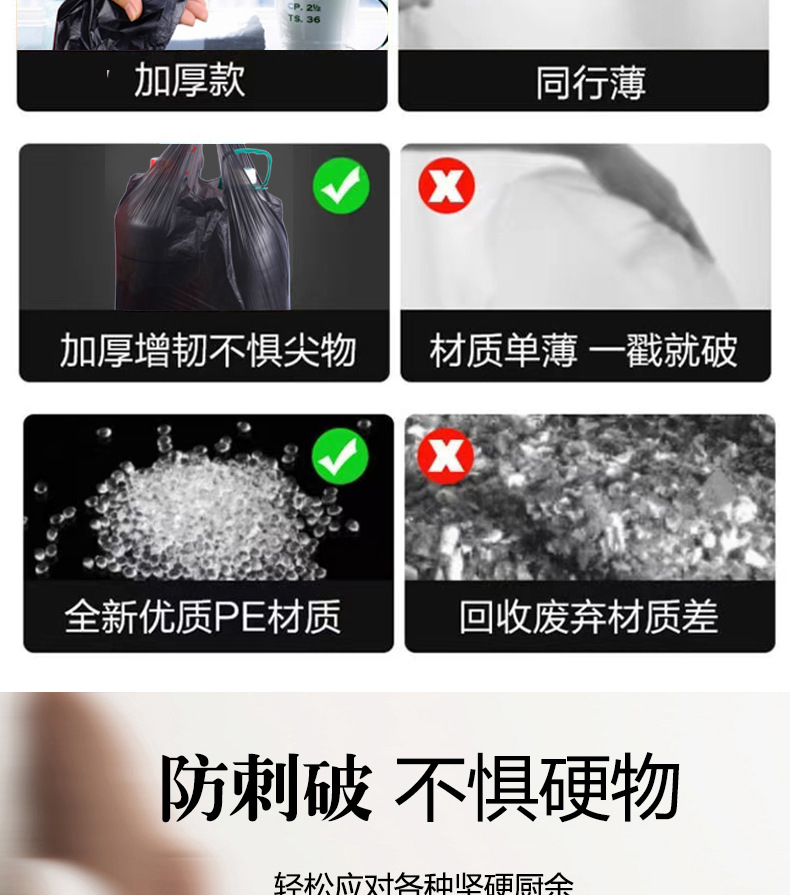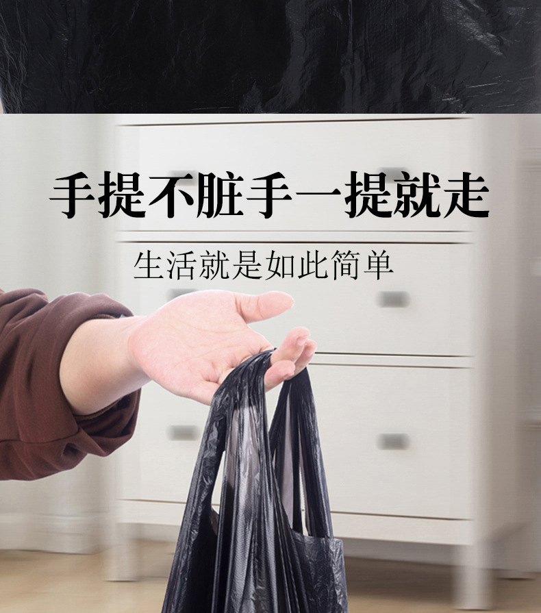 Bolsas de basura tipo chaleco, cocinas domésticas desechables al por mayor engrosadas bolsas de plástico negras clasificadas a mano para el hogar