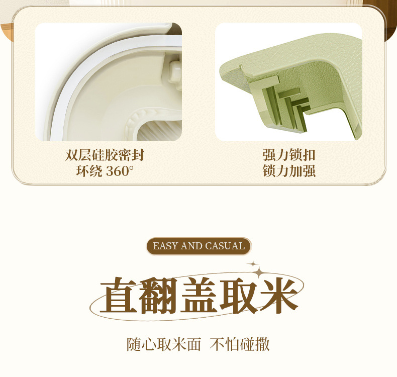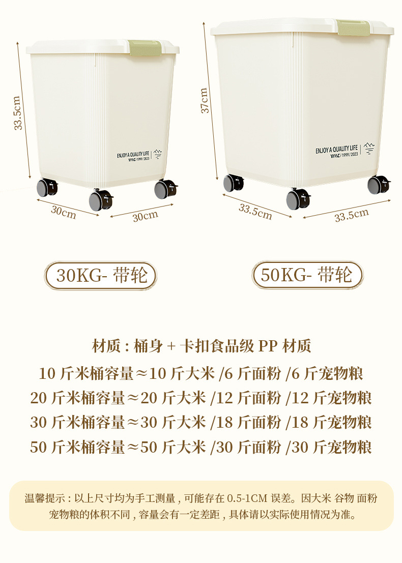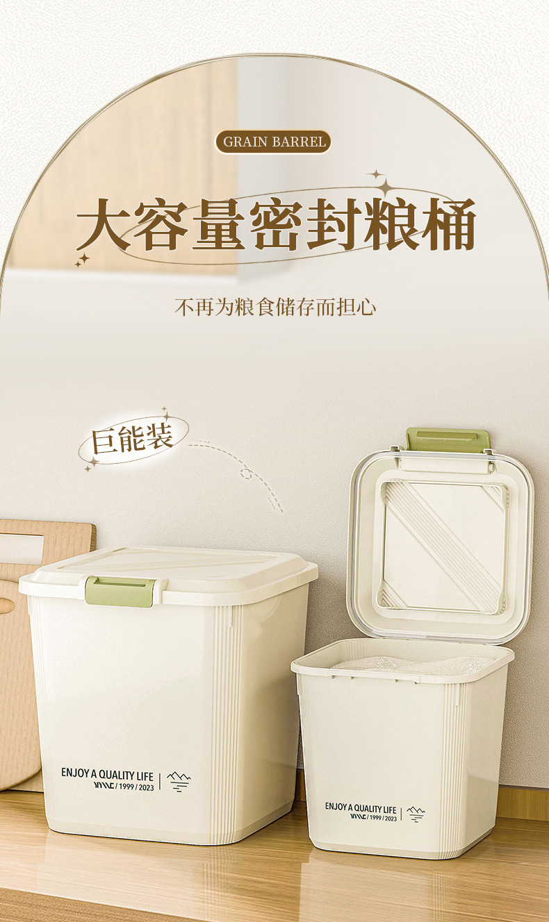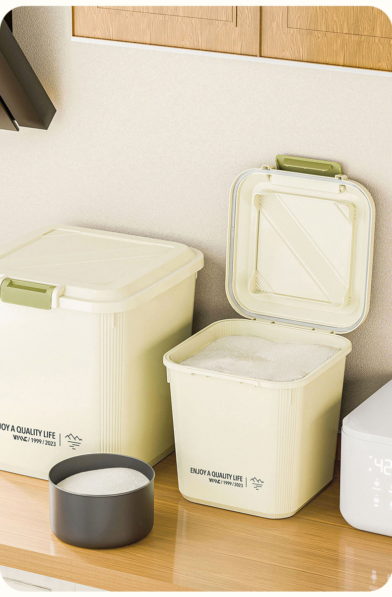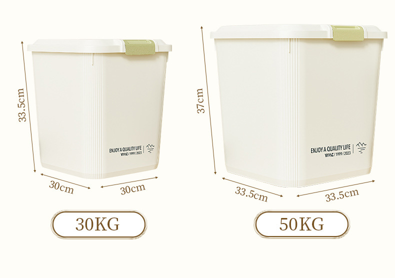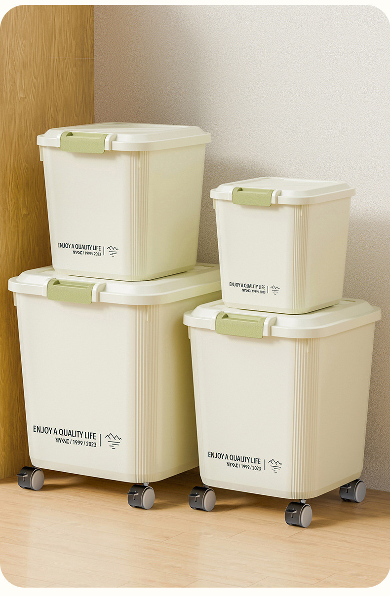 Cubo de arroz doméstico de gran capacidad 50 kilogramos sellado a prueba de humedad, tanque de almacenamiento de harina y cereales diversos con poleas 20 kilogramos caja de barril de arroz