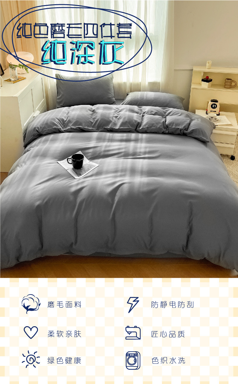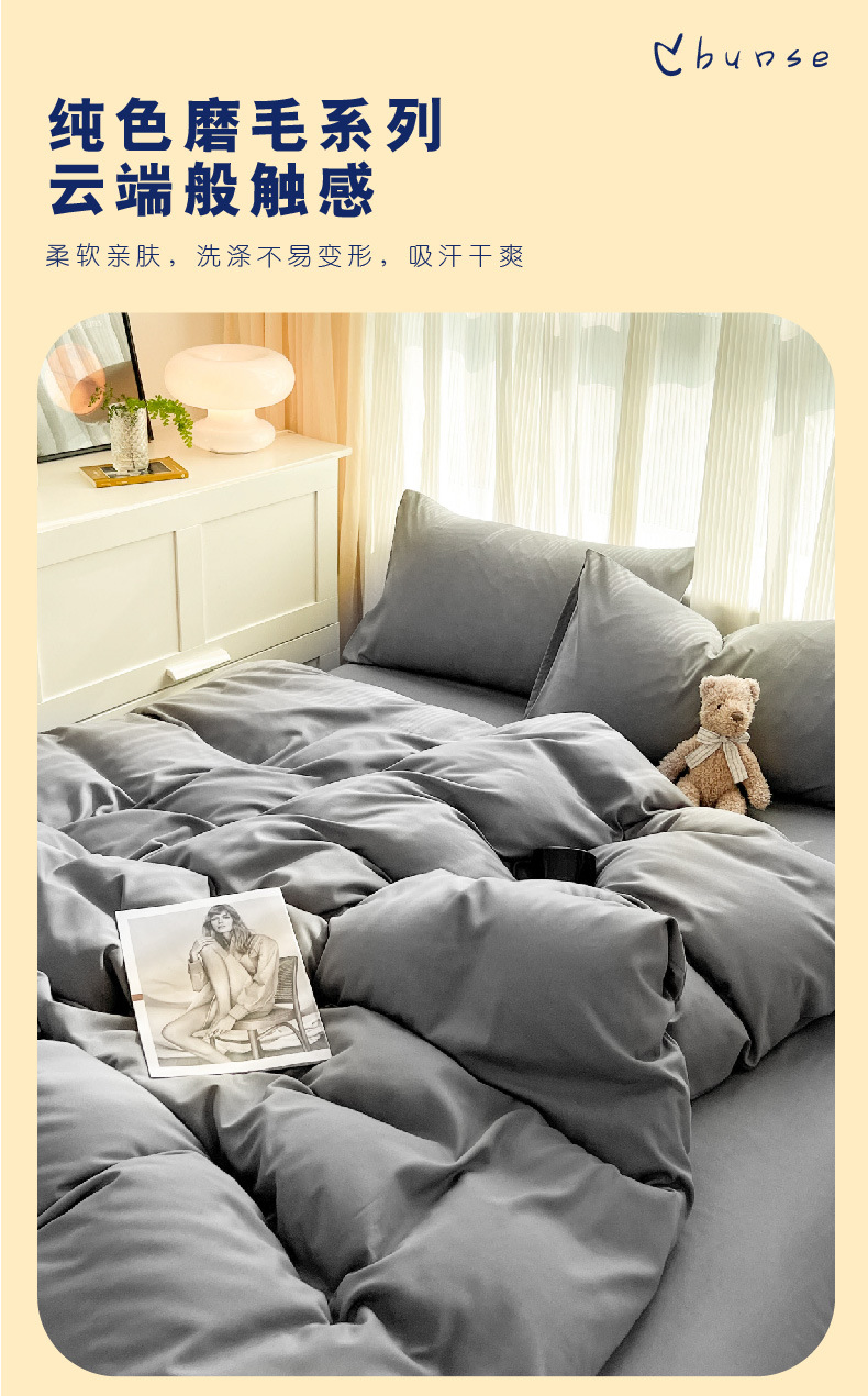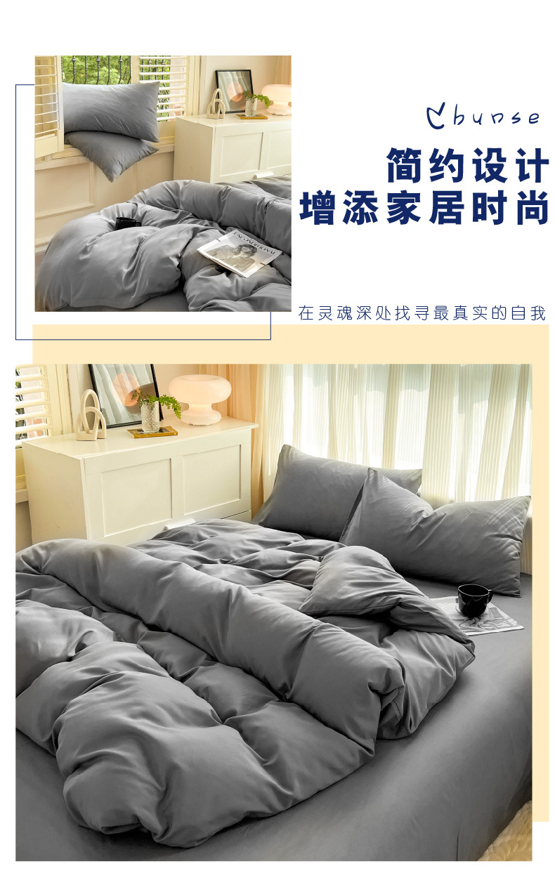 Ropa de cama de primavera 3 en el dormitorio de edredones de lavado de agua con un juego de cuatro piezas de pelo mate de color sólido de salida rápida al contado.