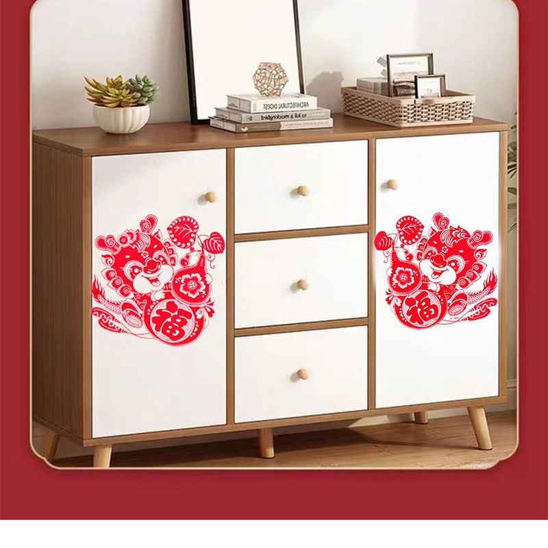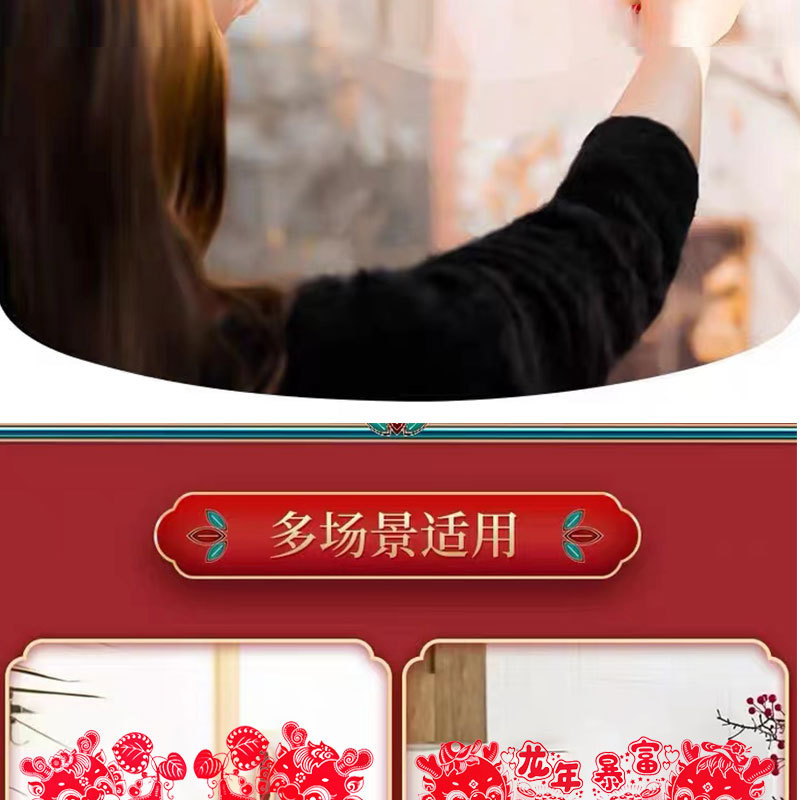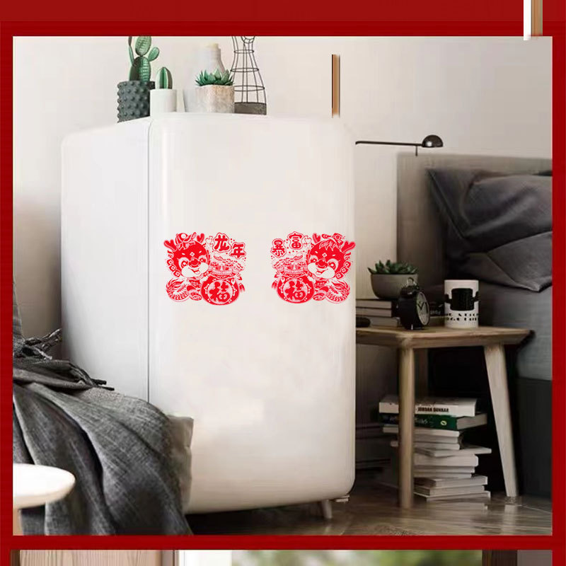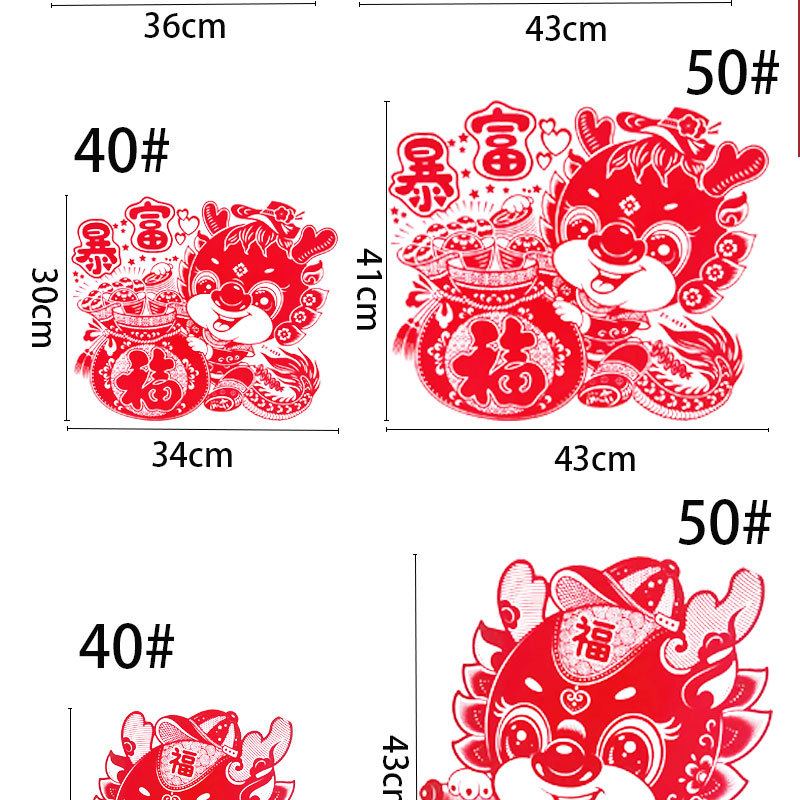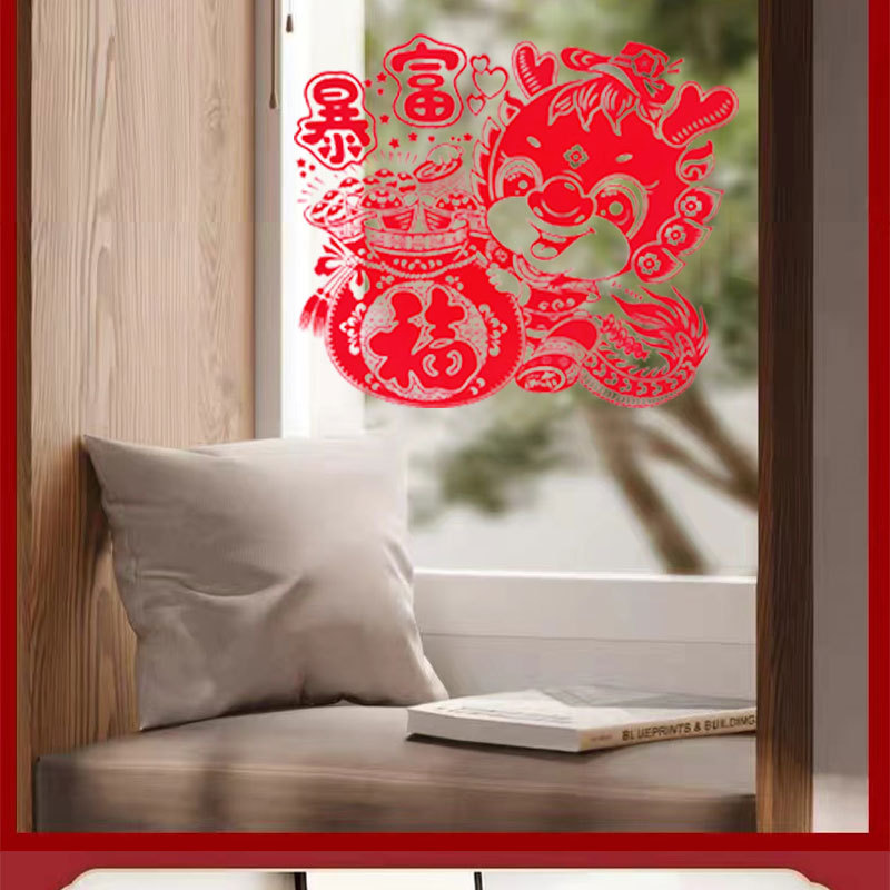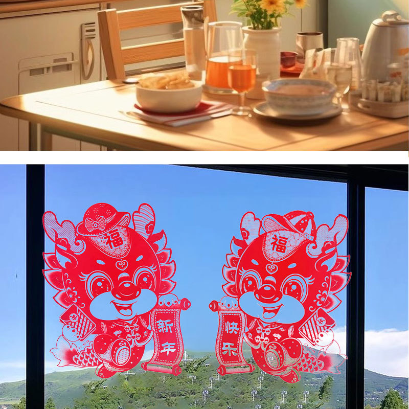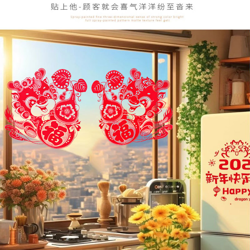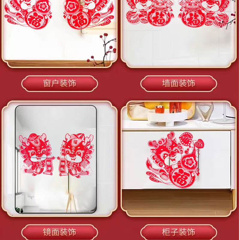2024 nuevo lote de pegatinas electrostáticas de ventanas, decoración del Festival de primavera sin pegamento, pegatinas de ventanas de vidrio Xiao long, pinturas de año nuevo de corte de papel