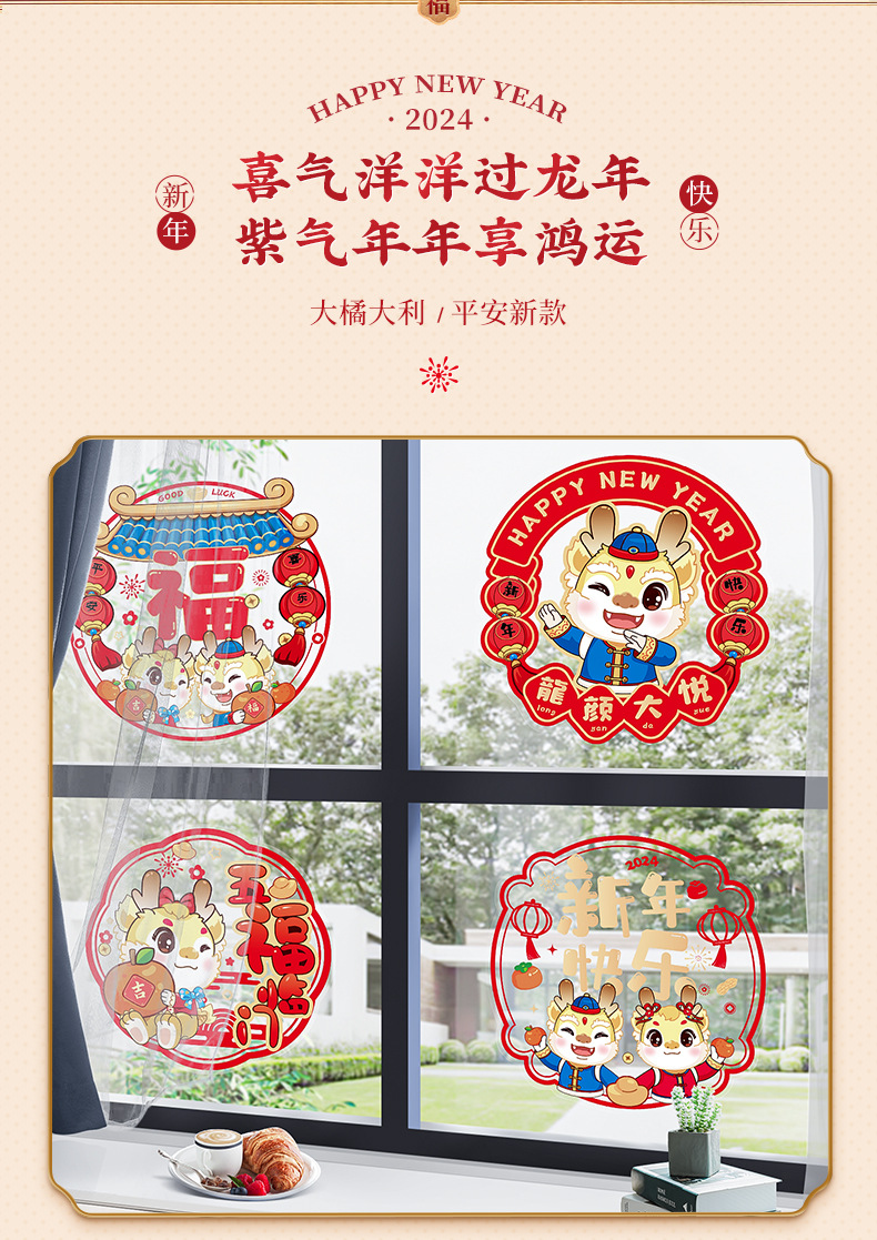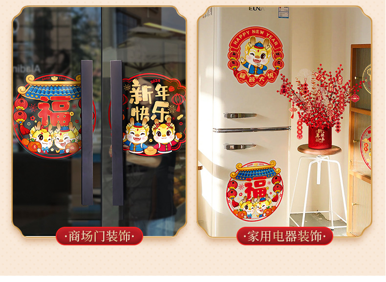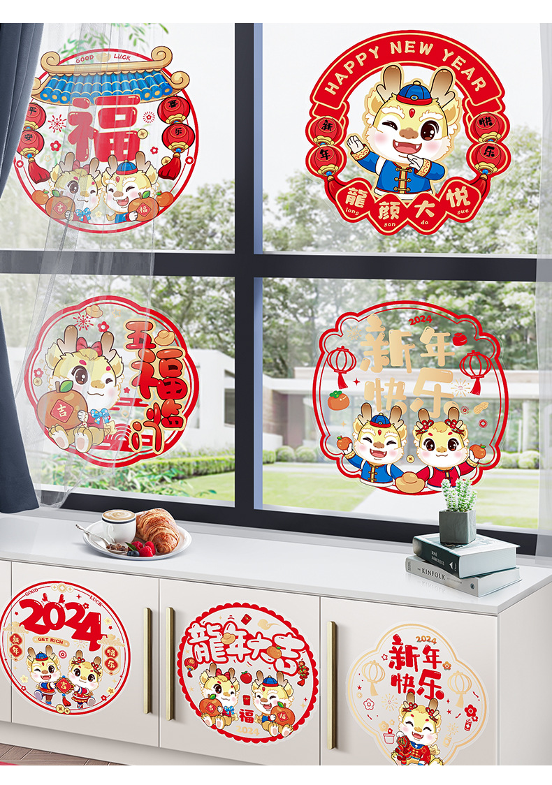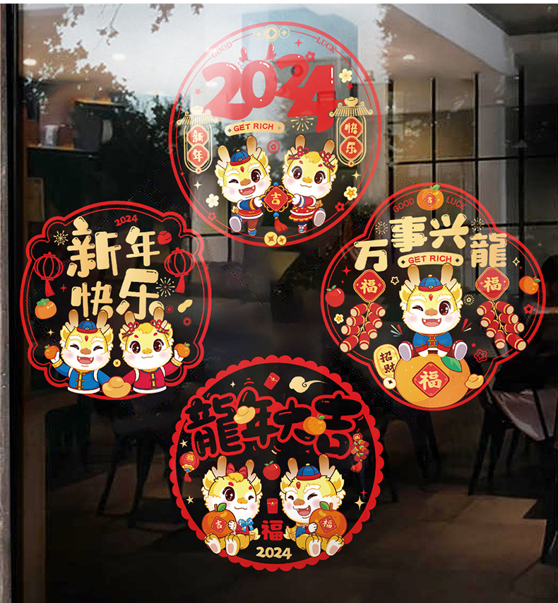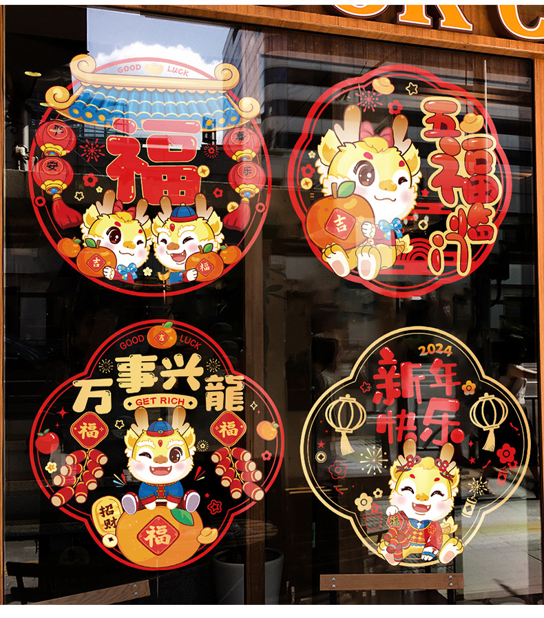 2024 nueva ventana del año del dragón, pegado electrostático del zodiaco, pegado a la ventana de productos decorativos del Festival de primavera, pegado al patrón de año nuevo de Daji