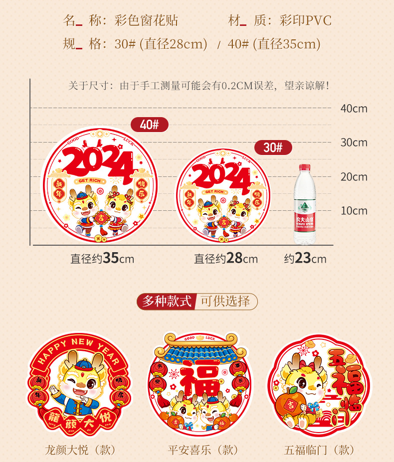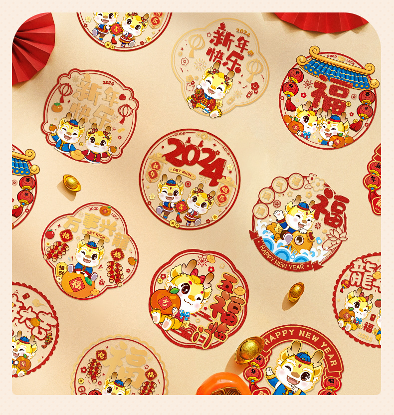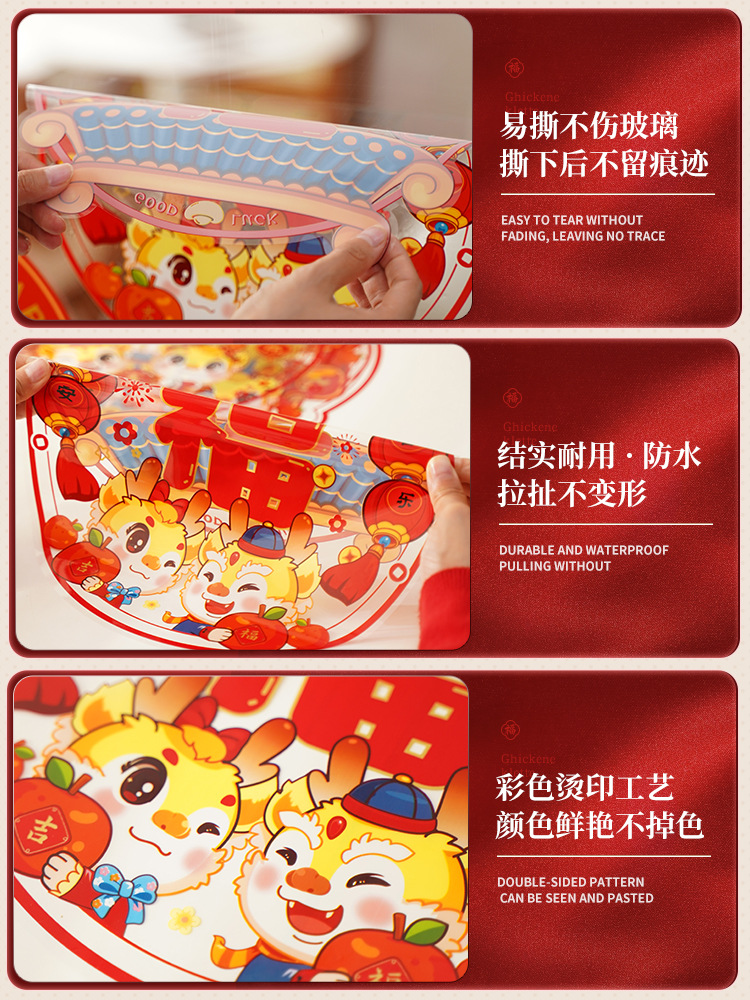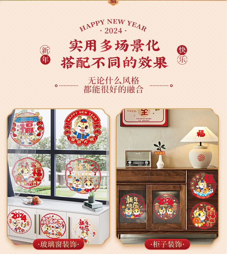2024 nueva ventana del año del dragón, pegado electrostático del zodiaco, pegado a la ventana de productos decorativos del Festival de primavera, pegado al patrón de año nuevo de Daji