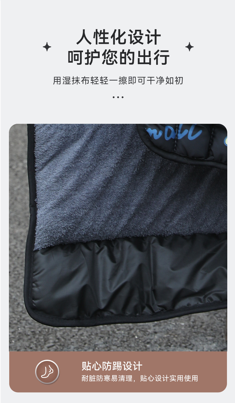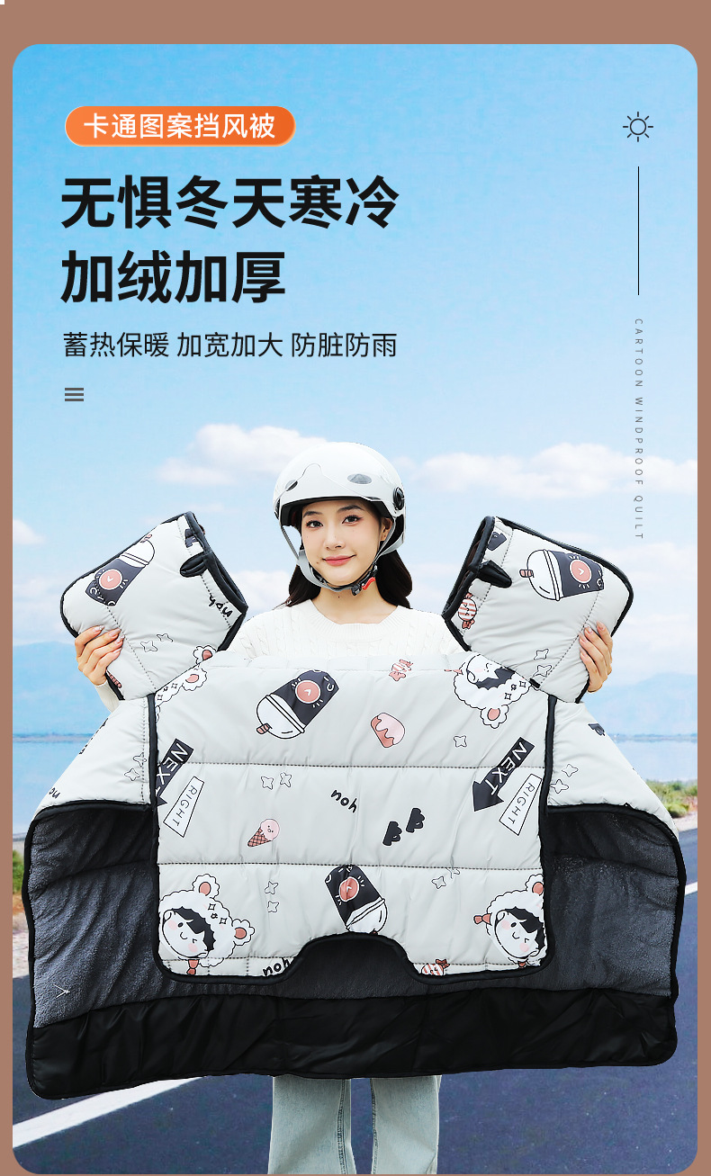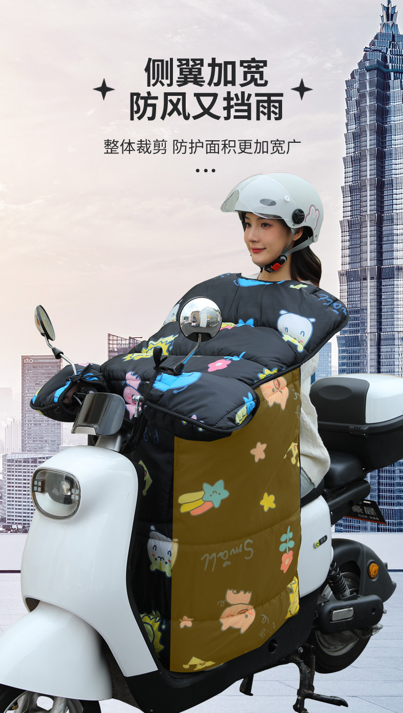 El parabrisas de los vehículos eléctricos se engrosa con terciopelo para mantener el calor, la protección contra el viento de los vehículos de batería se utiliza comúnmente en las cuatro estaciones por la protección contra el viento de las motocicletas en invierno.