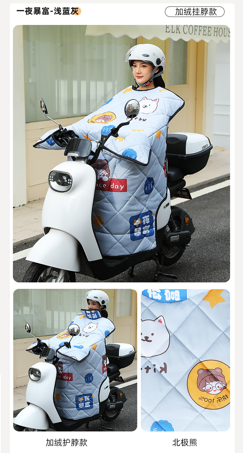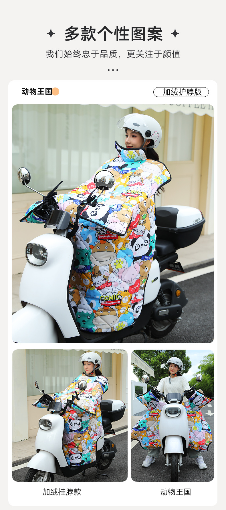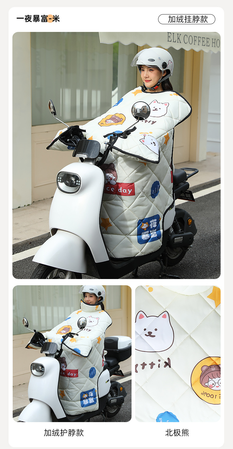 El parabrisas de los vehículos eléctricos se engrosa con terciopelo para mantener el calor, la protección contra el viento de los vehículos de batería se utiliza comúnmente en las cuatro estaciones por la protección contra el viento de las motocicletas en invierno.