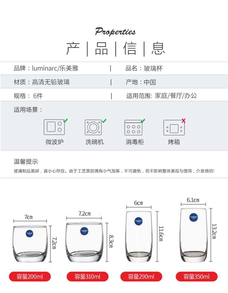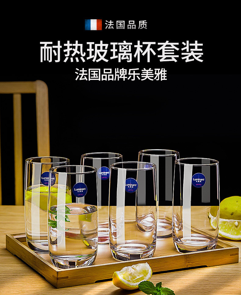 Le meiya Glass hogar resistente al calor engrosado taza de té vaso de agua de vidrio juego transparente 6 vasos de agua para el hogar