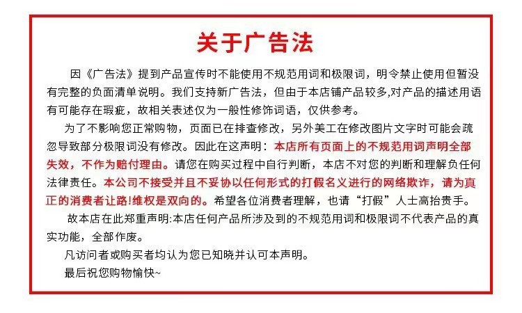 关于售后 1.非质量问题退换货买家需承担出厂运费及退货运费,每个产品都是经过检测好以后在发货的,没有质量问题,如运输途中挤压导致损坏,最高承担5元运费 2.超过15天质量问题可以维修,维修往返运费自付,收到货务必验货后再签收。 3.在不影响商品第二次销售的情况下支持七天包换(寄回来的运费需自理) 温馨提示:本产品属性仅供参考,为了确保您对我们的产品满意,请下单前旺旺或电话咨询产品详情,感谢您的理解与支持 插头型号:内销国标三插、国内漏宝批次不一样,如果出现和详情图片不一样的,概不处理属于正常现象, |