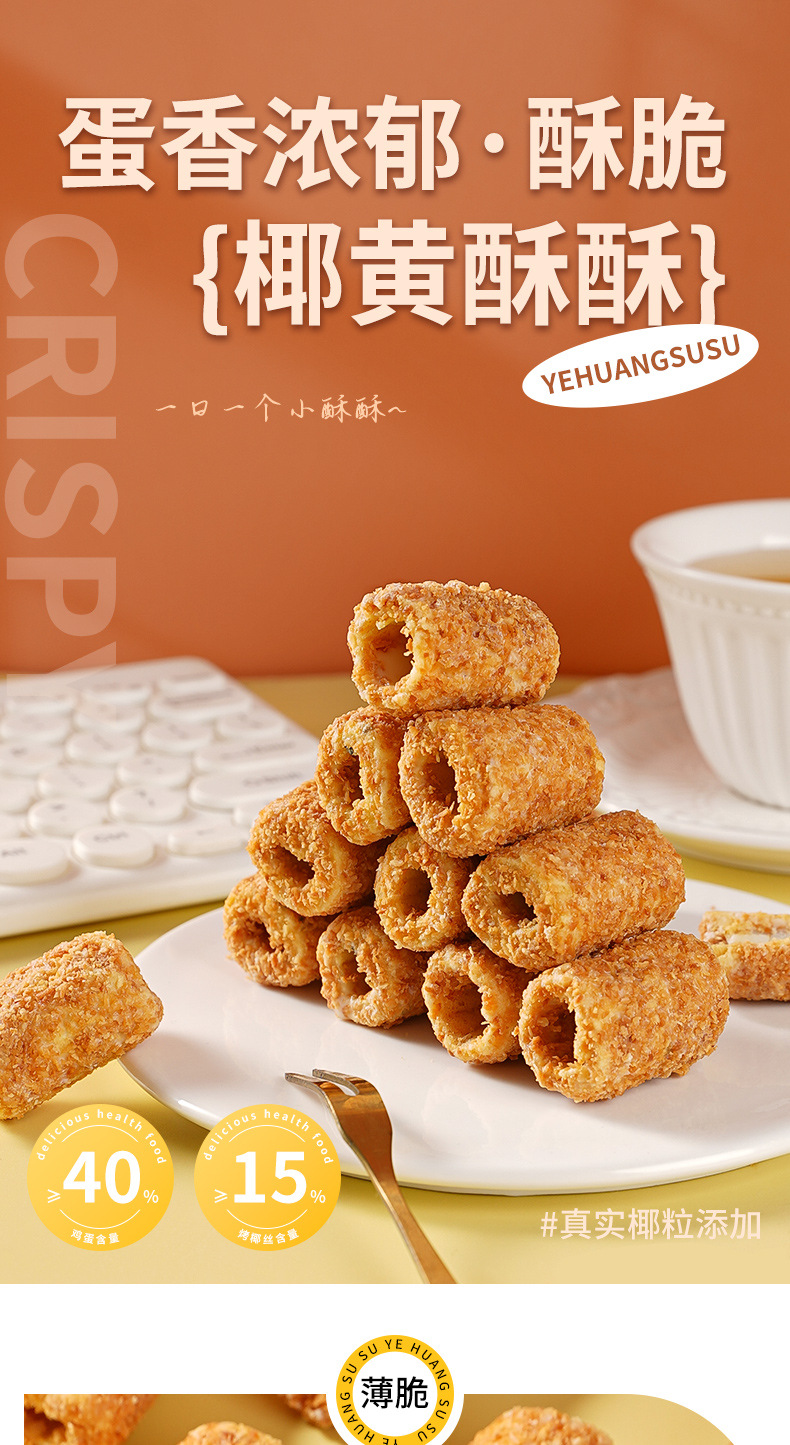 Red Red Coconut crujiente crujiente rollo de huevo artesanal comida de ocio, pastelería en lugar de comida, bocadillos de oficina al por mayor a granel
