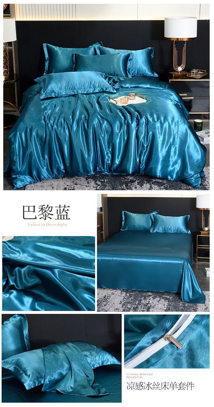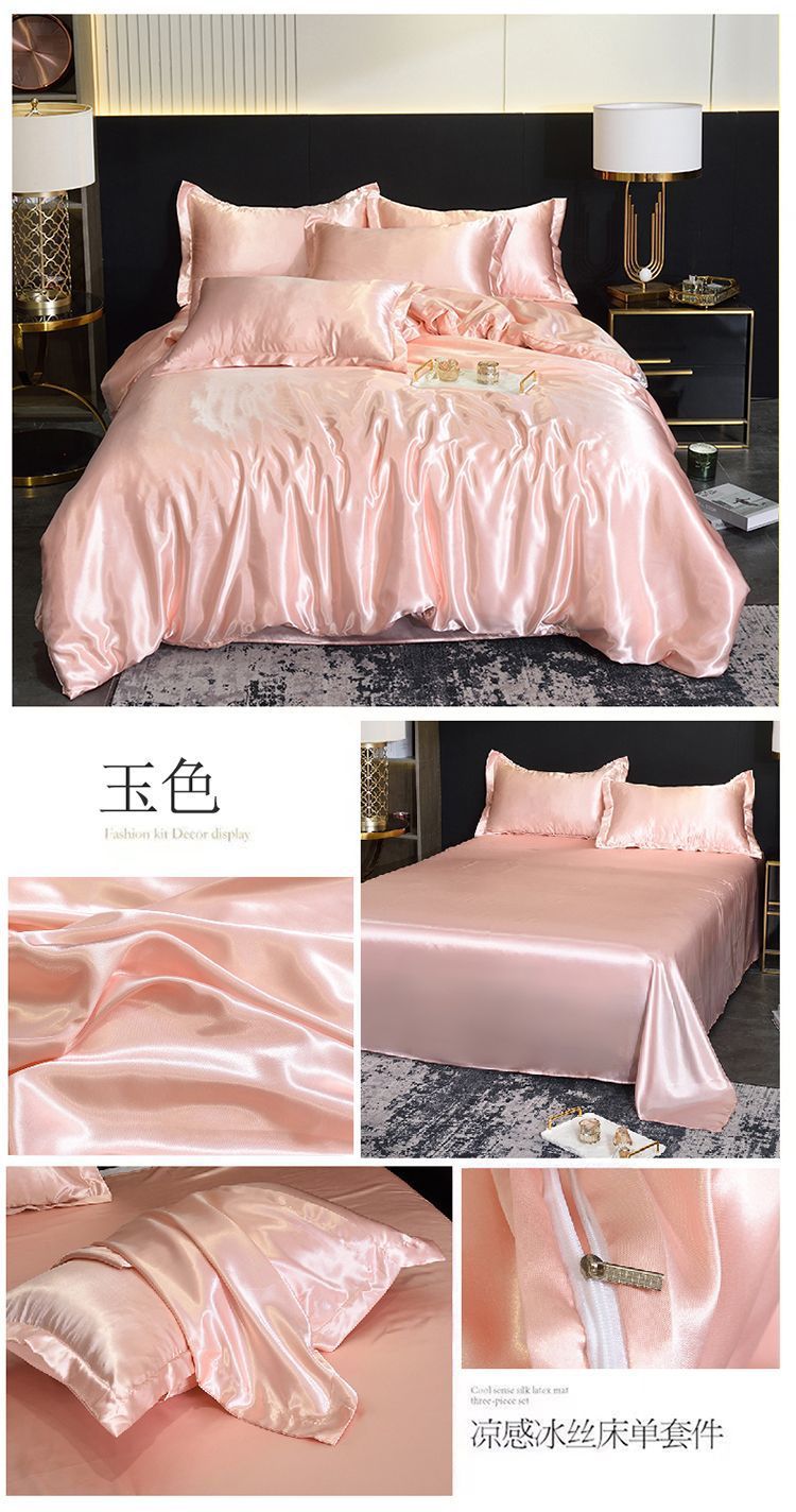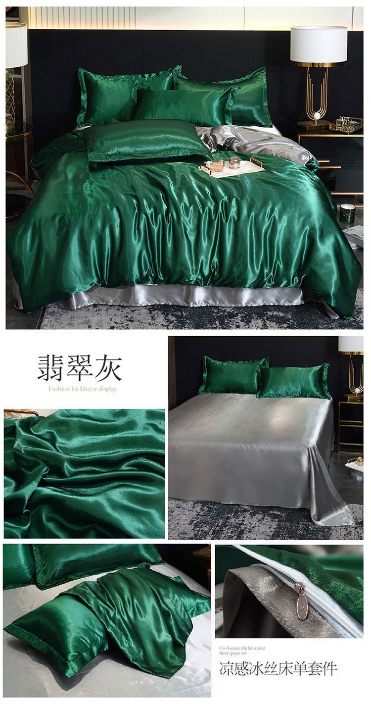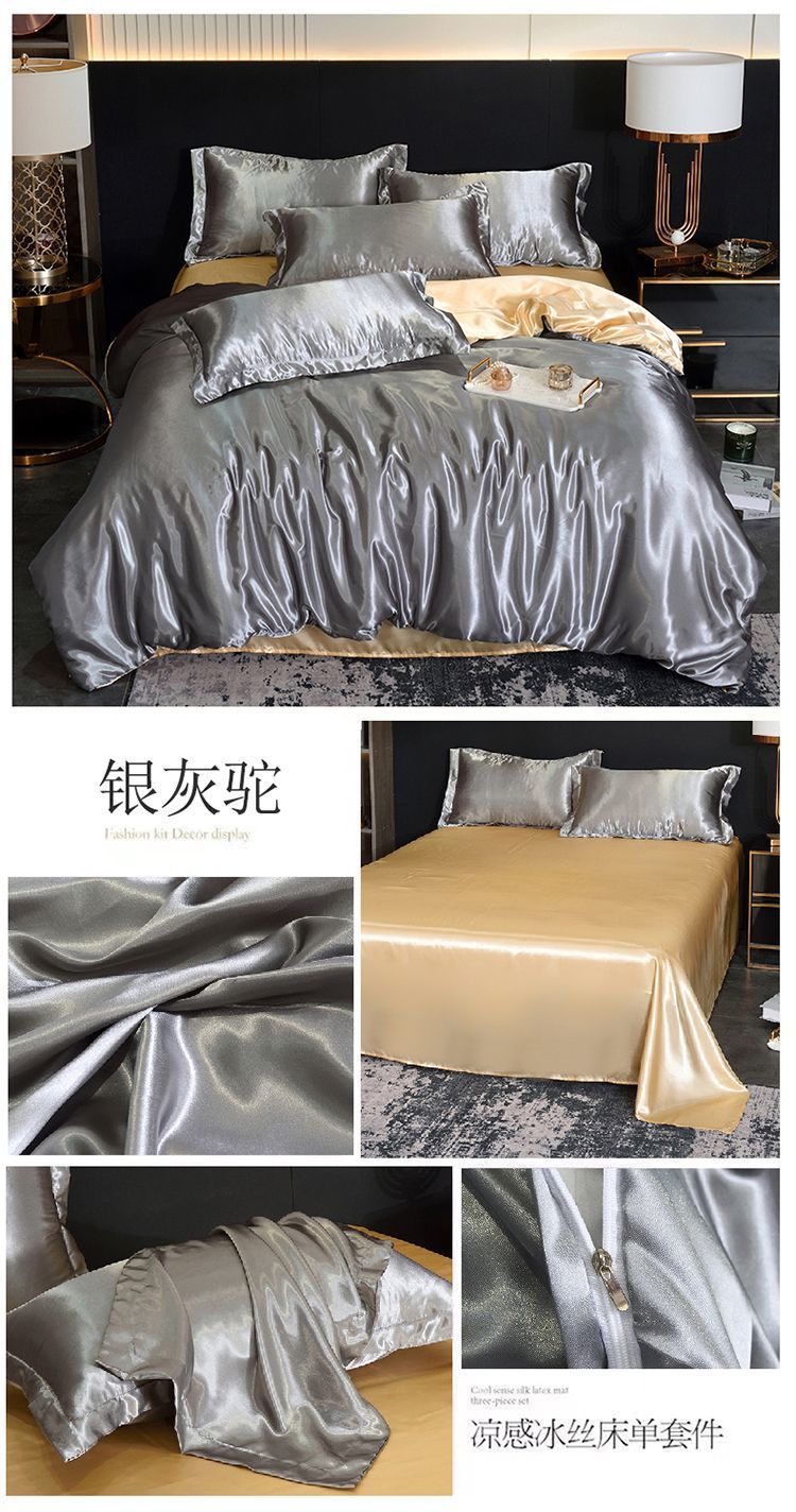 Edredones de seda de hielo de lujo ligero, cuatro juegos de lana antiadherente, edredones de seda de doble cara, tres juegos de ropa de cama en un solo dormitorio en verano