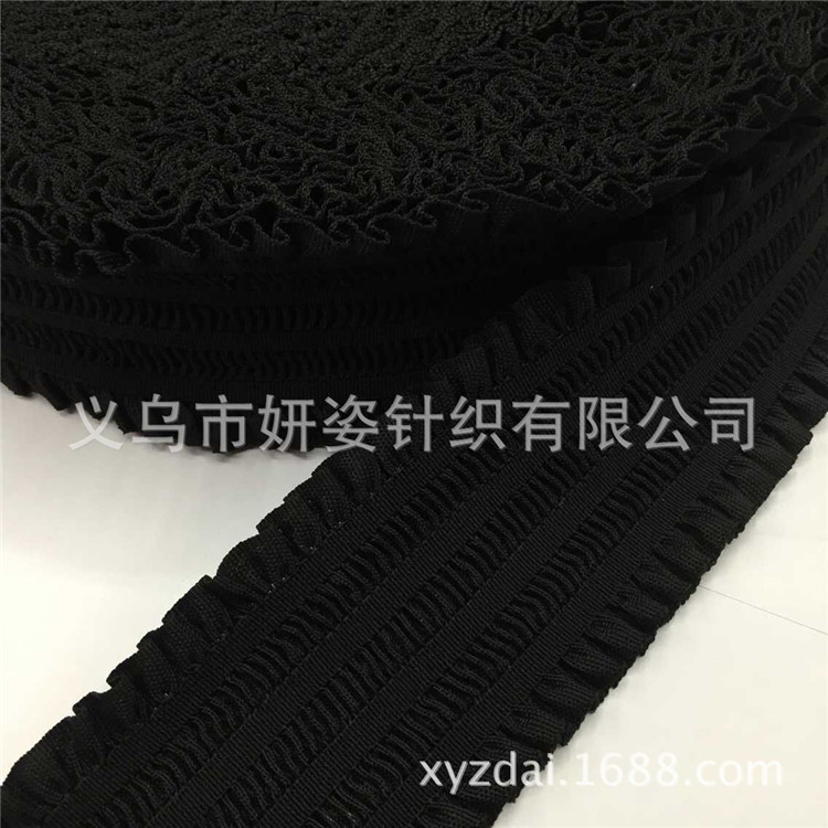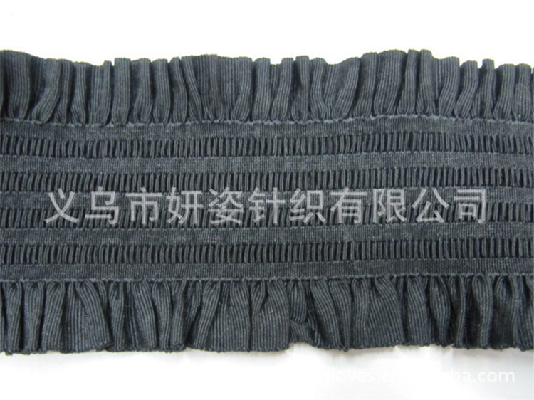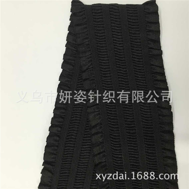 7CM黑色裙边松紧带,现货供应,45米一卷,价格实惠。货量充足,欢迎有需要的客户订购。一般用于装饰腰带,裙边带等装饰用收腰用。 销售地址:义乌国际商贸城40925号 详情请联系:王巧芬 手 机:13566974962 电话:0579-85296945 传真:0579-82854322