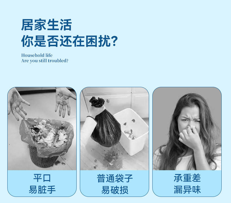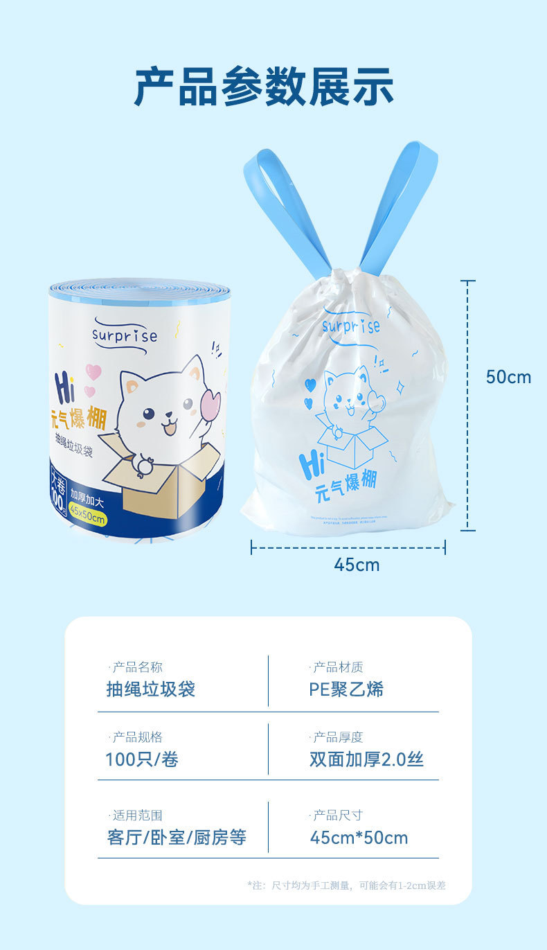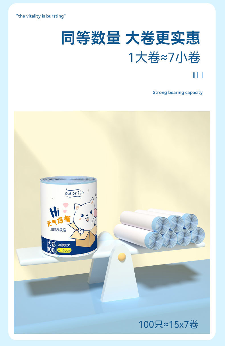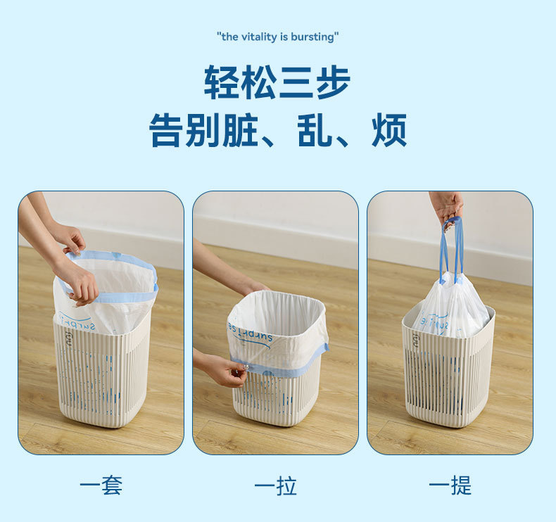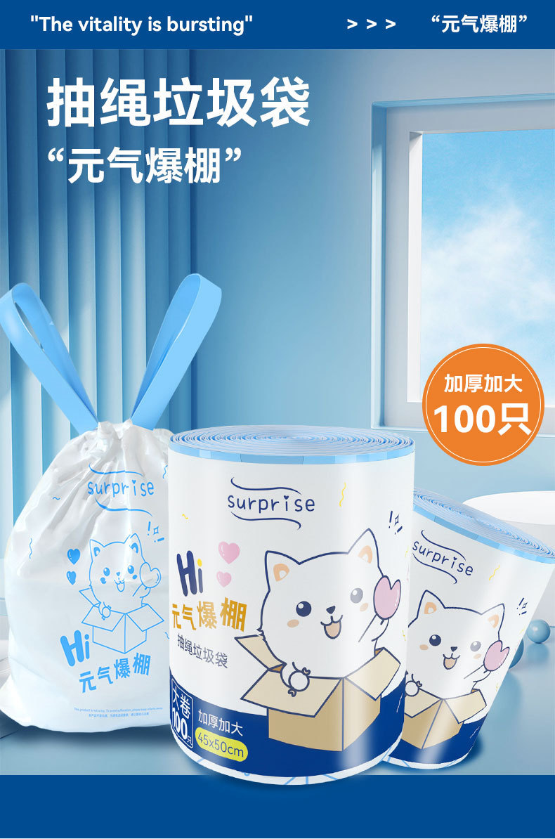 Bolsa de basura tipo cuerda engrosada para el hogar, cocina del dormitorio de chanel, baño, gran rollo de bolsa de basura portátil