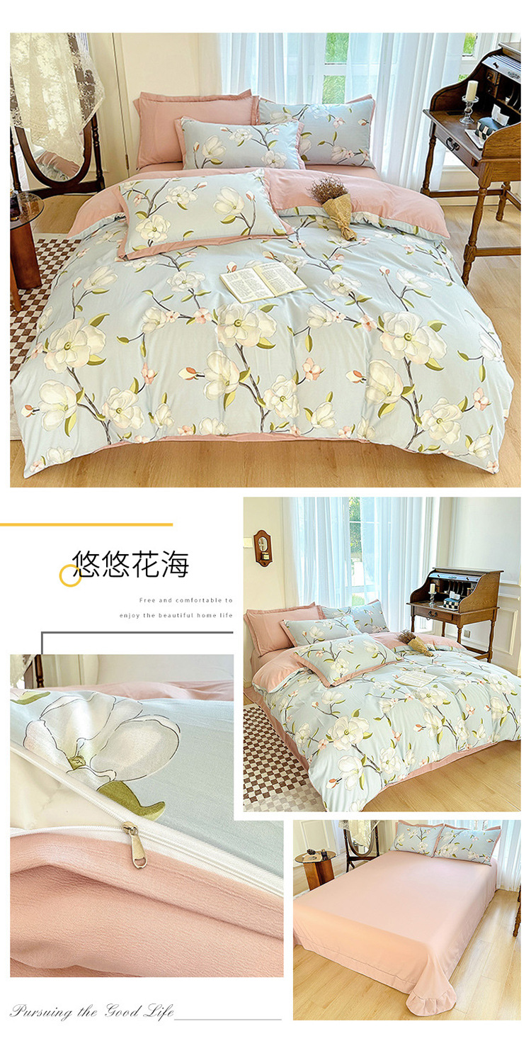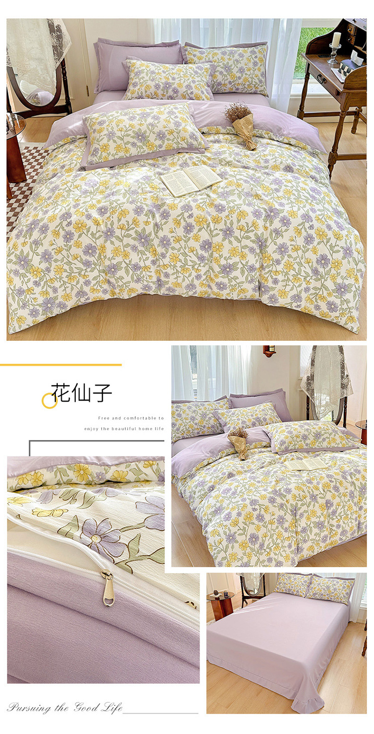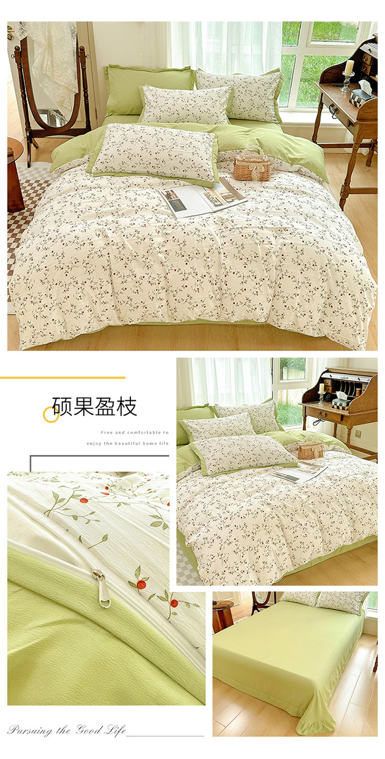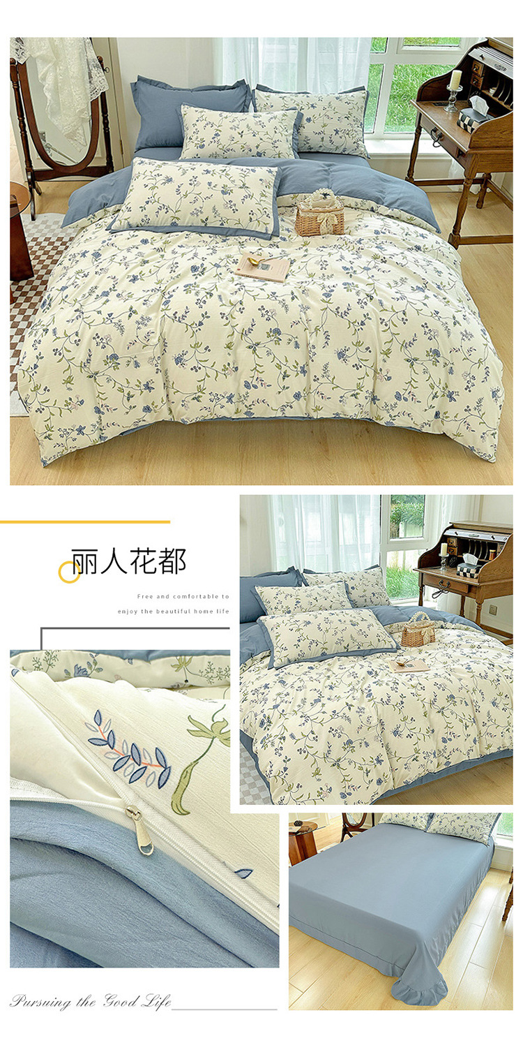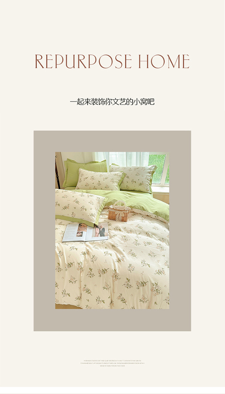 Primavera y verano, hilo de doble capa de clase a, lavado con agua, algodón y cáñamo, cuatro juegos de edredones de flores trituradas blandas y glutinosas, ropa de cama de bambú en el dormitorio de estudiantes