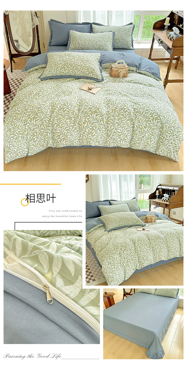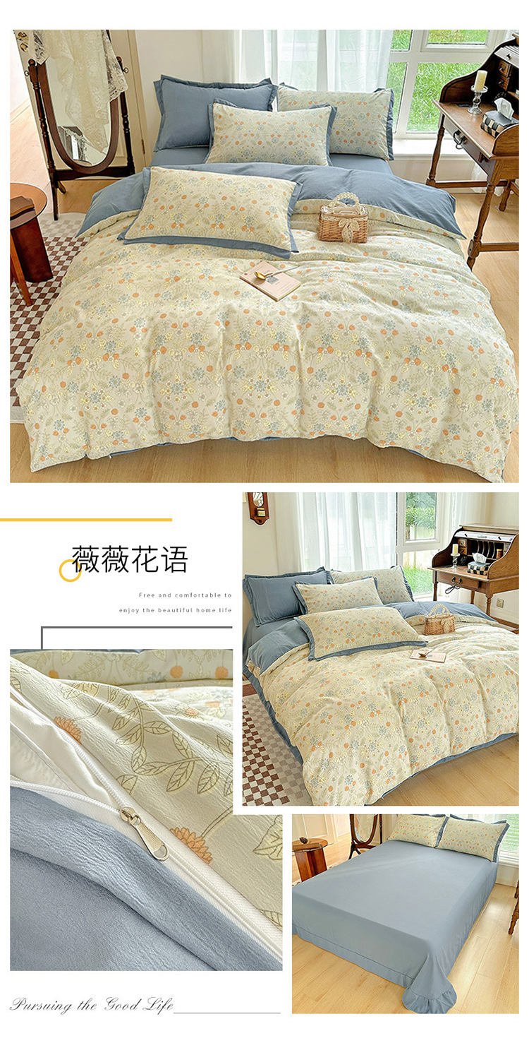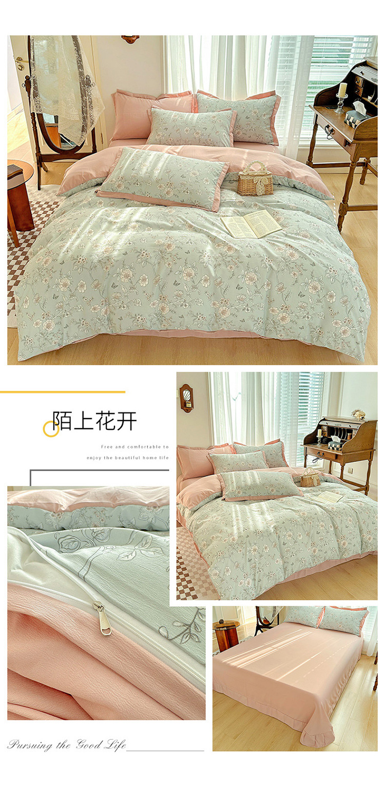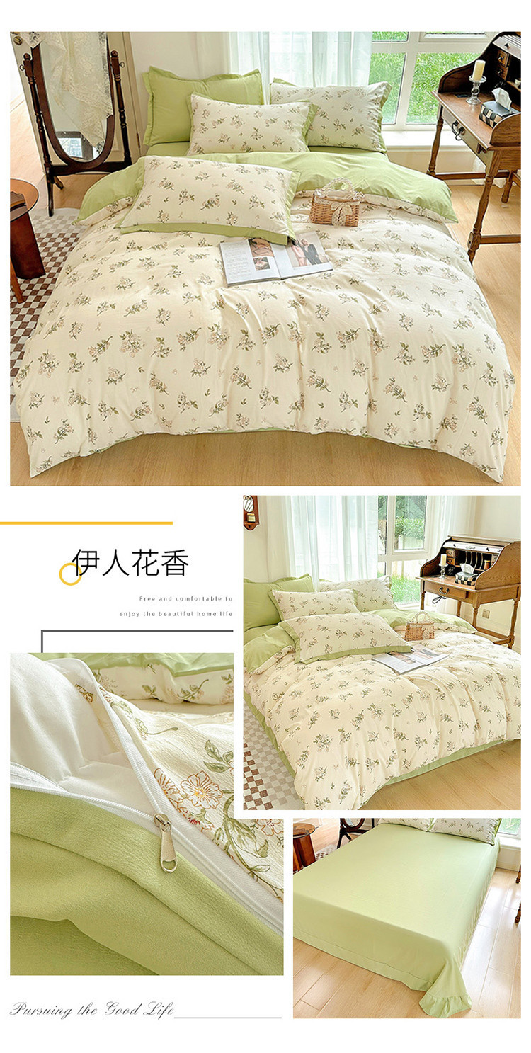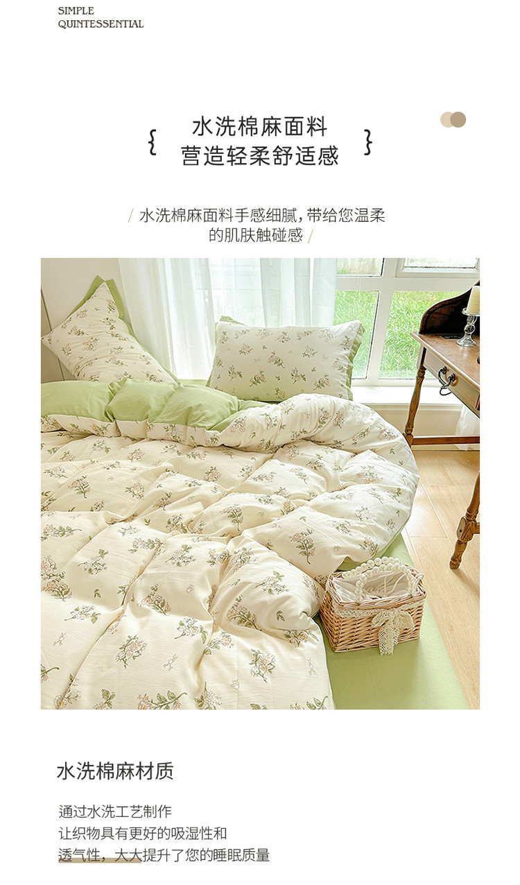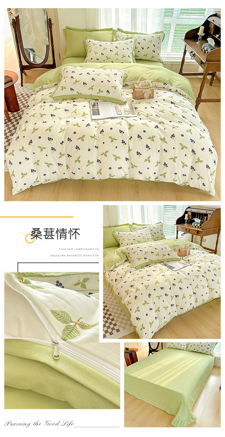 Primavera y verano, hilo de doble capa de clase a, lavado con agua, algodón y cáñamo, cuatro juegos de edredones de flores trituradas blandas y glutinosas, ropa de cama de bambú en el dormitorio de estudiantes