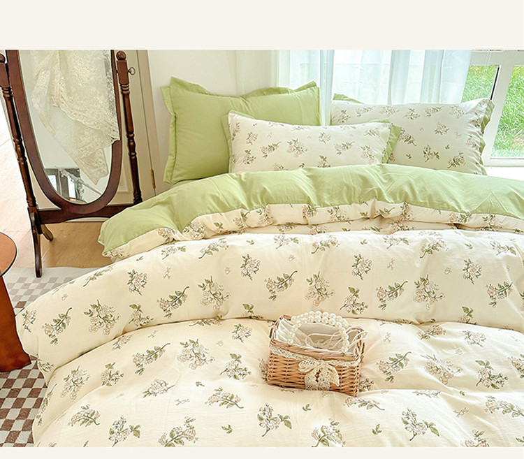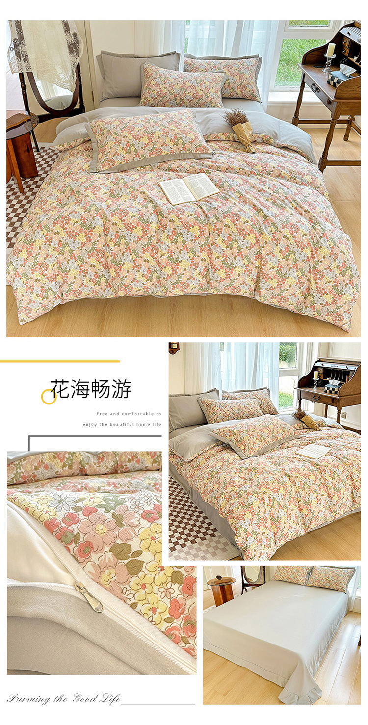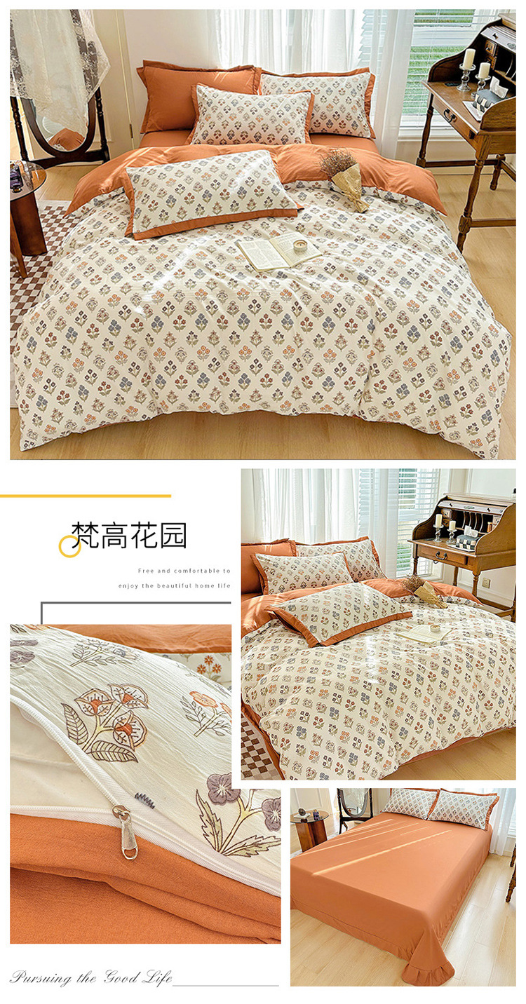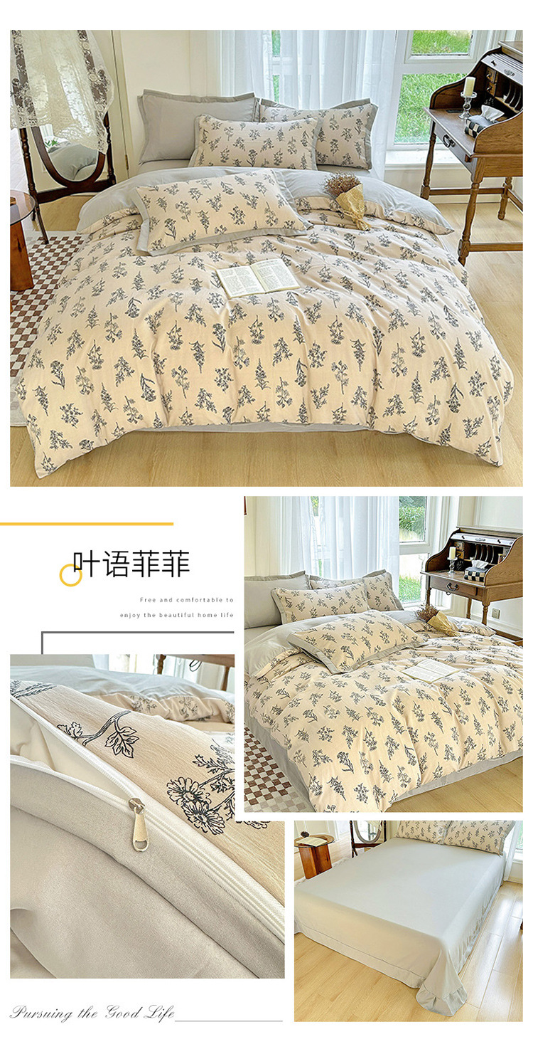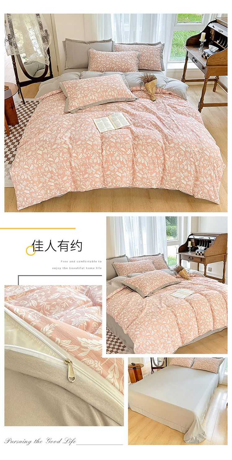 Primavera y verano, hilo de doble capa de clase a, lavado con agua, algodón y cáñamo, cuatro juegos de edredones de flores trituradas blandas y glutinosas, ropa de cama de bambú en el dormitorio de estudiantes