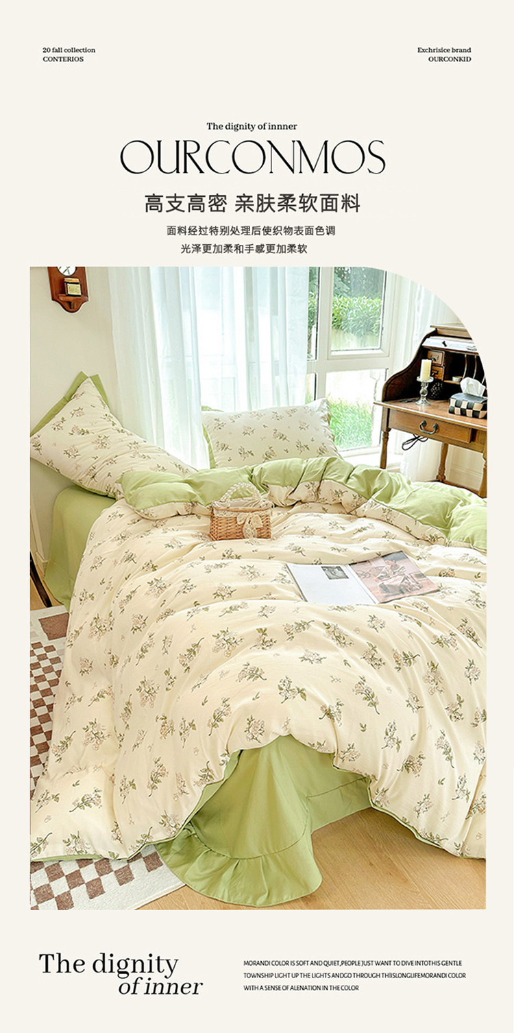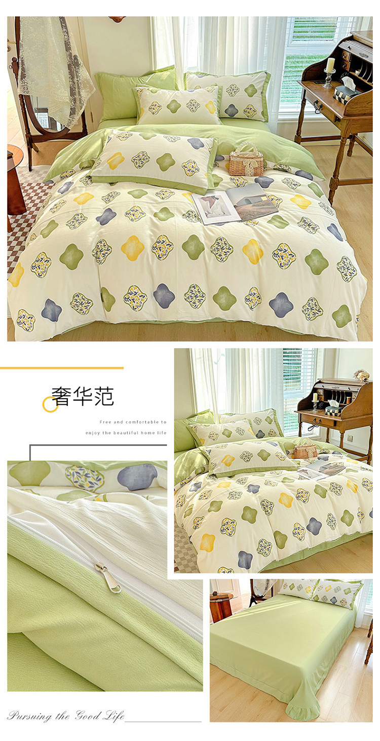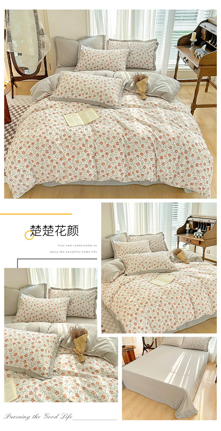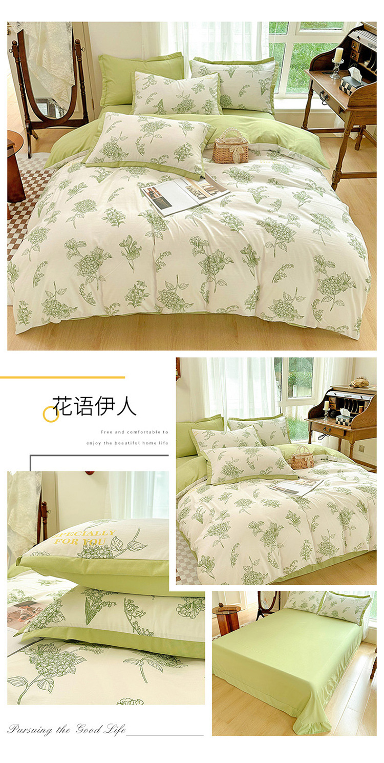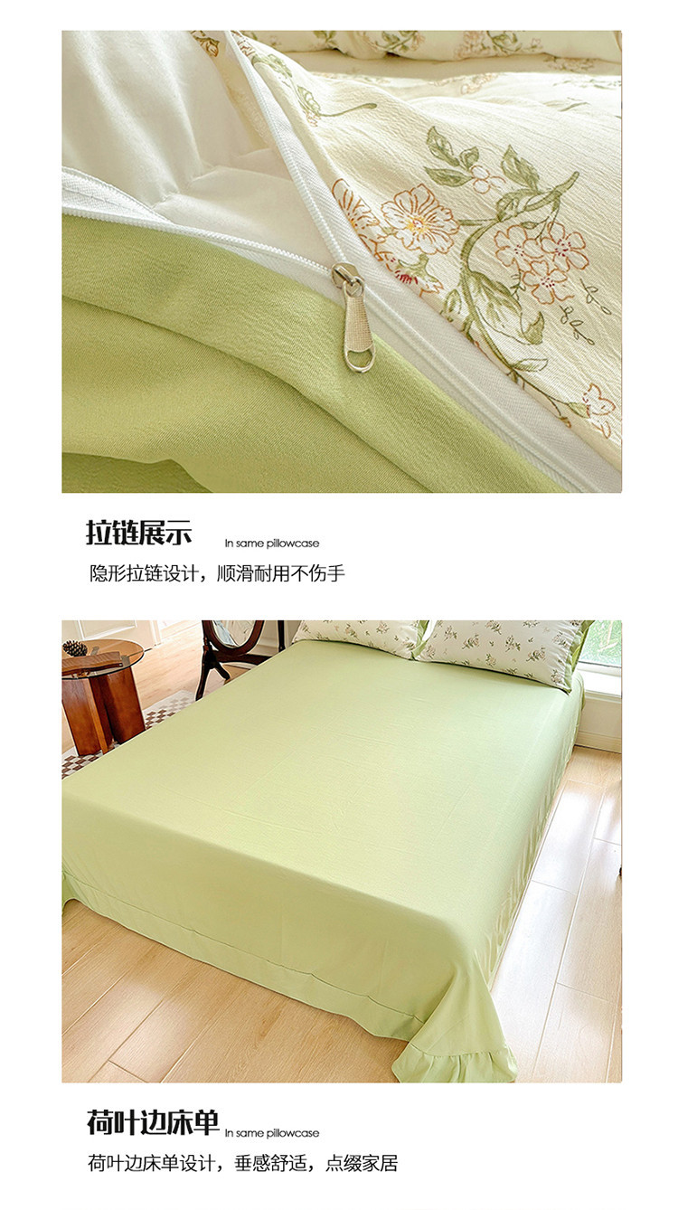 Primavera y verano, hilo de doble capa de clase a, lavado con agua, algodón y cáñamo, cuatro juegos de edredones de flores trituradas blandas y glutinosas, ropa de cama de bambú en el dormitorio de estudiantes
