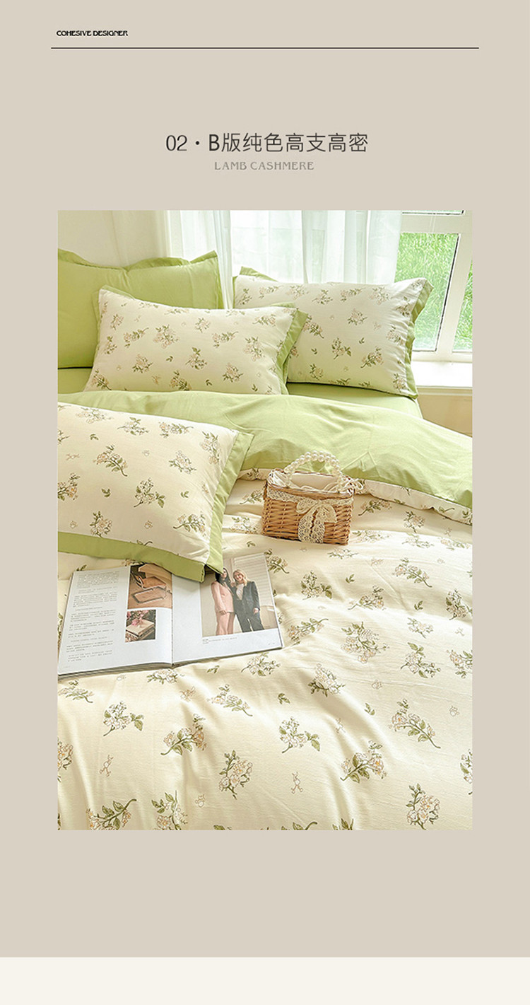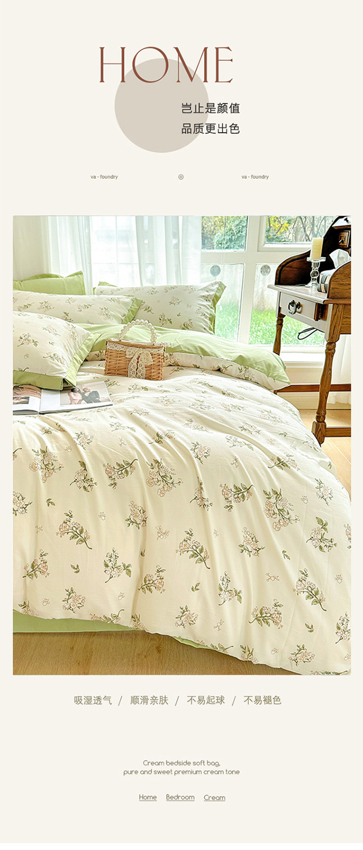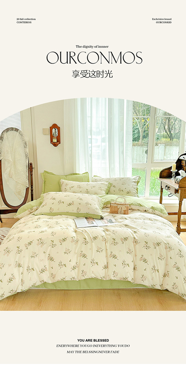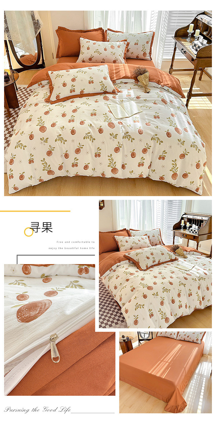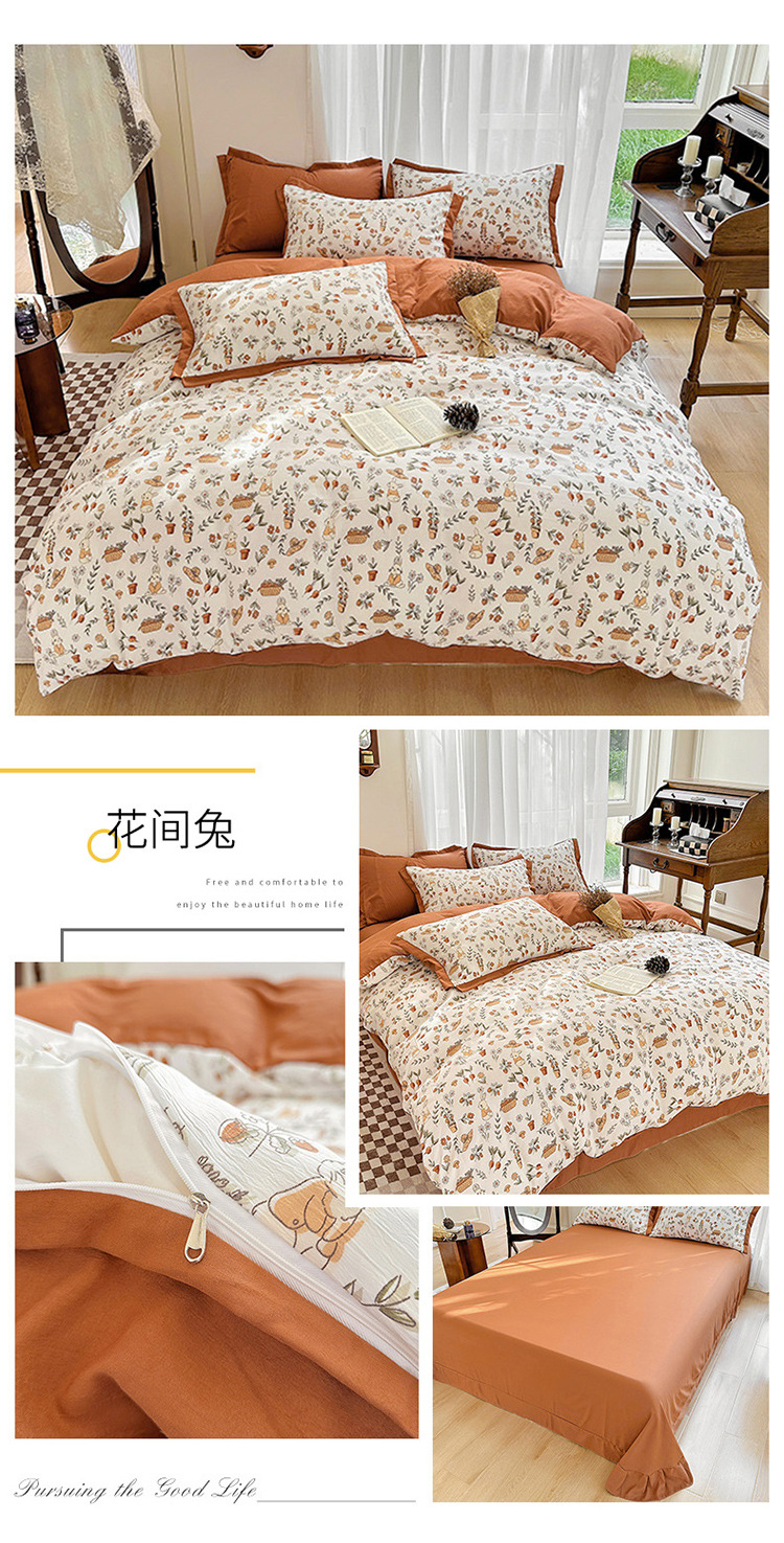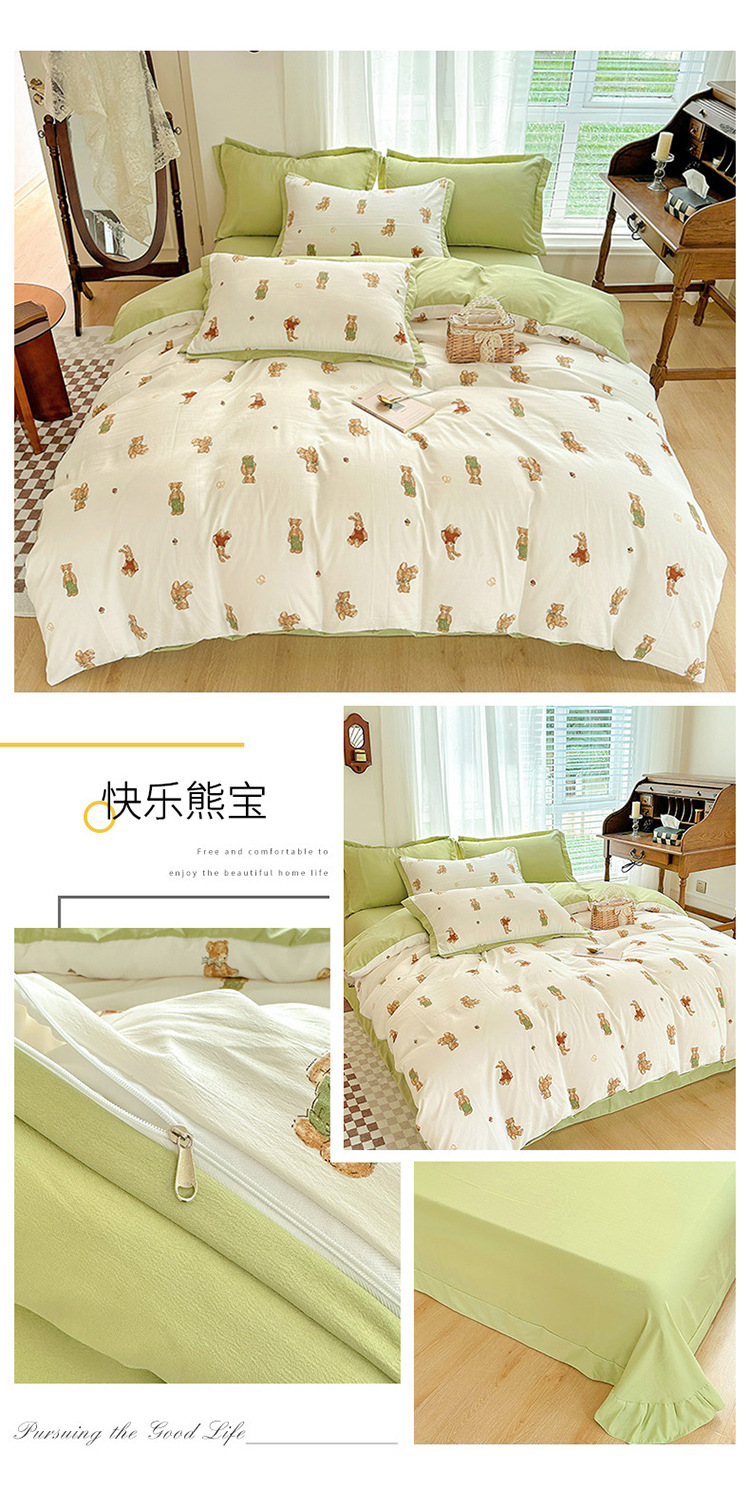 Primavera y verano, hilo de doble capa de clase a, lavado con agua, algodón y cáñamo, cuatro juegos de edredones de flores trituradas blandas y glutinosas, ropa de cama de bambú en el dormitorio de estudiantes