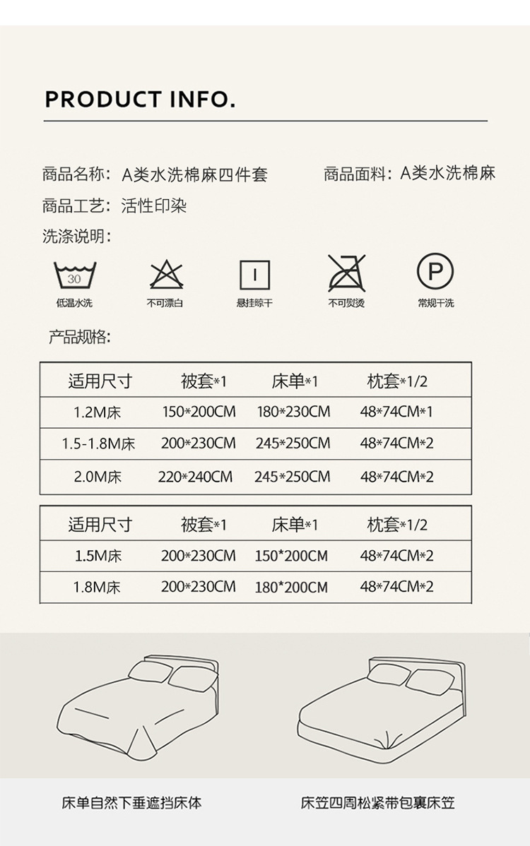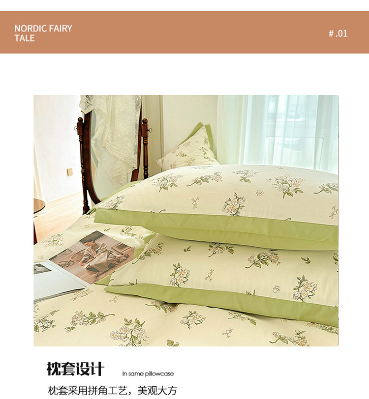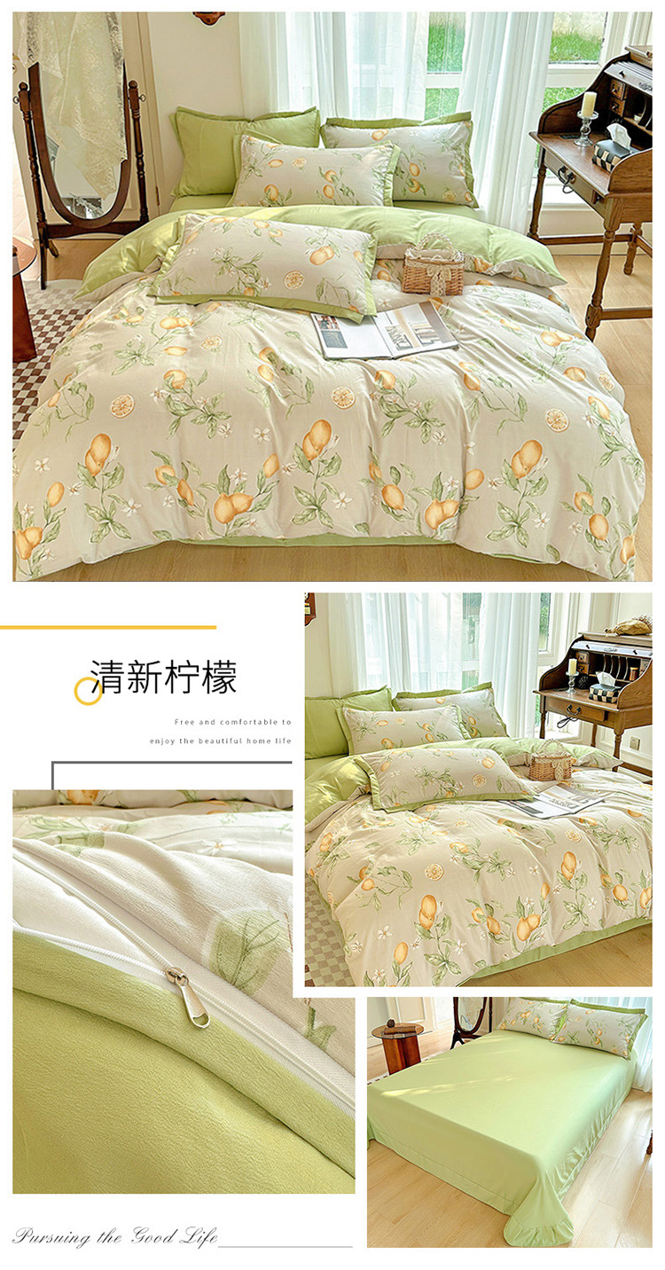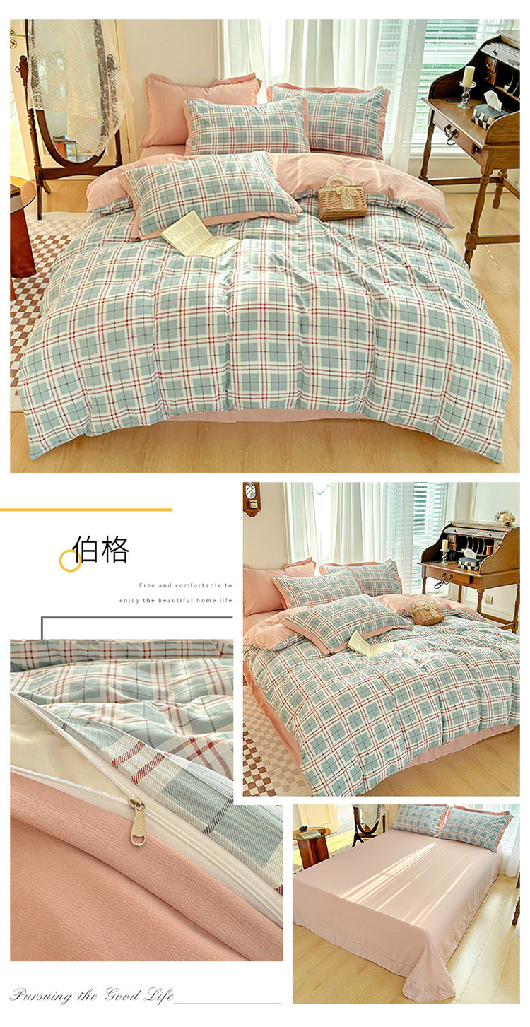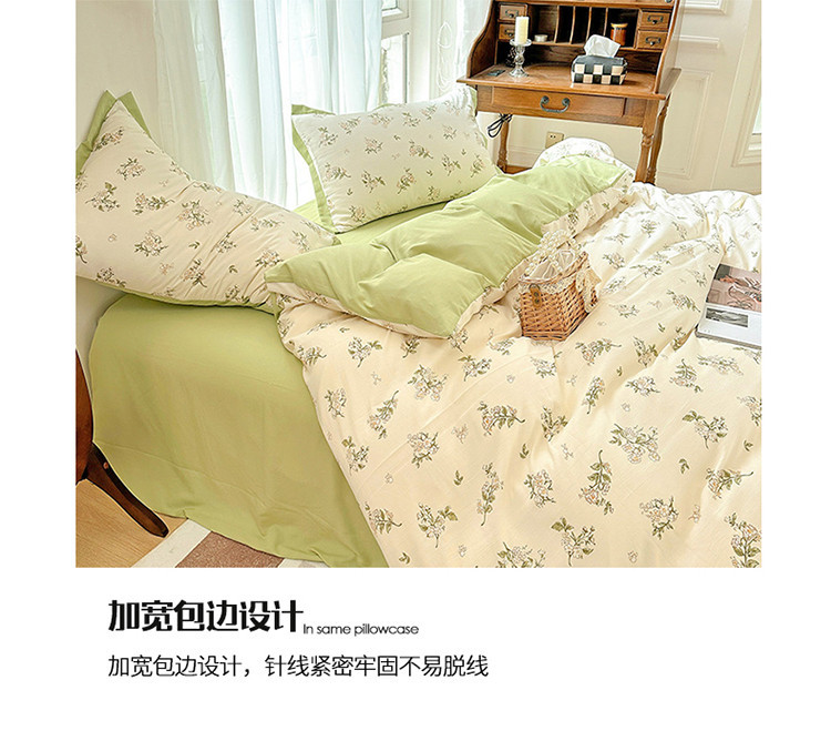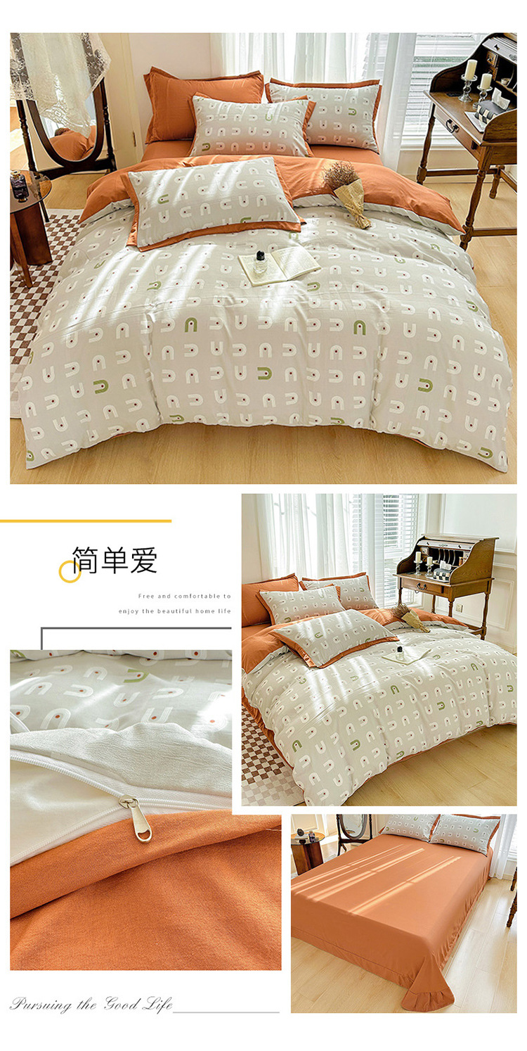 Primavera y verano, hilo de doble capa de clase a, lavado con agua, algodón y cáñamo, cuatro juegos de edredones de flores trituradas blandas y glutinosas, ropa de cama de bambú en el dormitorio de estudiantes