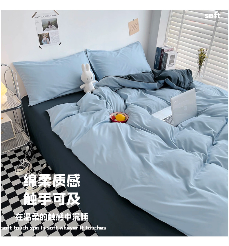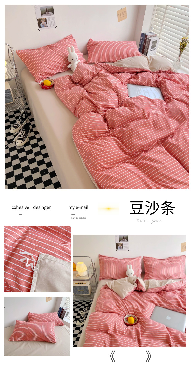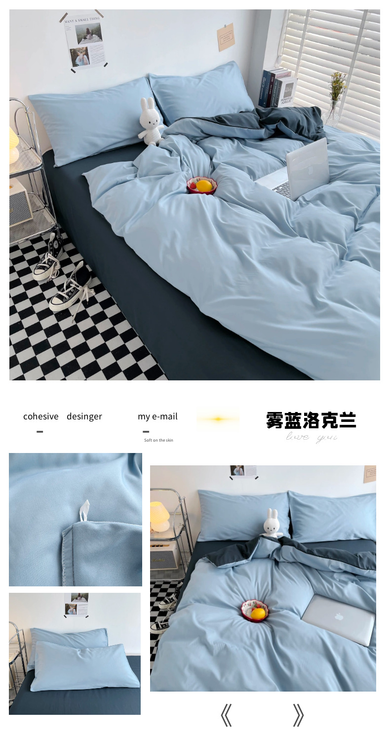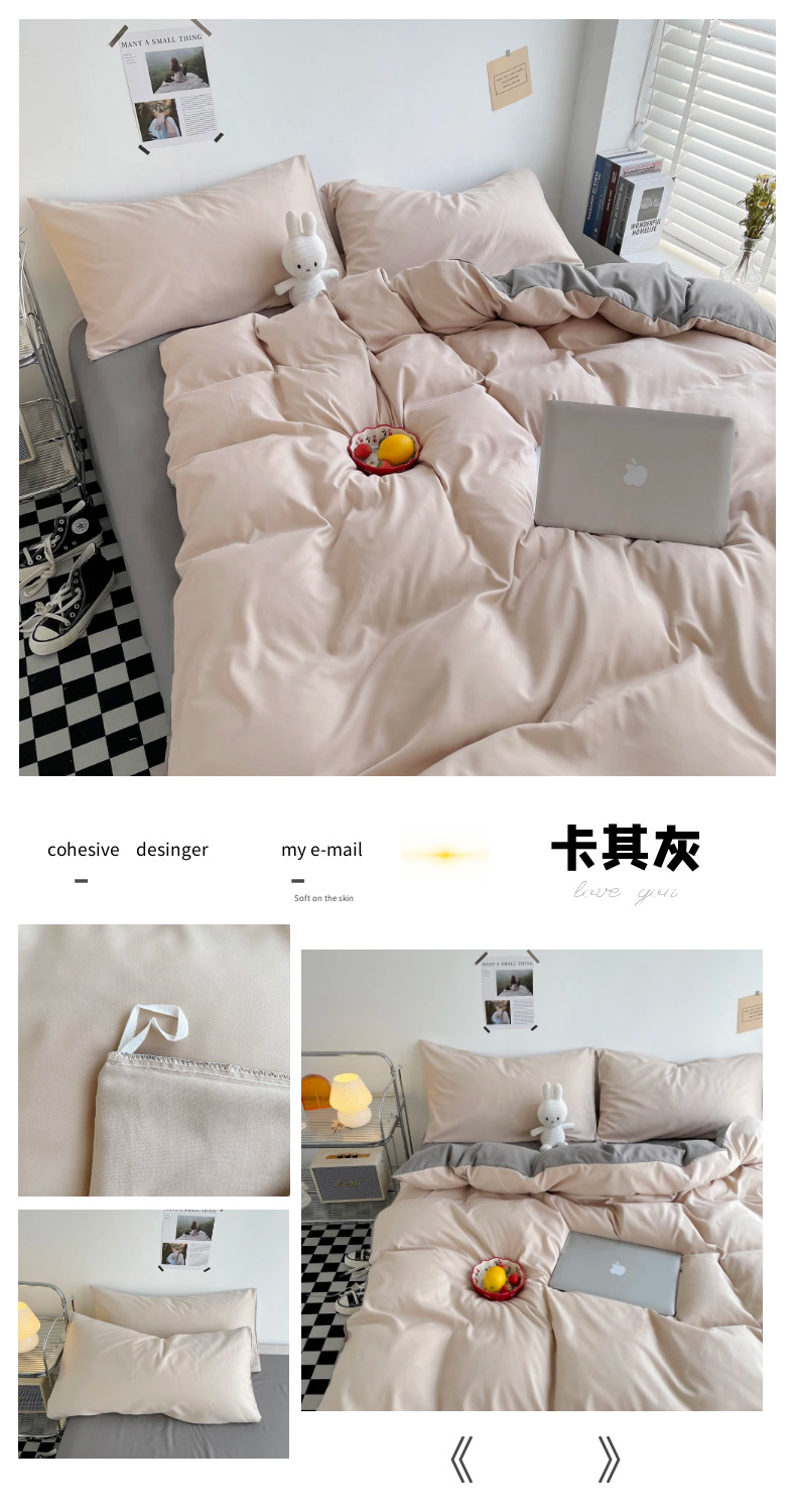 Color sólido simple, lana molida, algodón lavado, cuatro piezas, dormitorio estudiantil, tres piezas, ropa de cama, ropa de cama, sábanas y hojas de bambú.