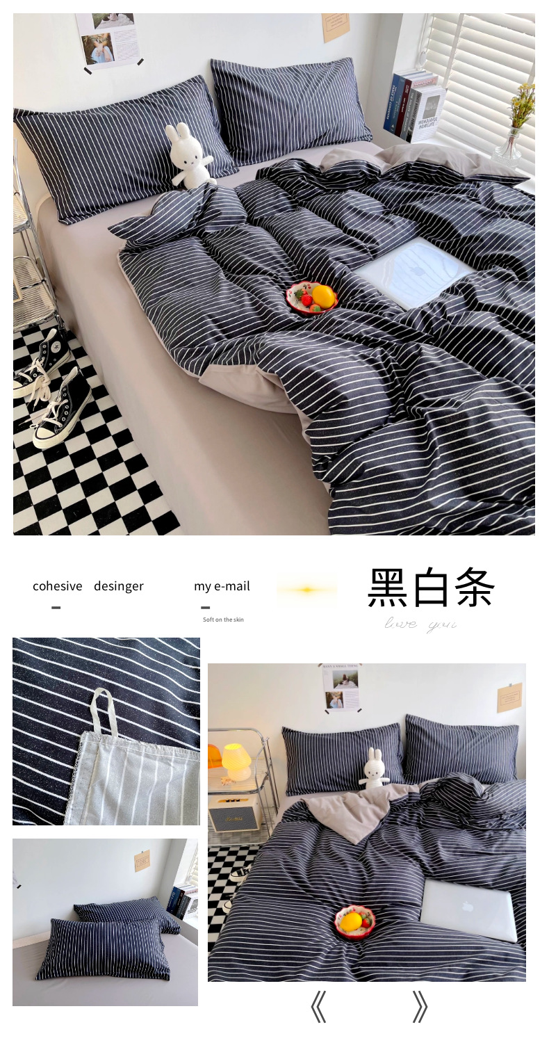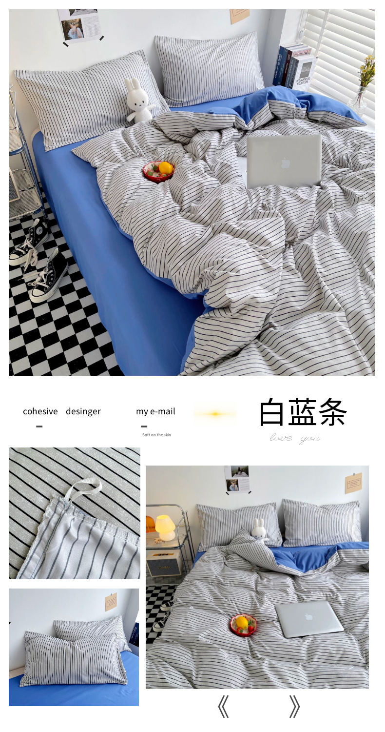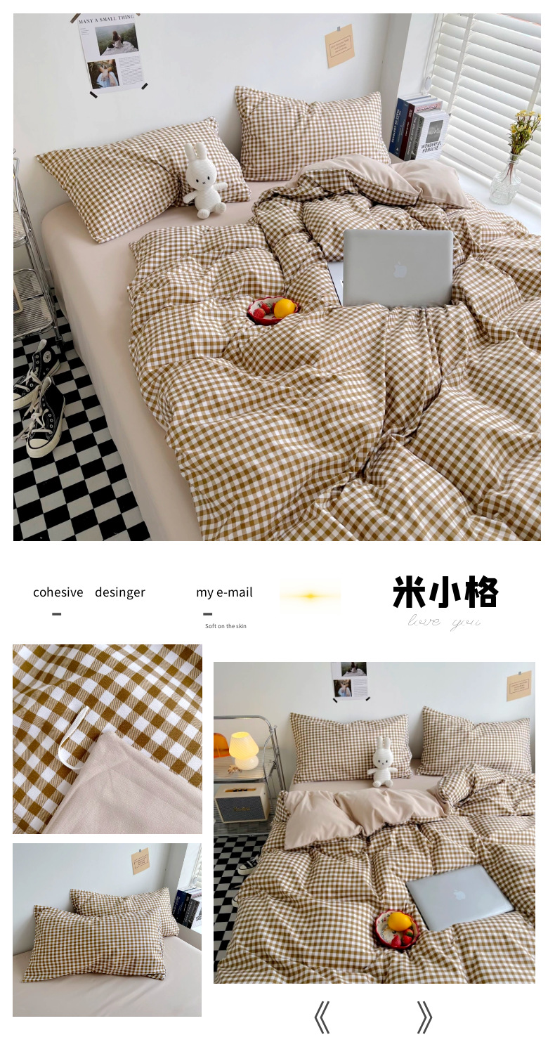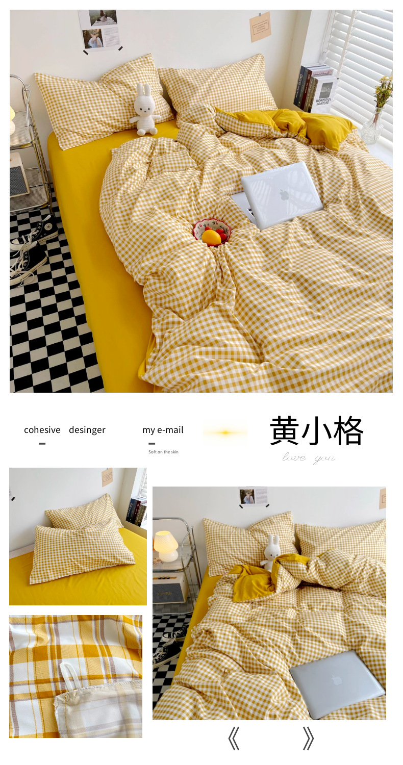 Color sólido simple, lana molida, algodón lavado, cuatro piezas, dormitorio estudiantil, tres piezas, ropa de cama, ropa de cama, sábanas y hojas de bambú.
