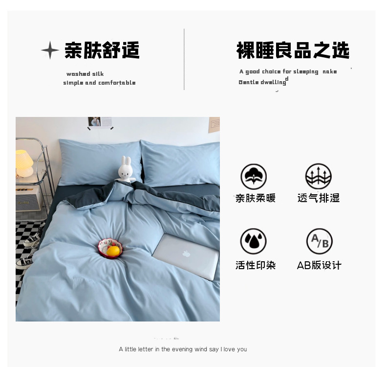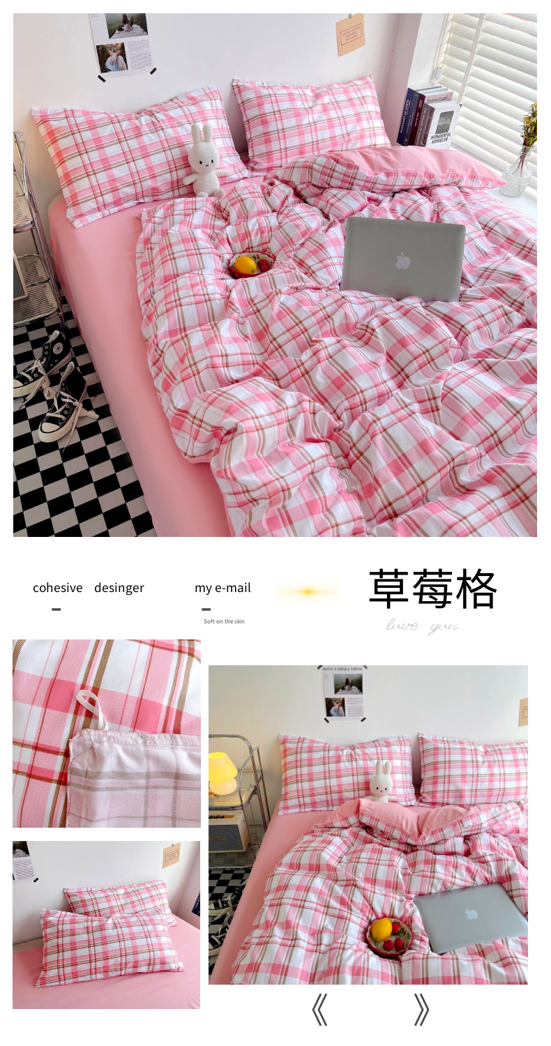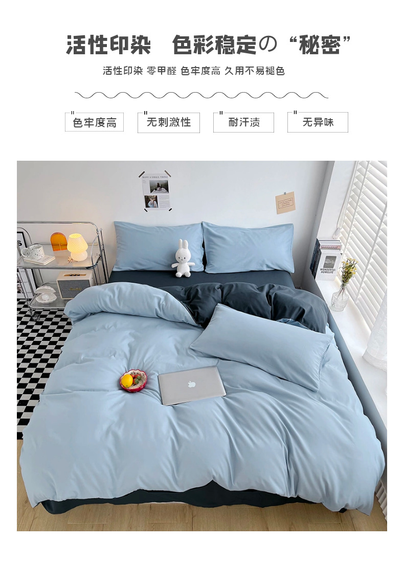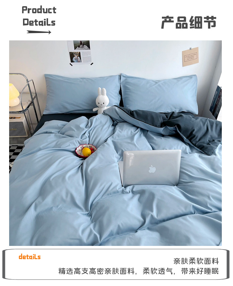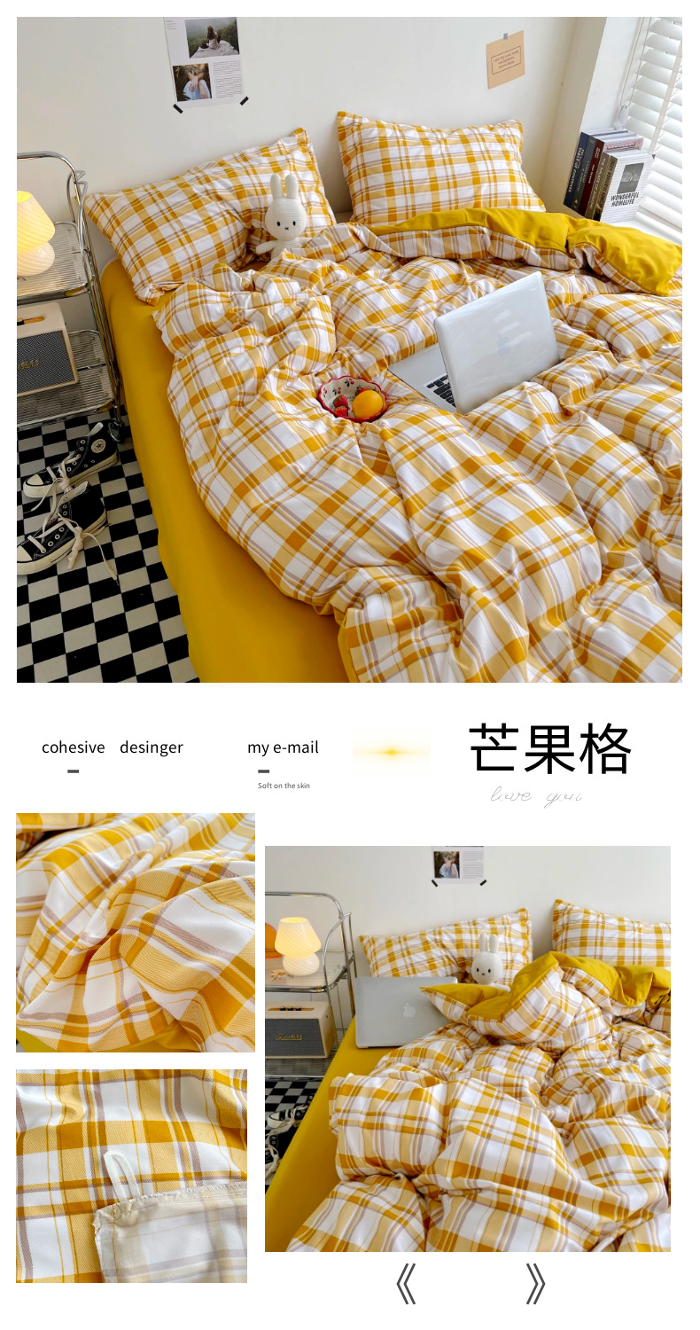 Color sólido simple, lana molida, algodón lavado, cuatro piezas, dormitorio estudiantil, tres piezas, ropa de cama, ropa de cama, sábanas y hojas de bambú.