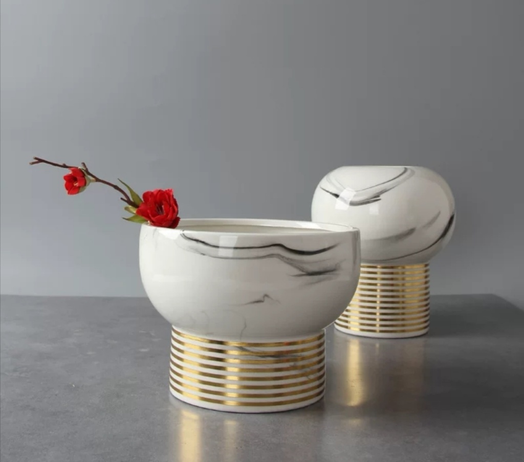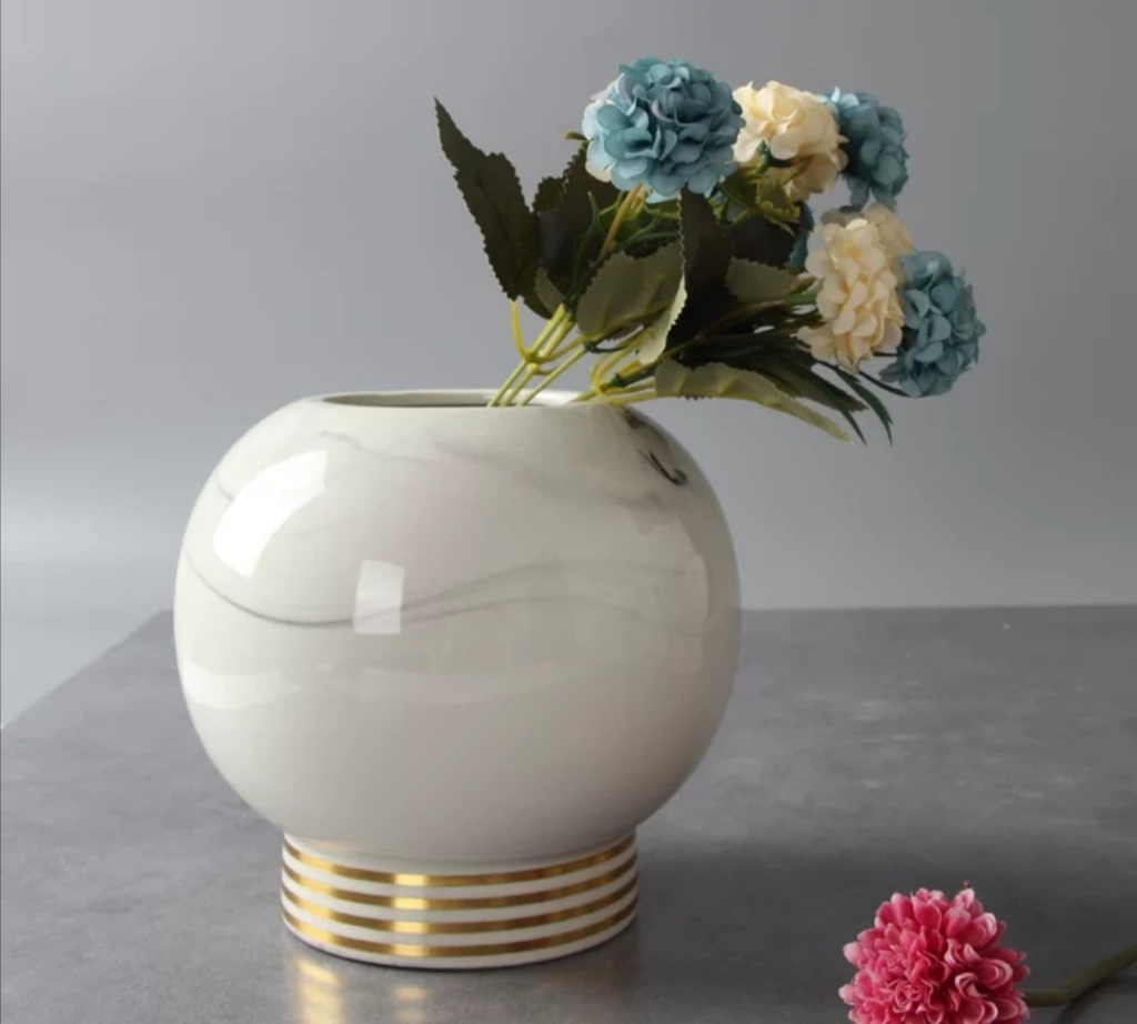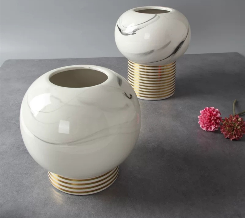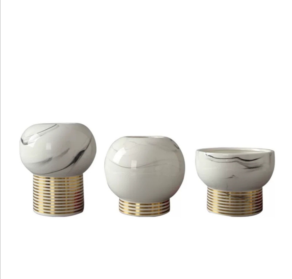 Jarrón de cerámica con patrón de tinta y lavado de tres piezas, Mesa de entrada de la Sala de estar, flores de bajo lujo, decoración moderna de proceso suave