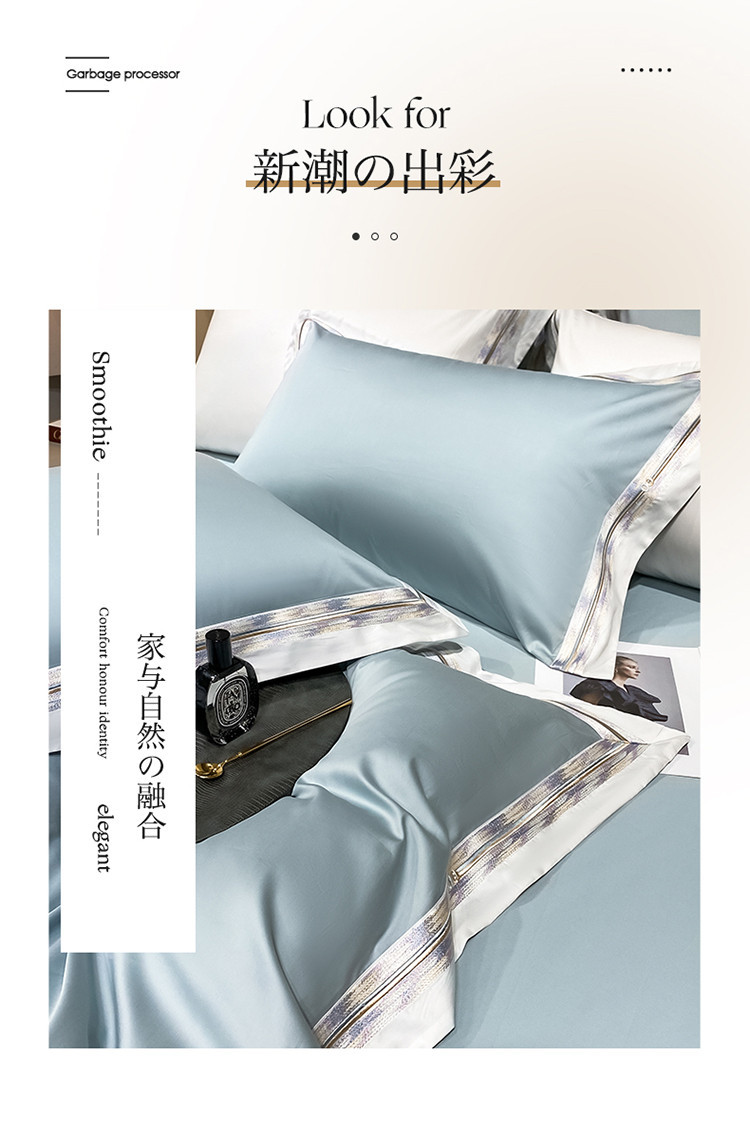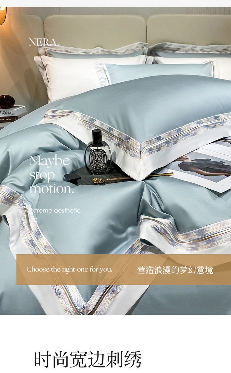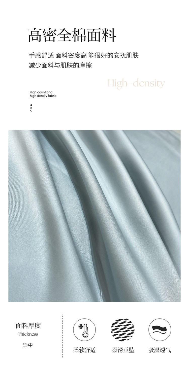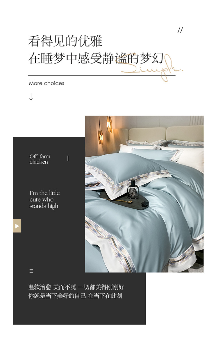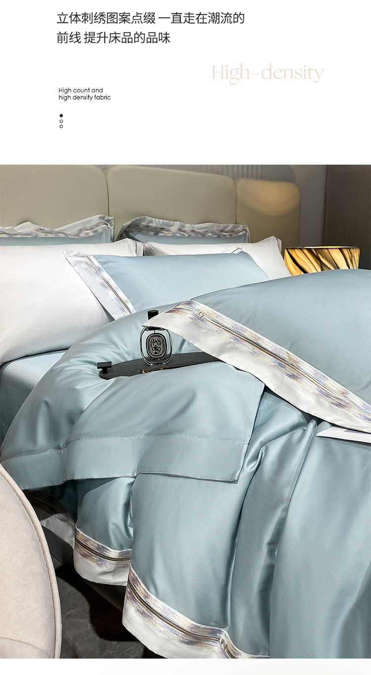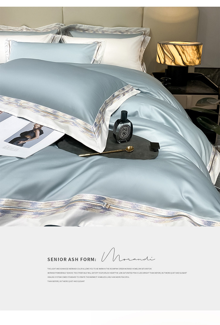100s color sólido simple bordado de lujo ligero algodón de lana larga juego de cuatro piezas sábanas de cama doble juego de ropa de cama