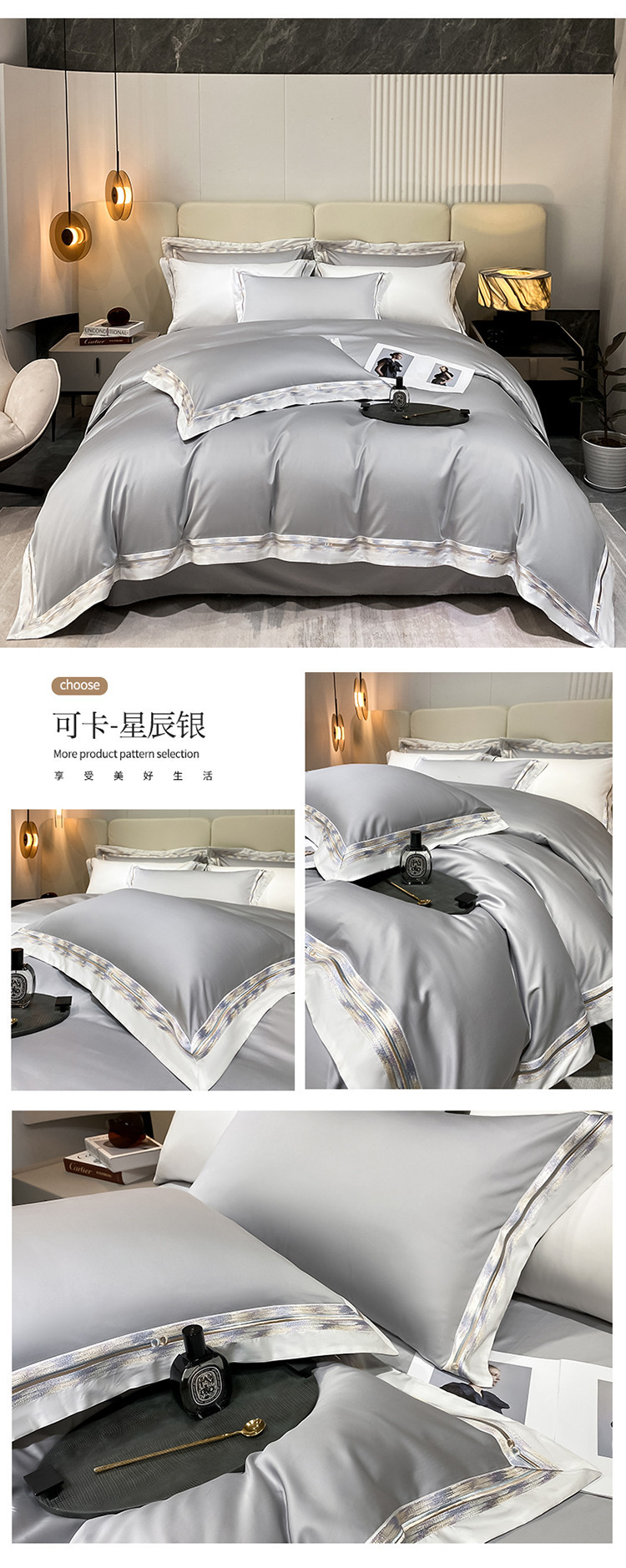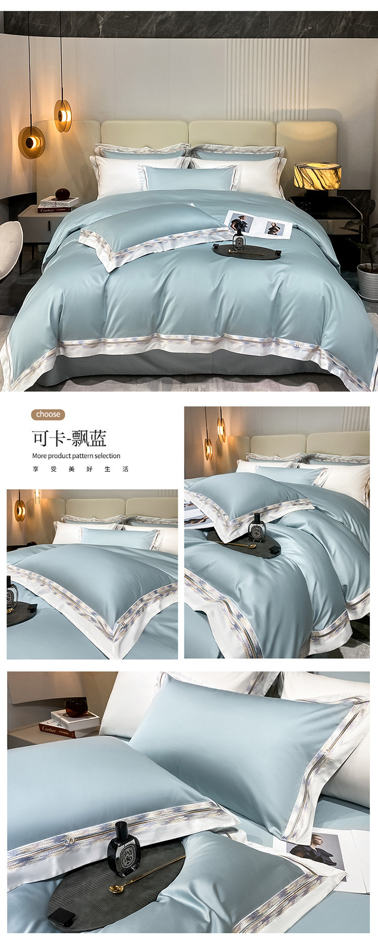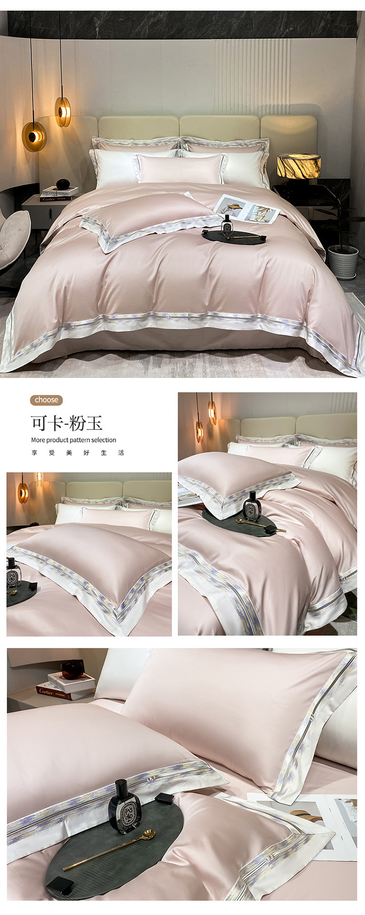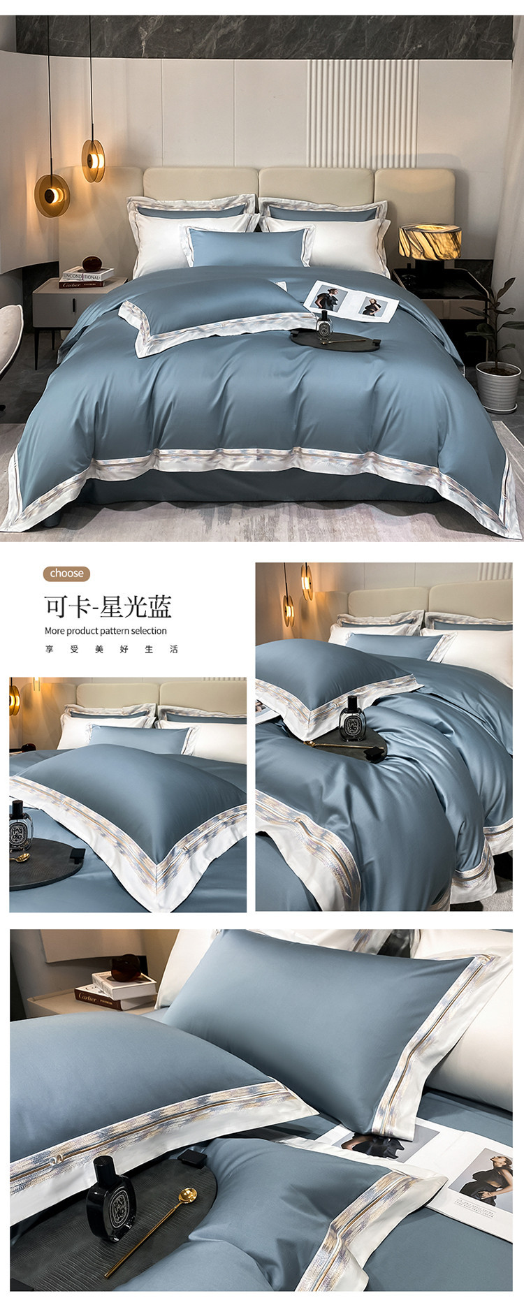 100s color sólido simple bordado de lujo ligero algodón de lana larga juego de cuatro piezas sábanas de cama doble juego de ropa de cama