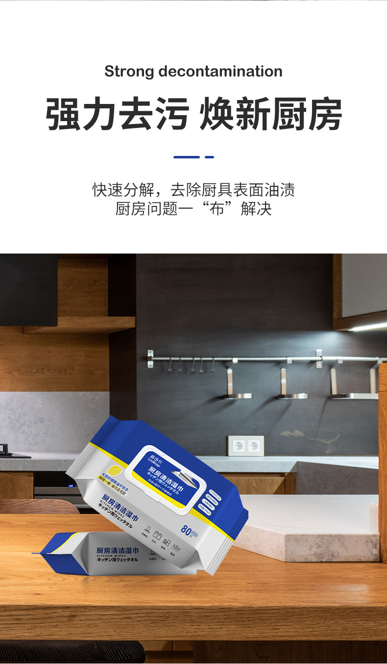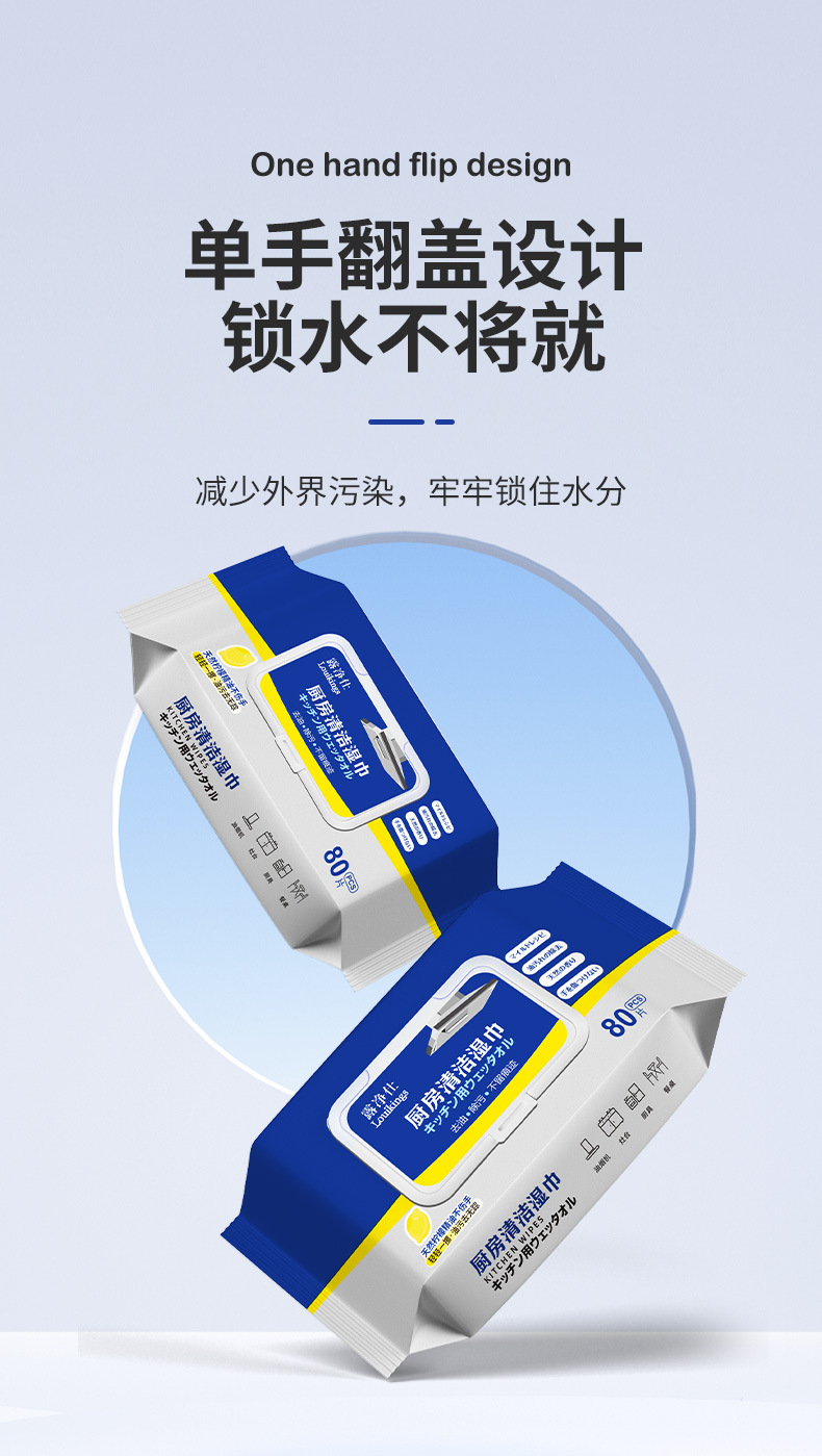 Toallitas de cocina potentes para eliminar el aceite, toallas de papel húmedas para eliminar la contaminación, toallitas de papel húmedas para limpiar el aceite y toallitas de papel húmedas para limpiar el hogar
