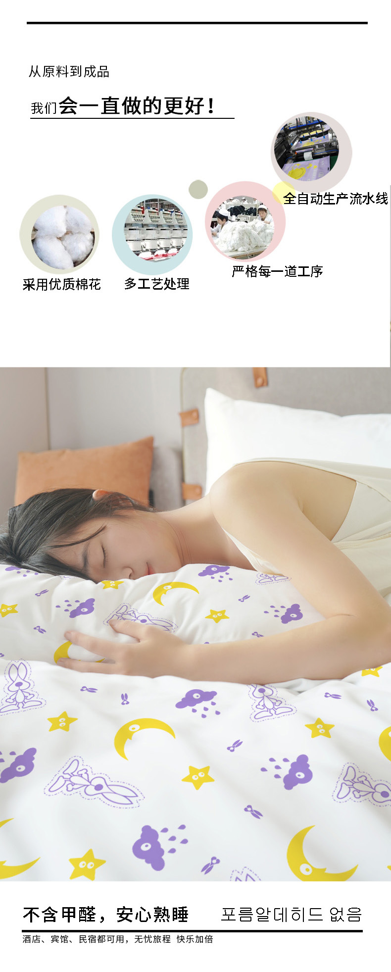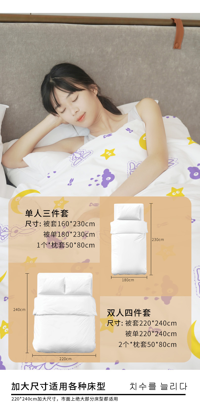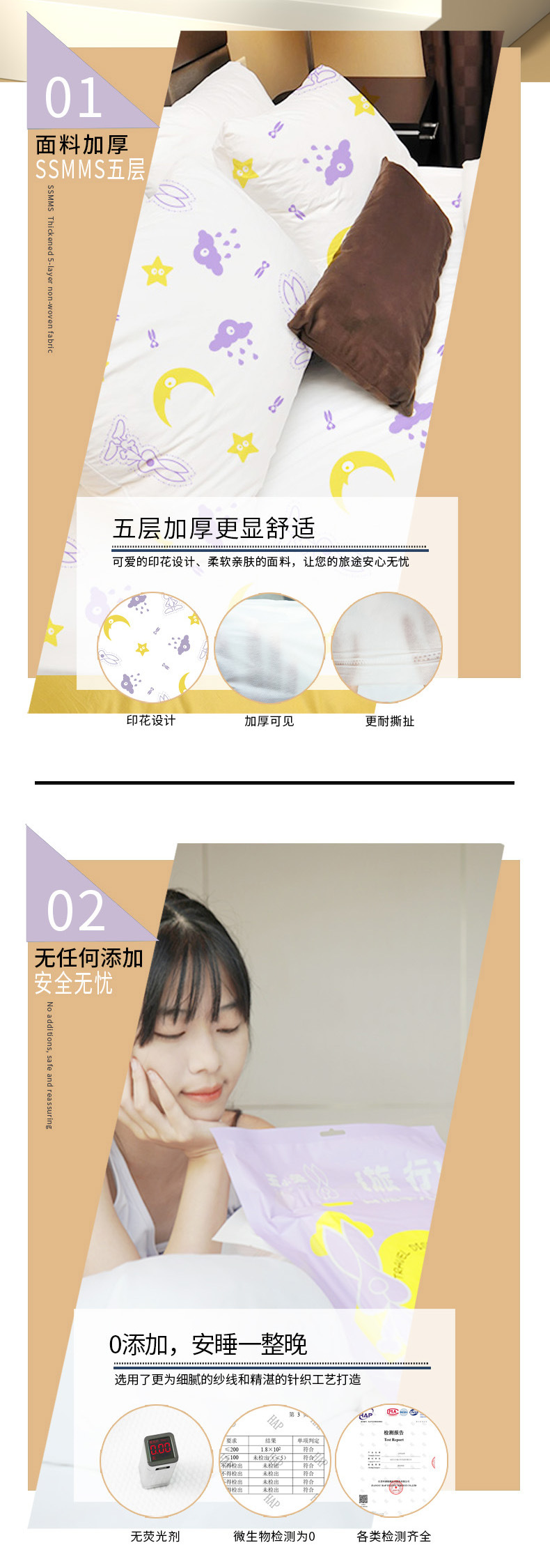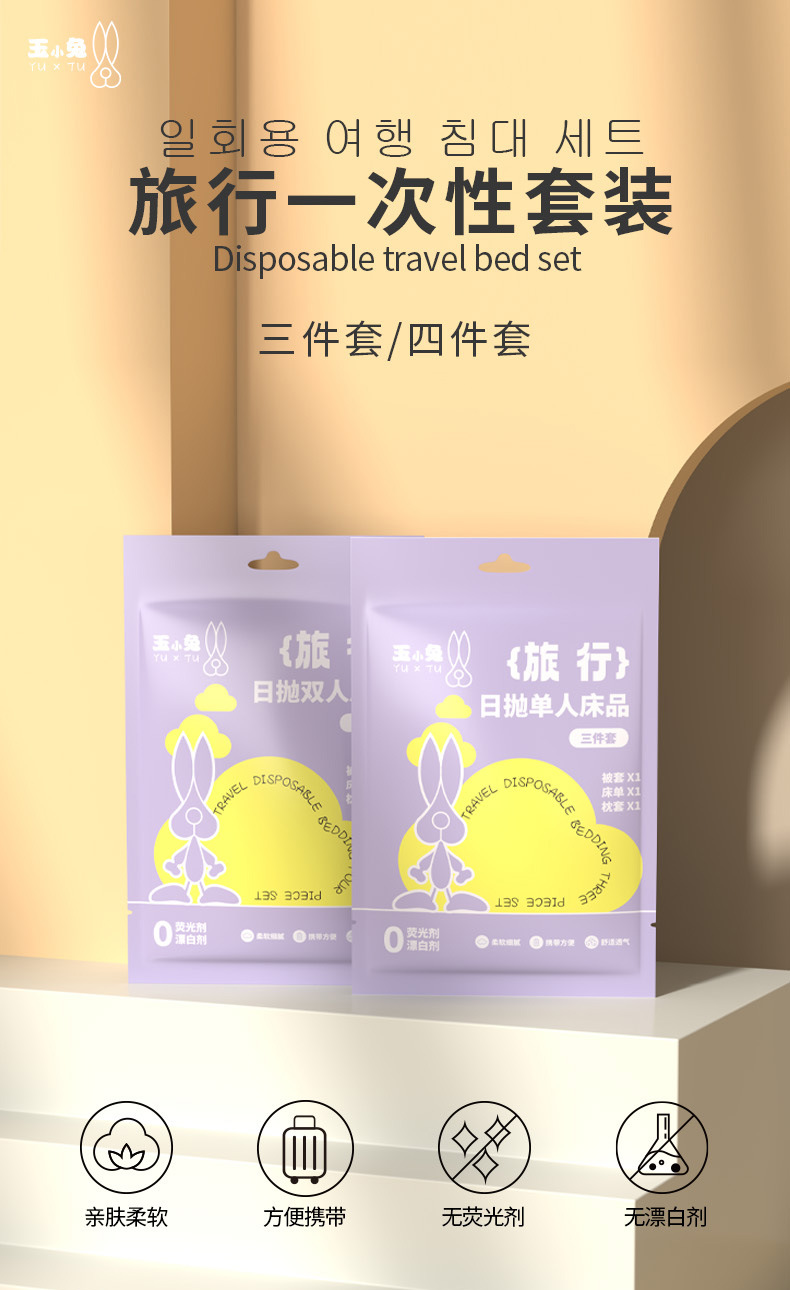 Un juego desechable de cuatro piezas de conejo impreso engrosa cinco capas de piel y separa la ropa de cama sucia.