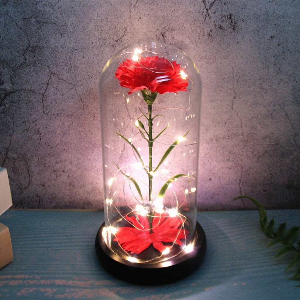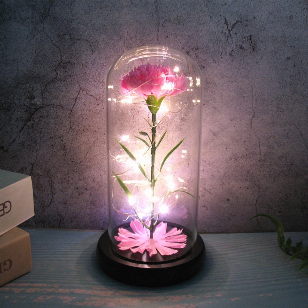 Venta al por mayor de pantallas de vidrio de lámina de oro simuladas para el día de San Valentín de Navidad LED clavel Flower Marriage Rose gift Box