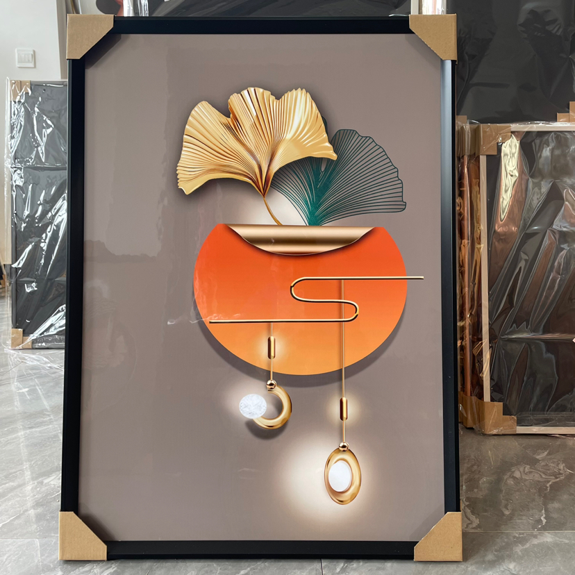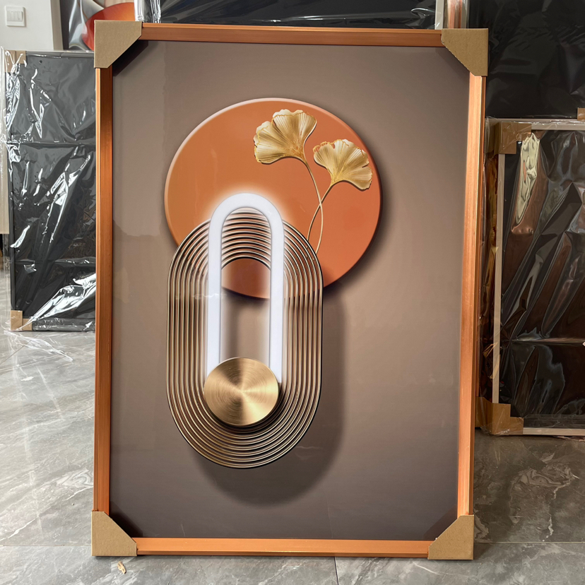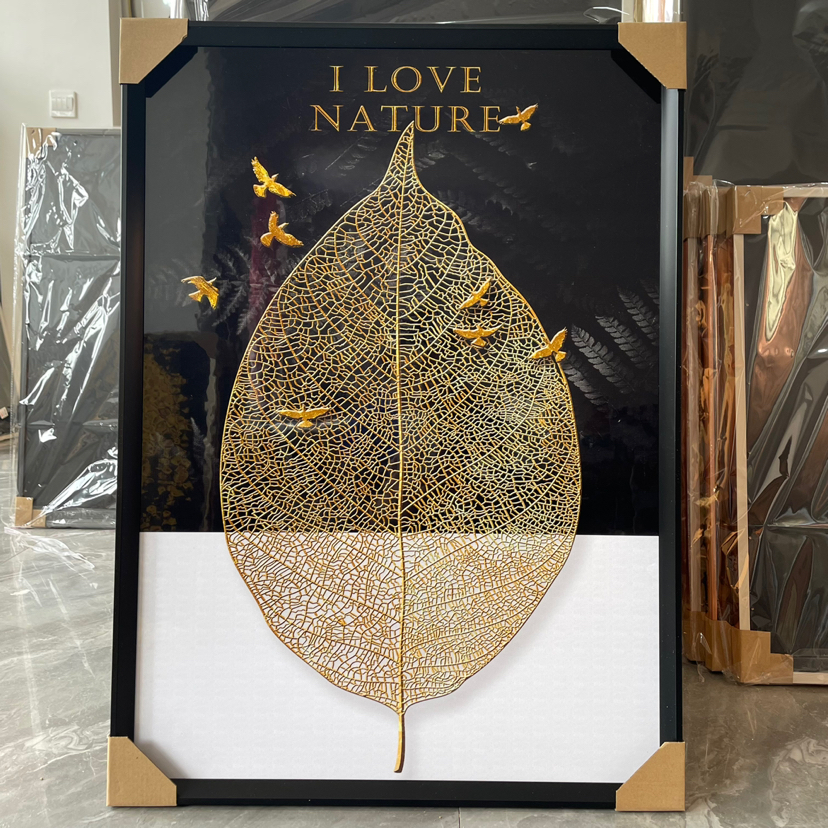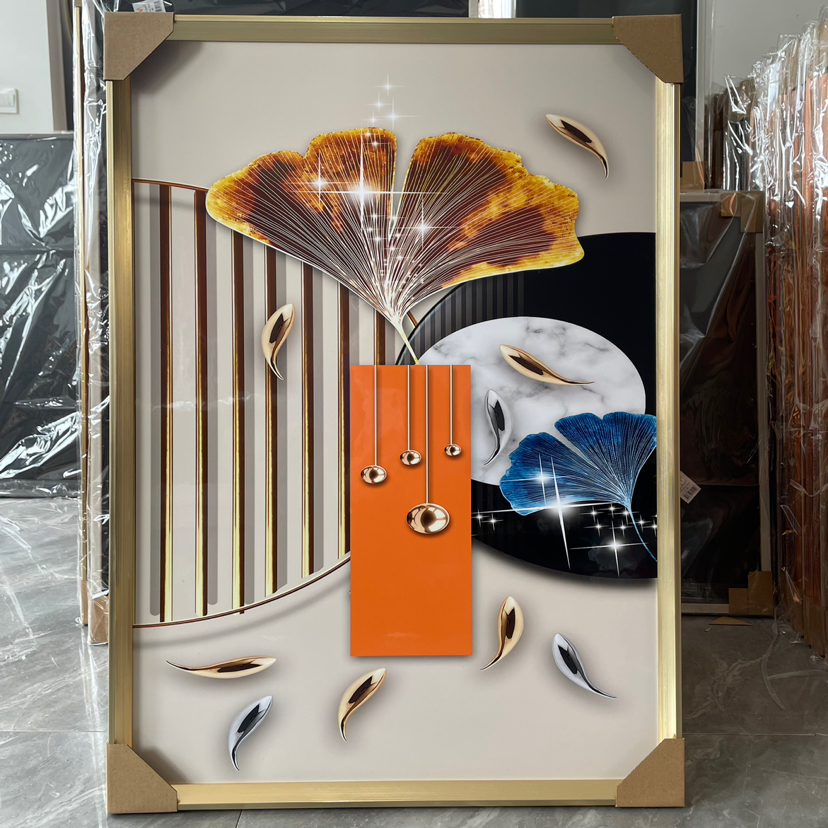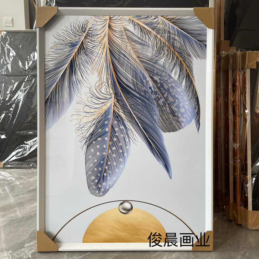 Estudio del dormitorio de la Sala de estar de película de cristal, pintura decorativa de fondo del sofá, artesanía mural, hojas abstractas modernas de lujo ligero